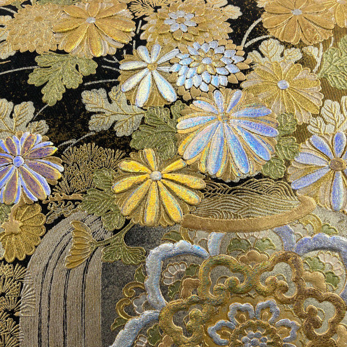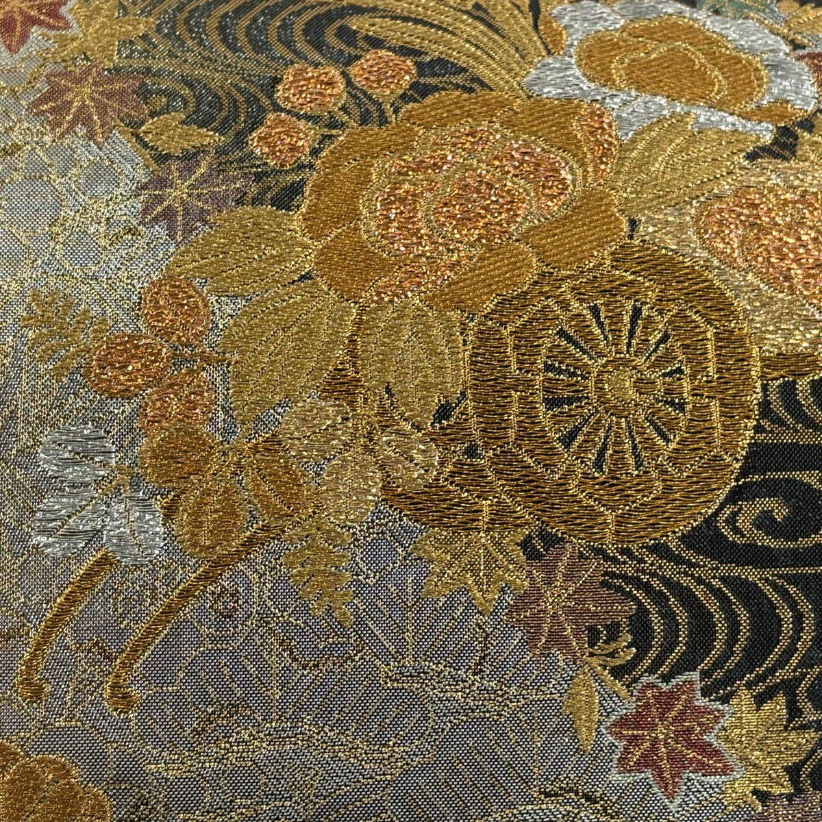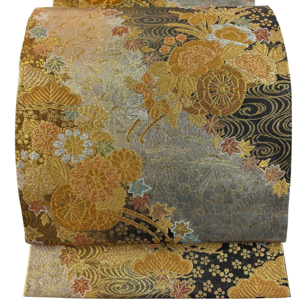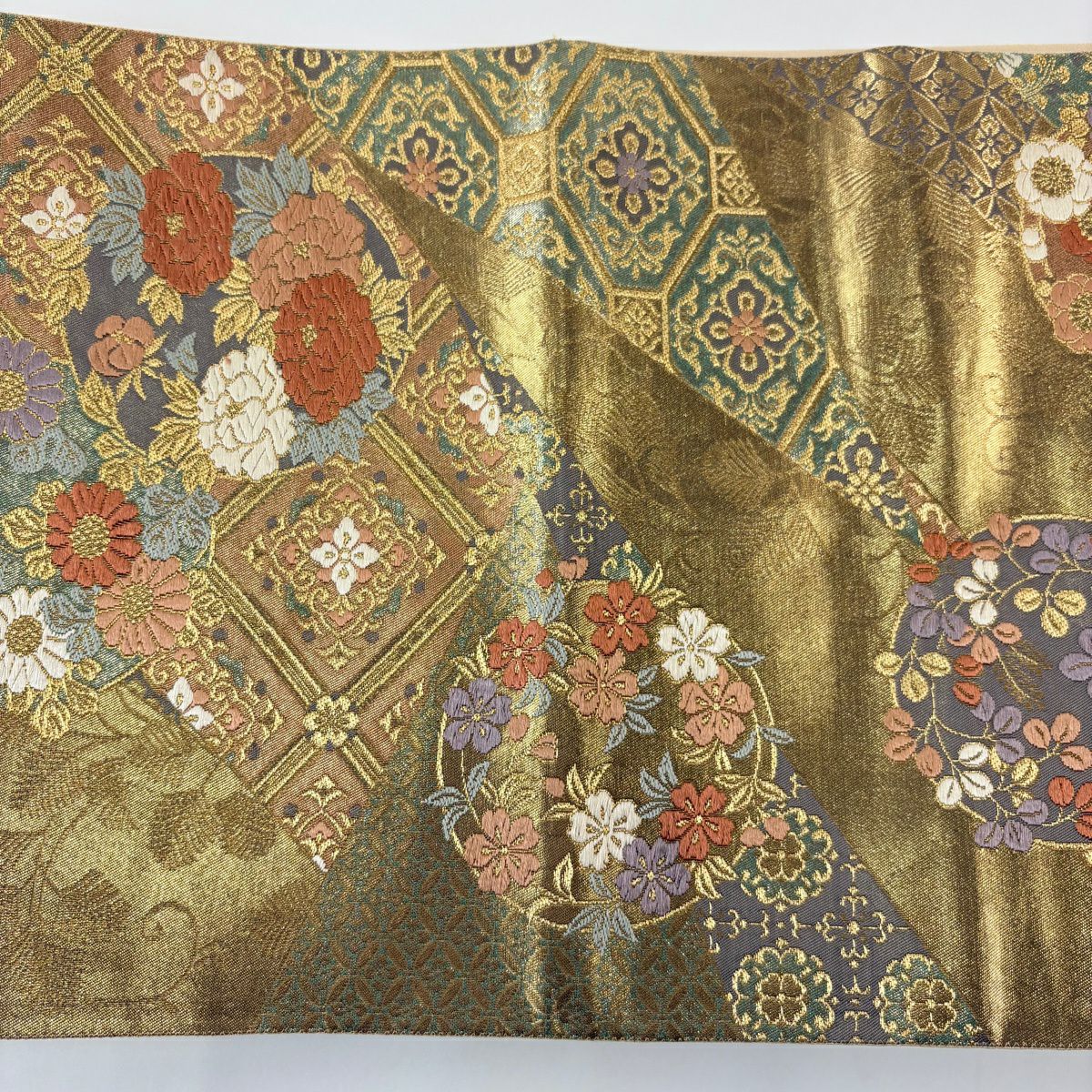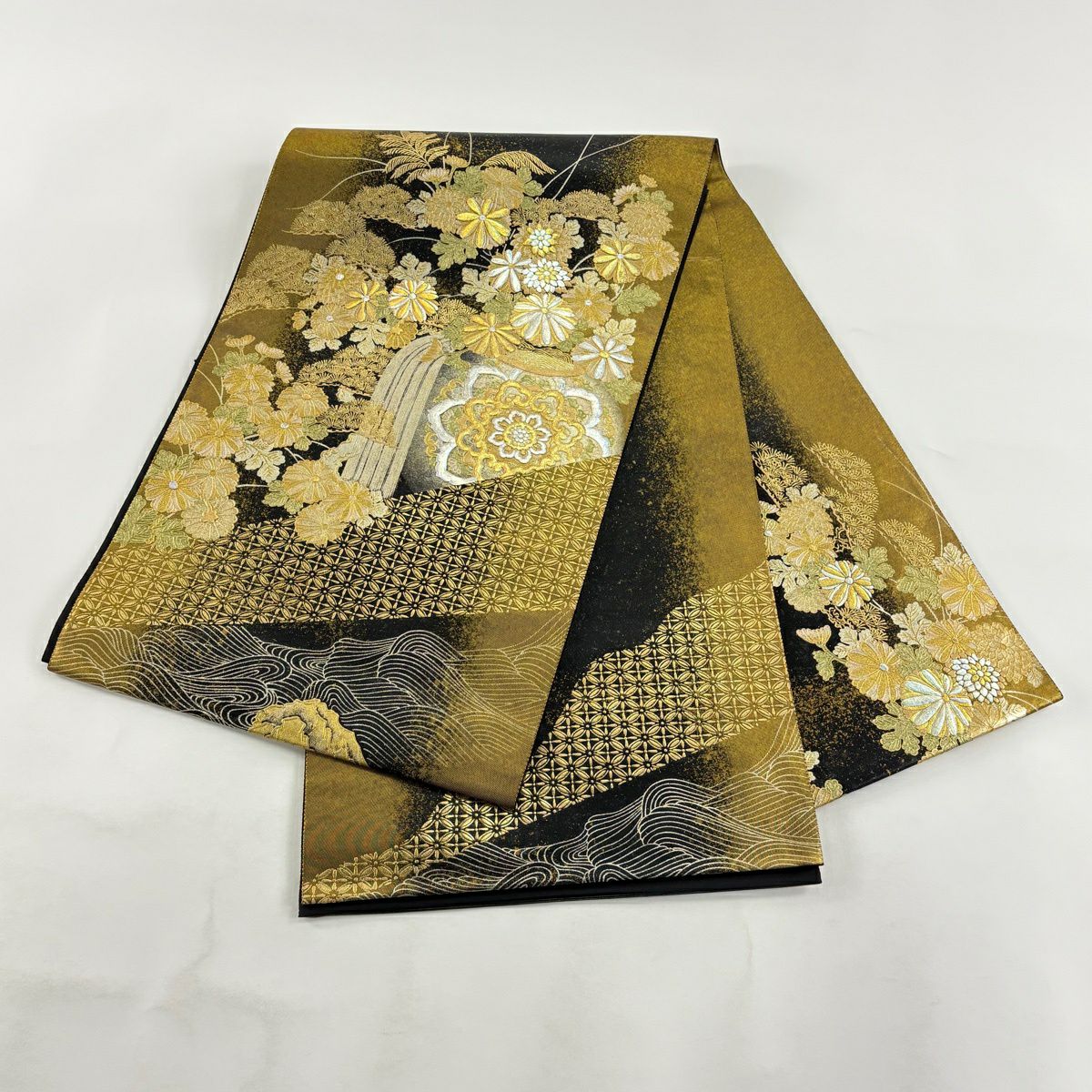 【美品】 袋帯 秀品 華文 菊 金銀彩 箔 金色 お太鼓柄 正絹