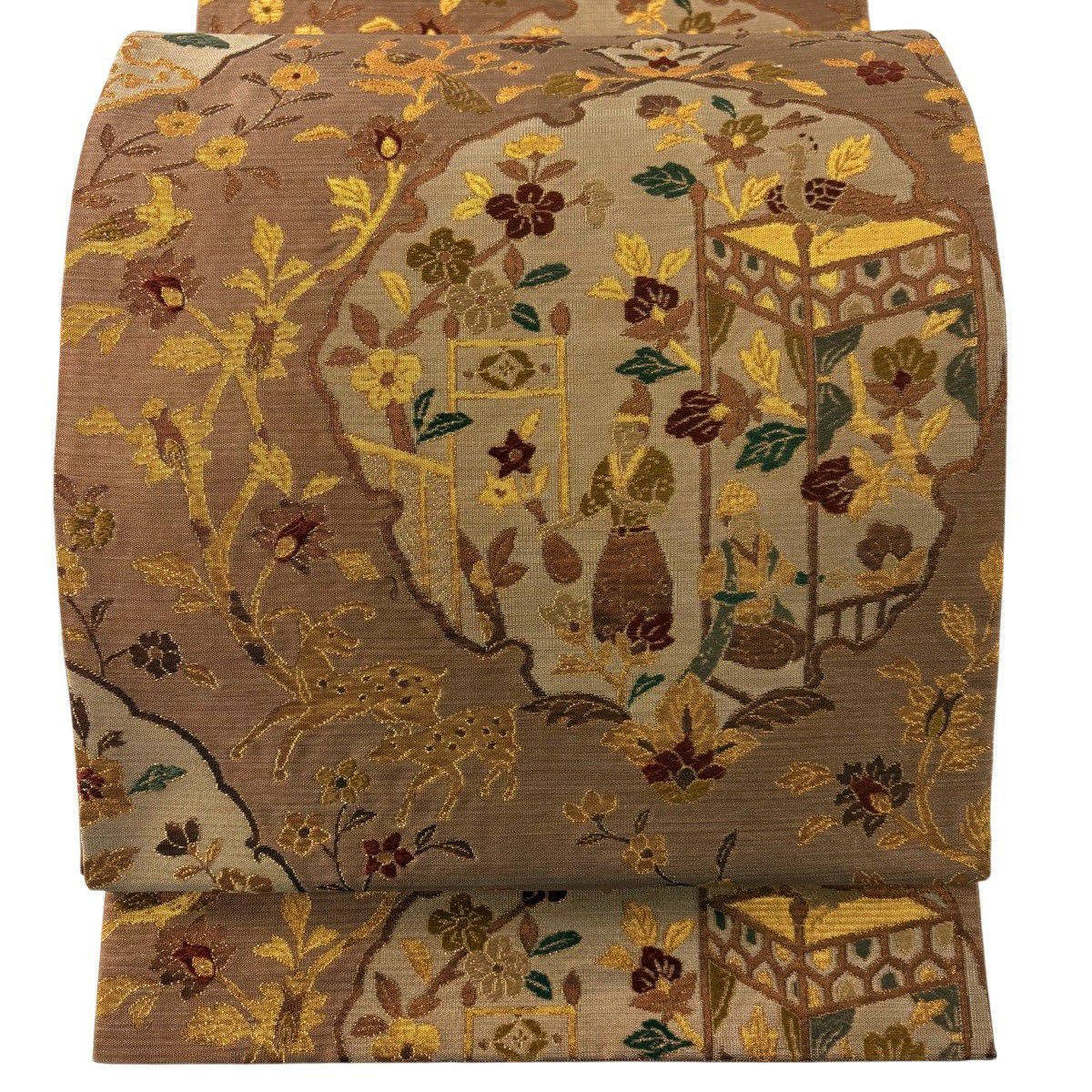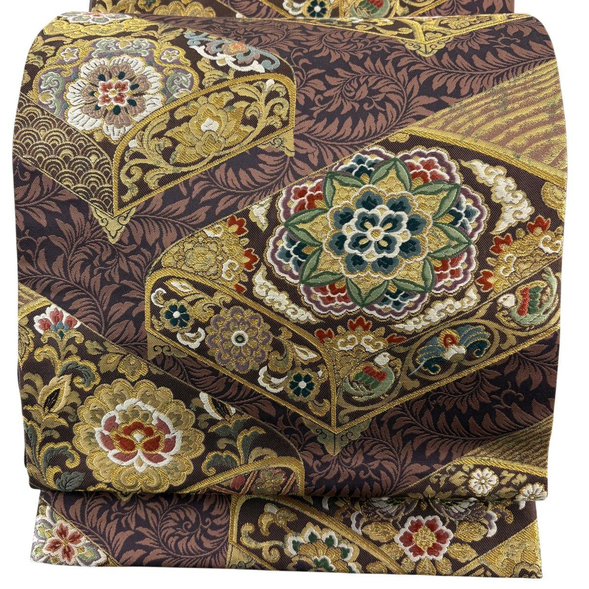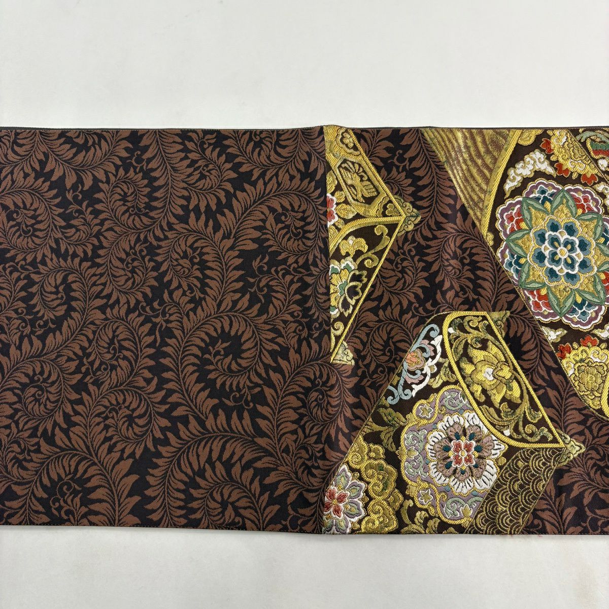 【美品】 袋帯 秀品 文箱 華文 金銀糸 箔 茶色 六通 正絹
