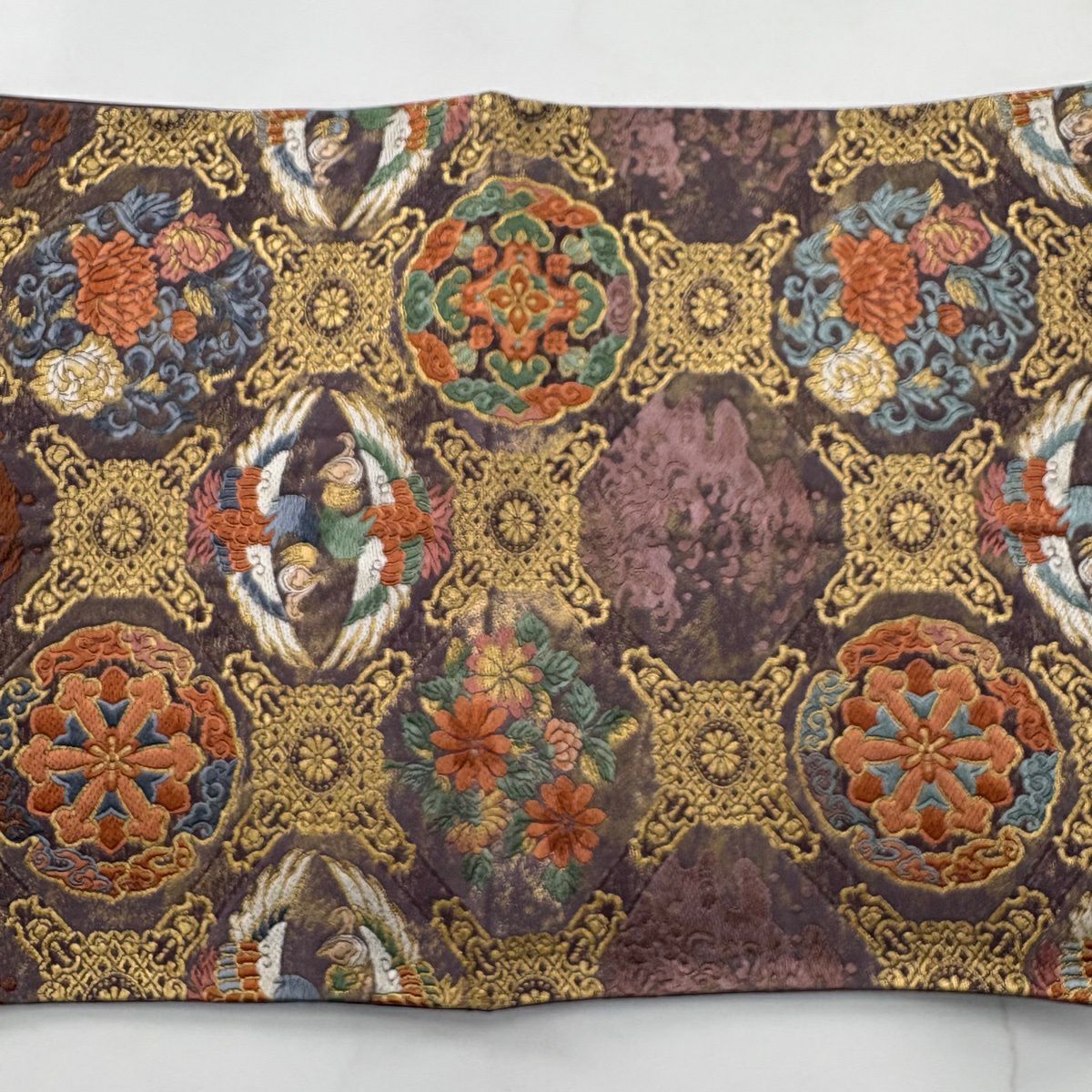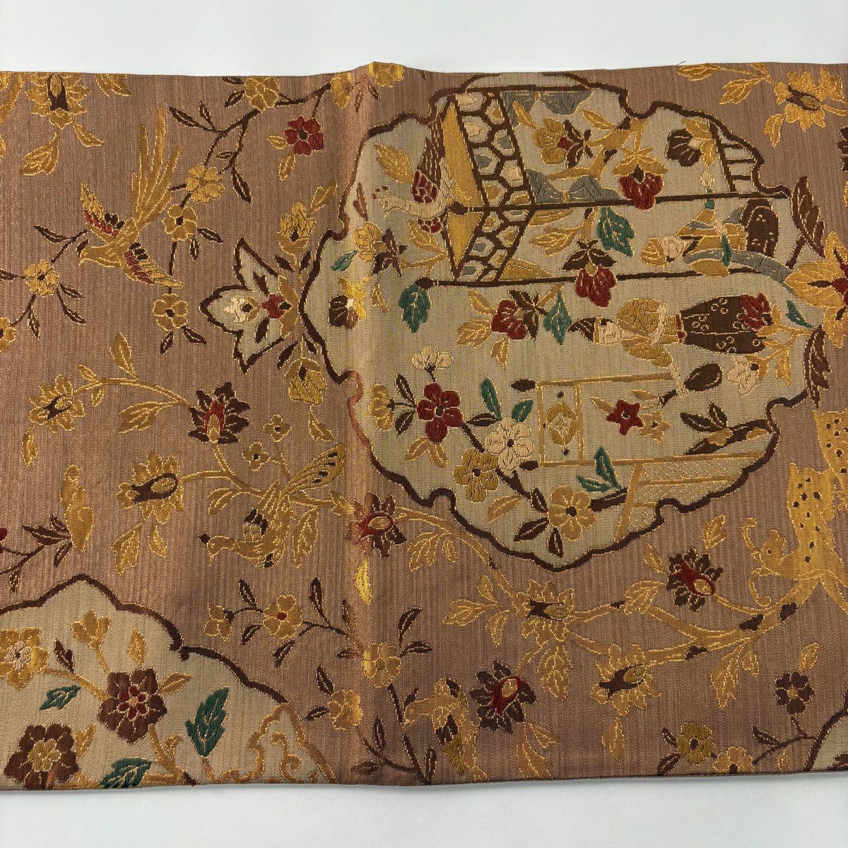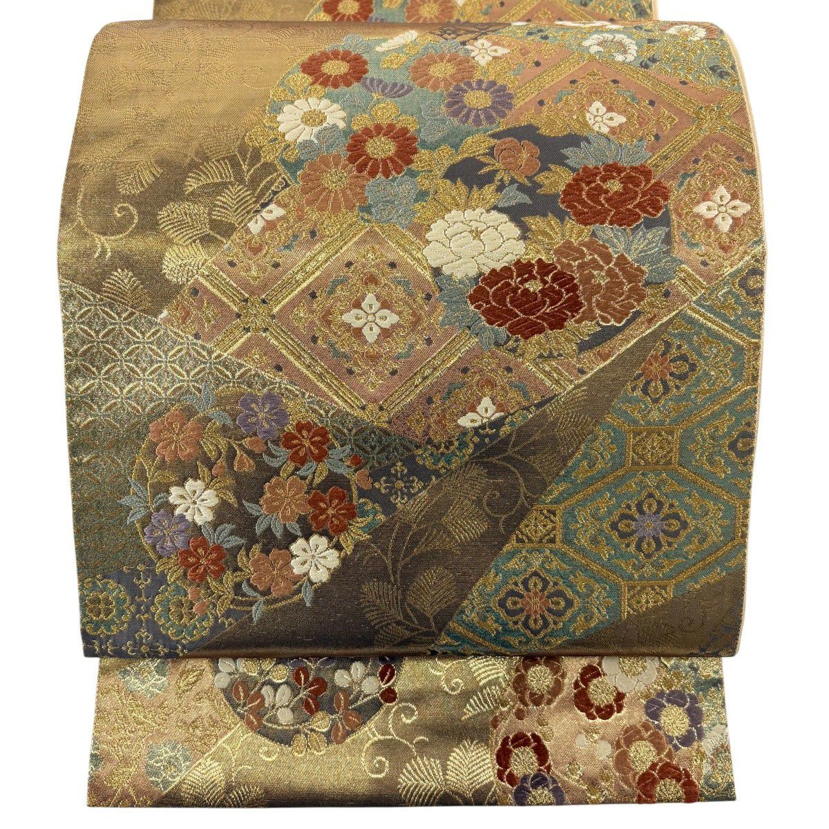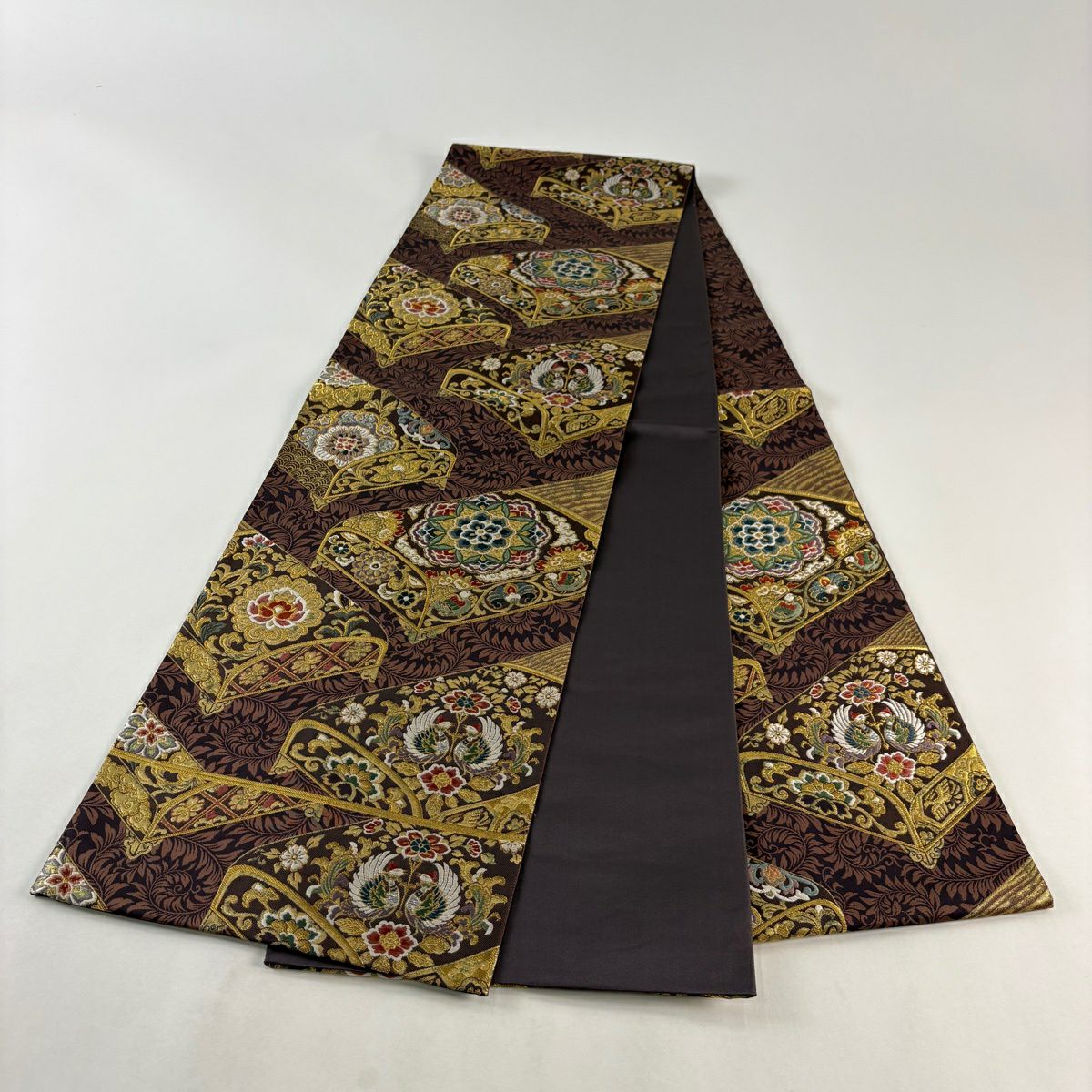 【美品】 袋帯 秀品 文箱 華文 金銀糸 箔 茶色 六通 正絹