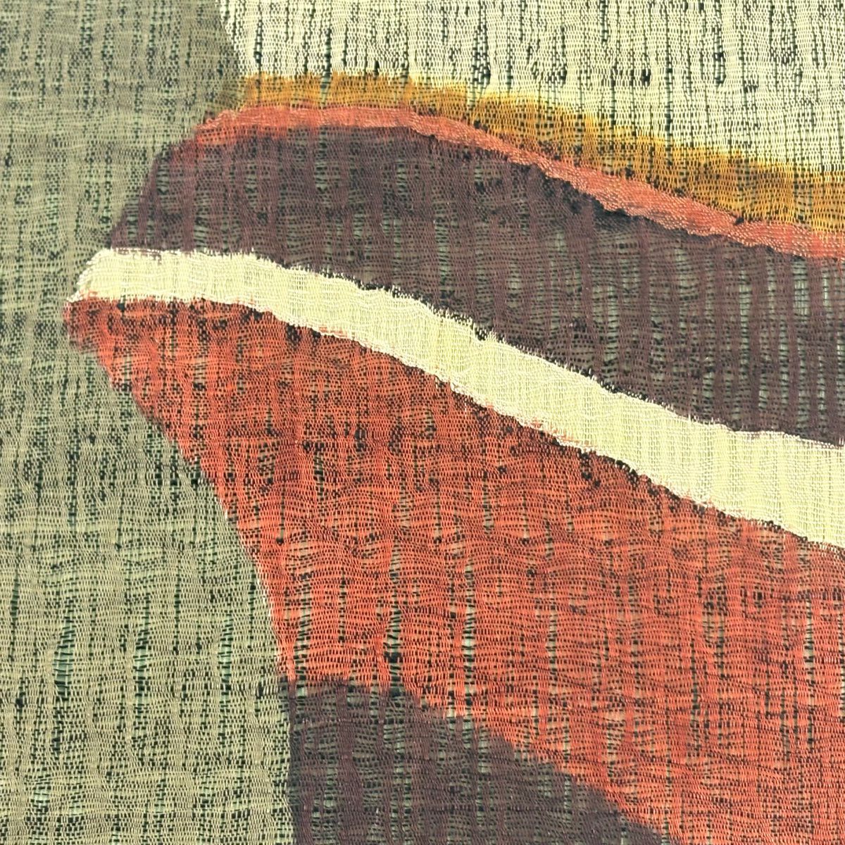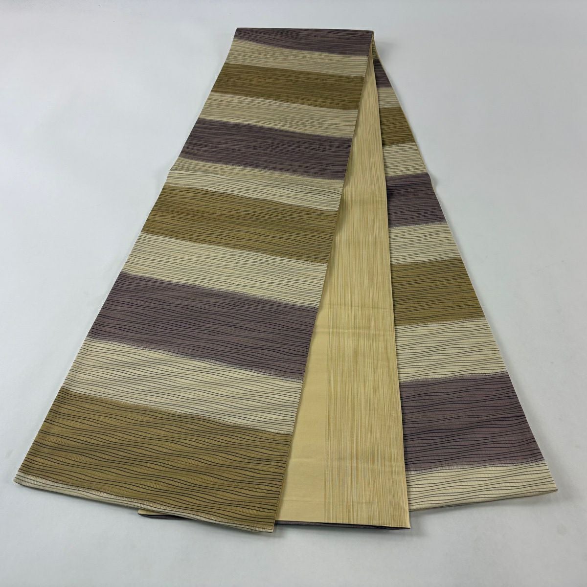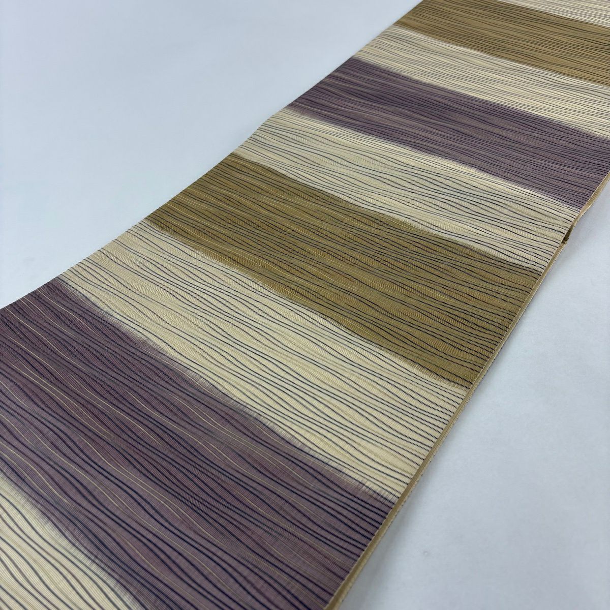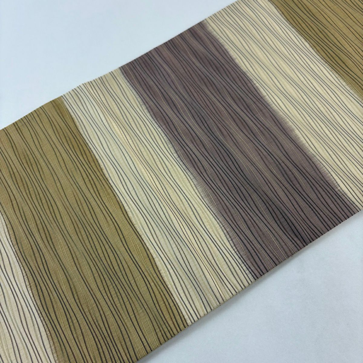 【美品】 袋帯 秀品 段縞 よろけ縞 ベージュ 全通 正絹