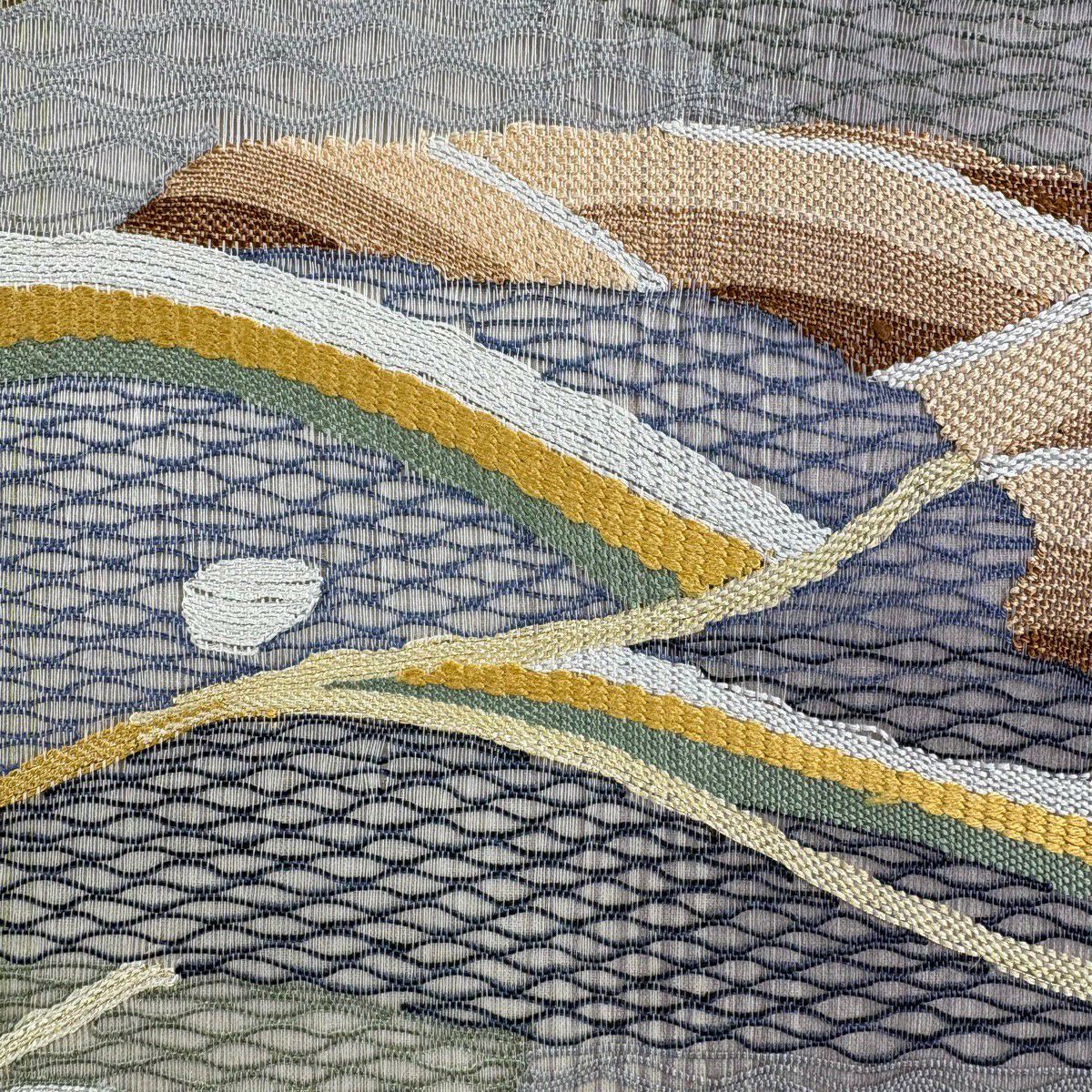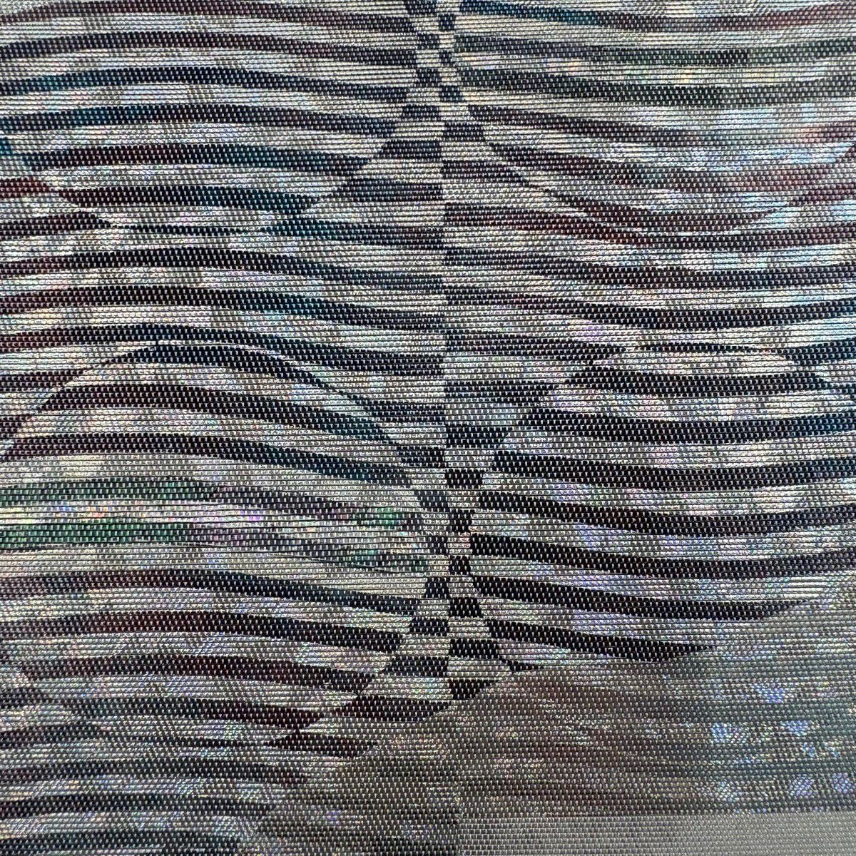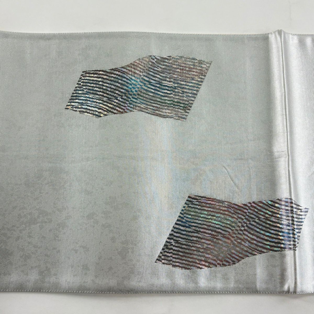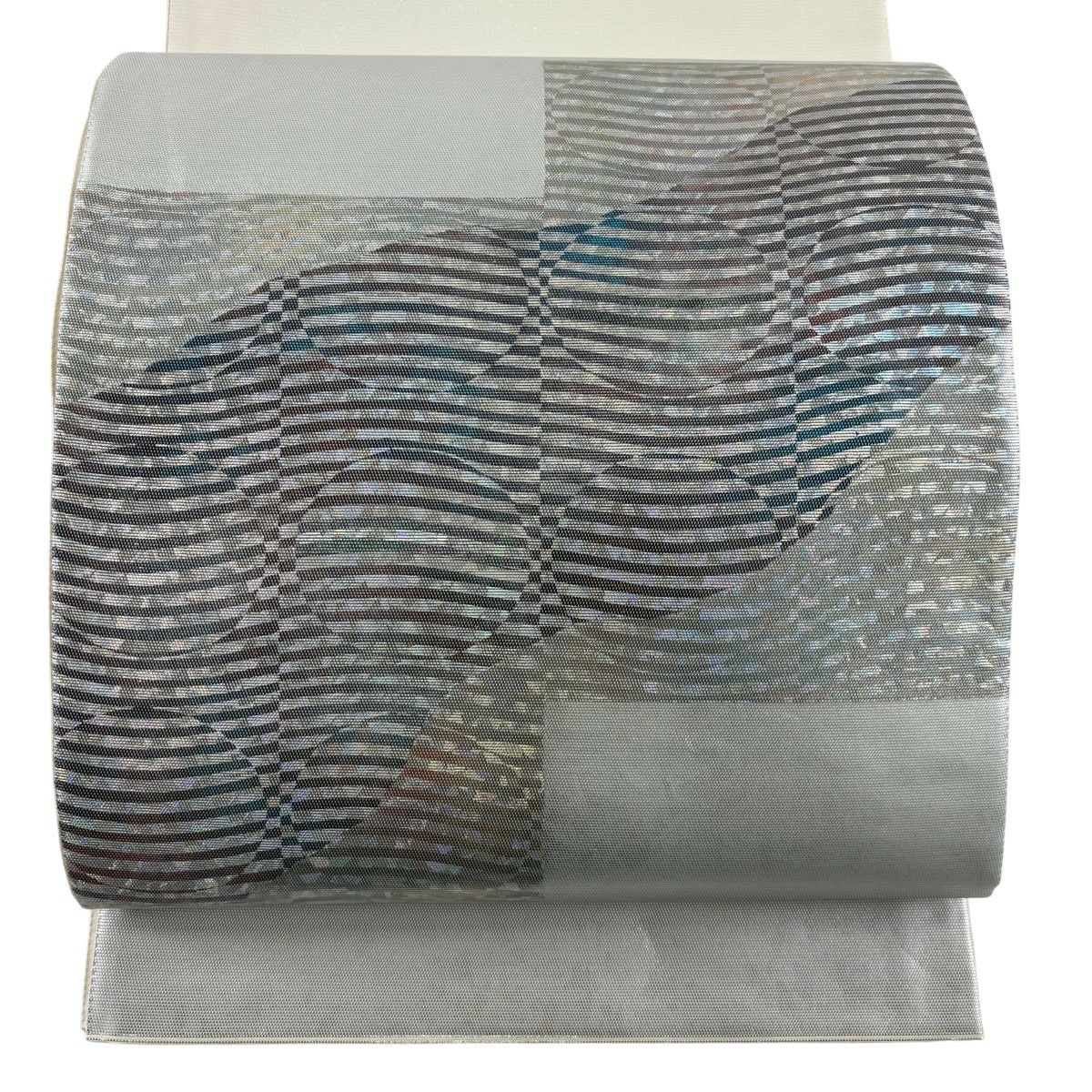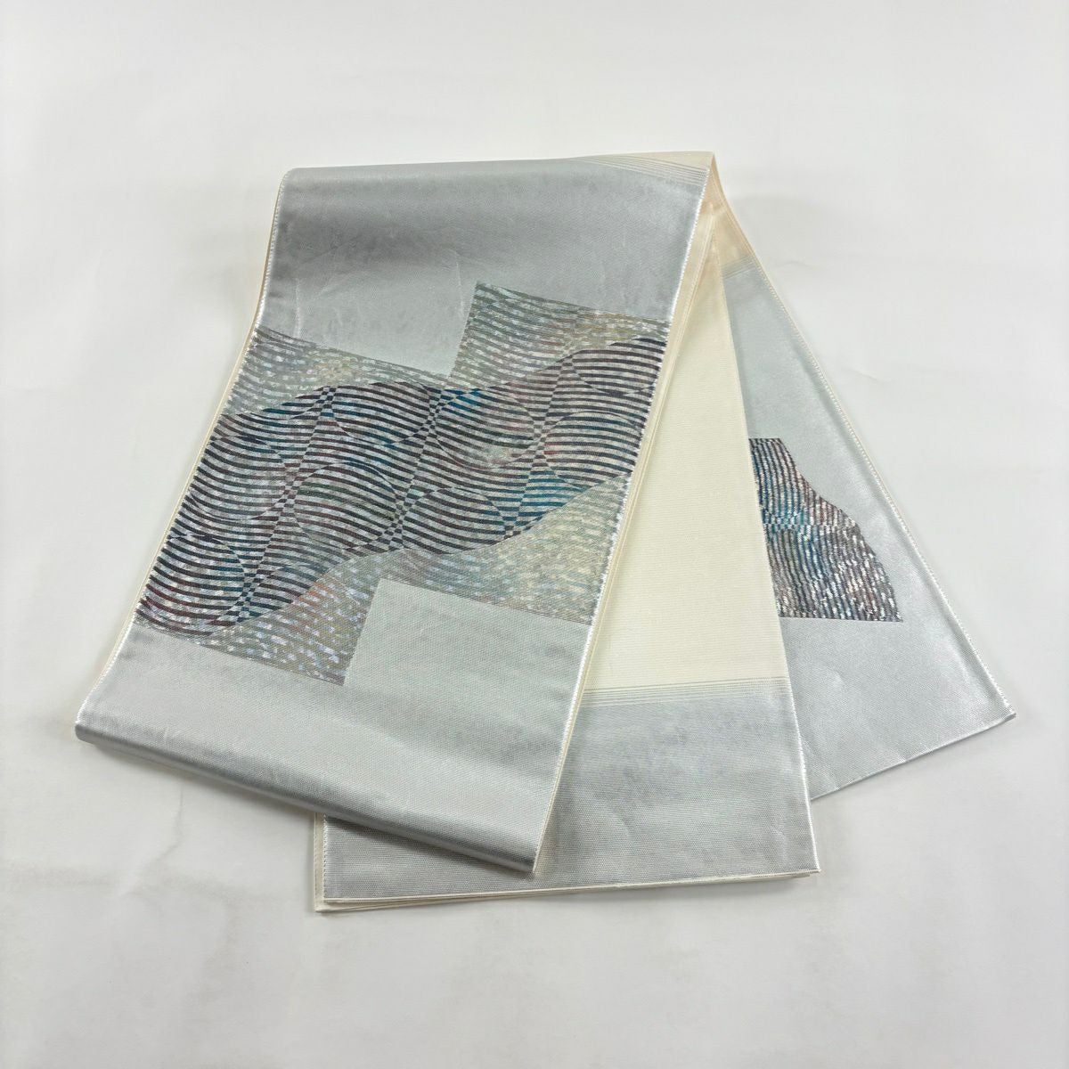 【美品】 袋帯 秀品 幾何学模様 波 箔 銀色 お太鼓柄 正絹