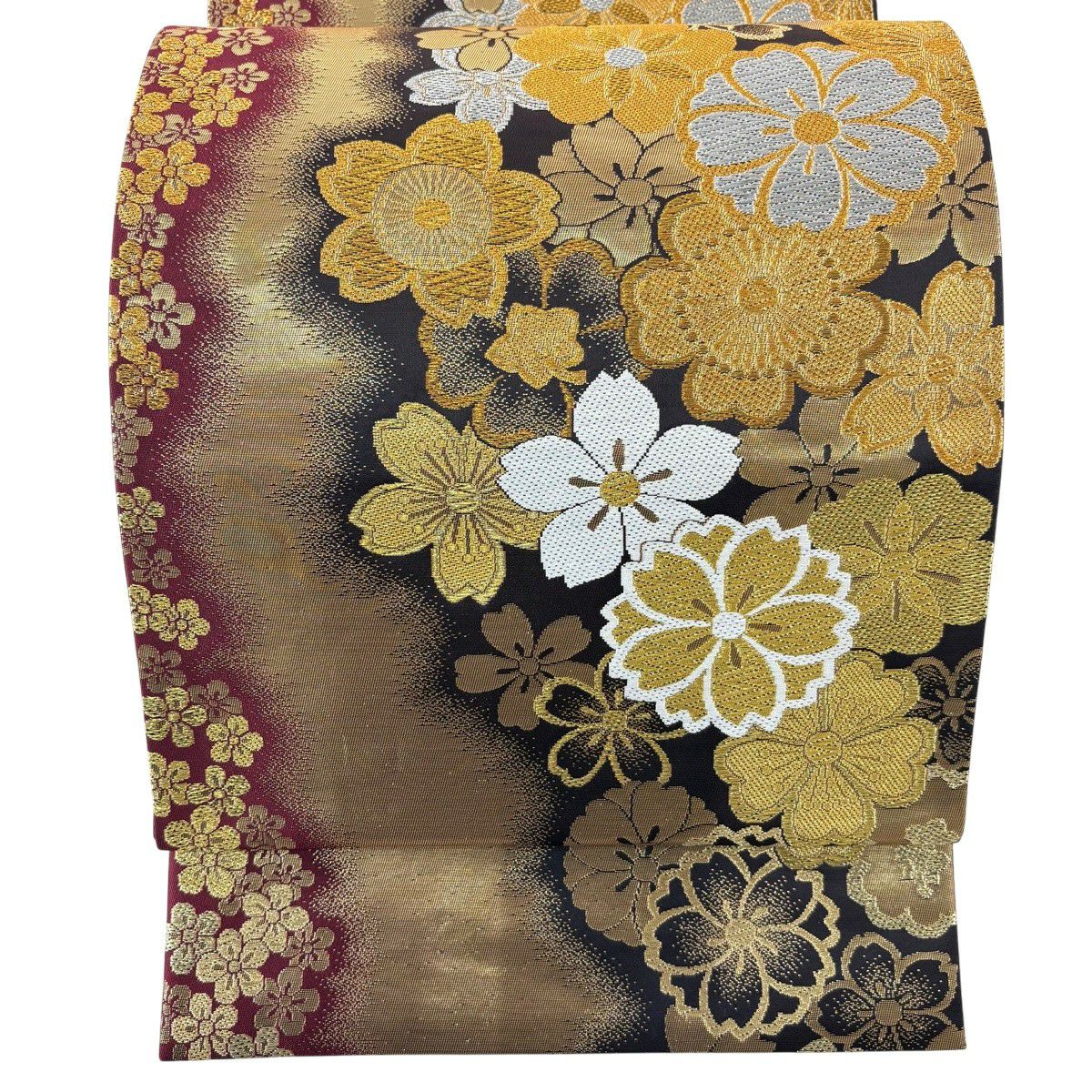 【美品】 袋帯 秀品 振袖向き 桜 金銀糸 箔 金色 六通 正絹