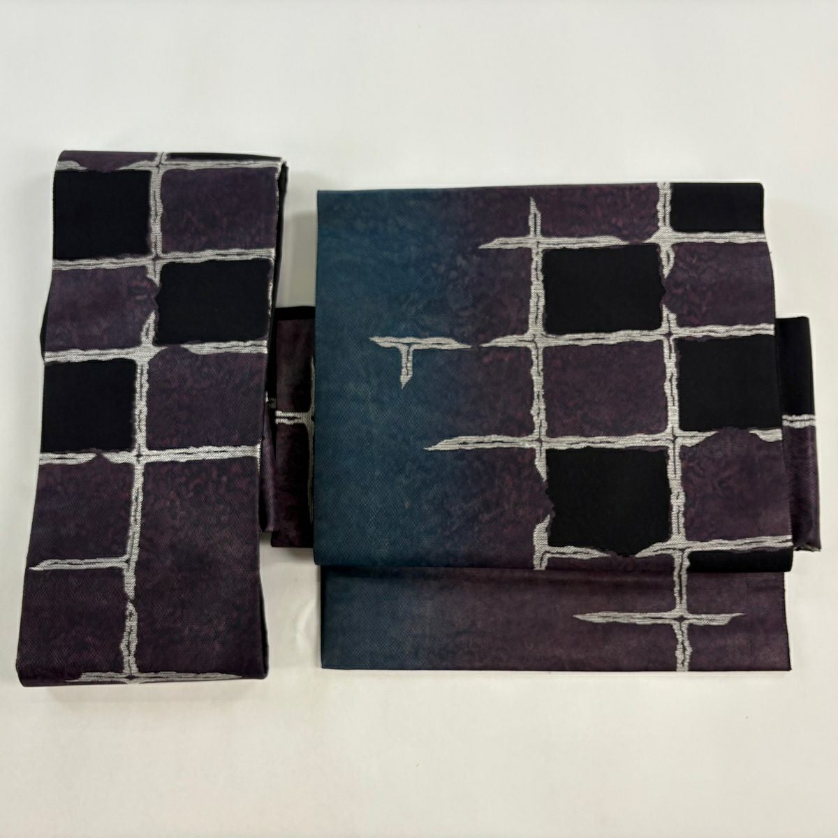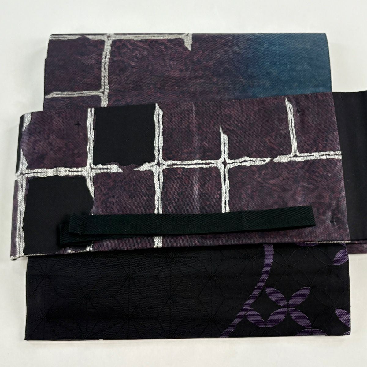 【美品】 袋帯 秀品 幾何学模様 ぼかし柄 箔 紫 全通 正絹