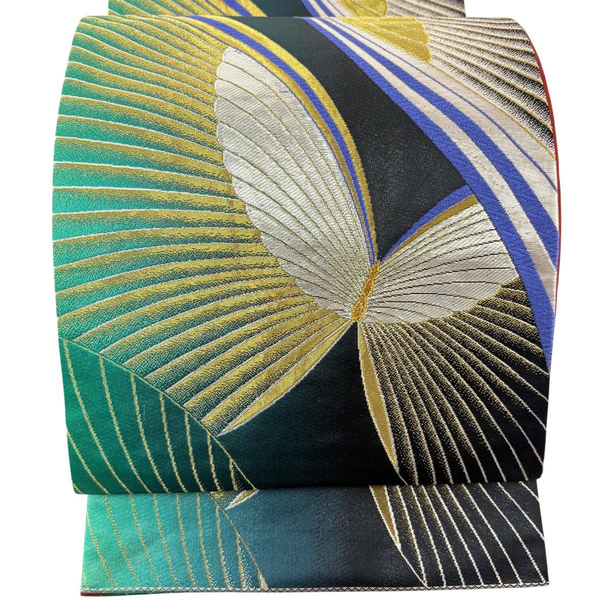 【美品】 袋帯 秀品 蝶 幾何学 金銀糸 箔 濃紺 六通 正絹