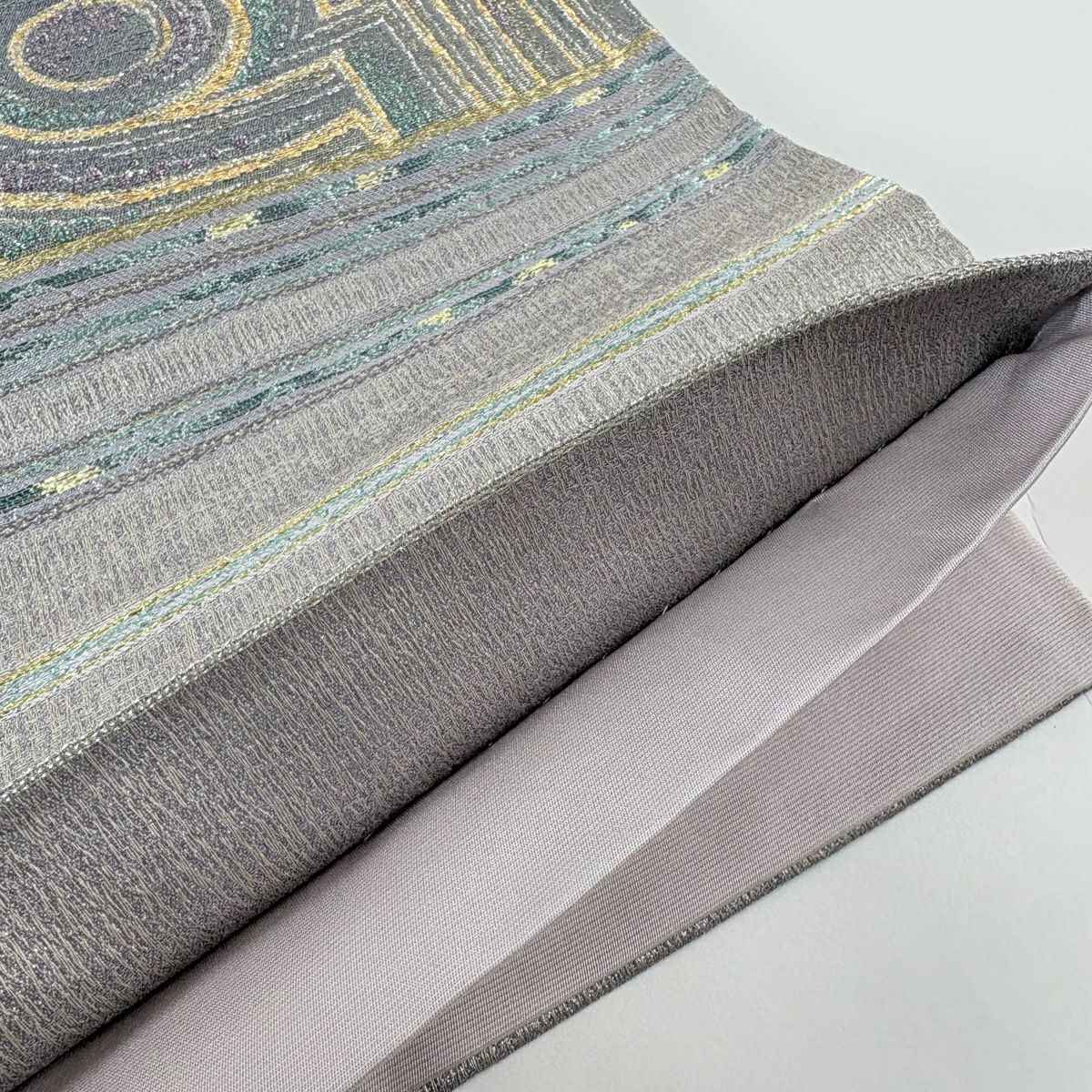 【美品】 袋帯 秀品 波 幾何学 金銀糸 灰紫 お太鼓柄 正絹
