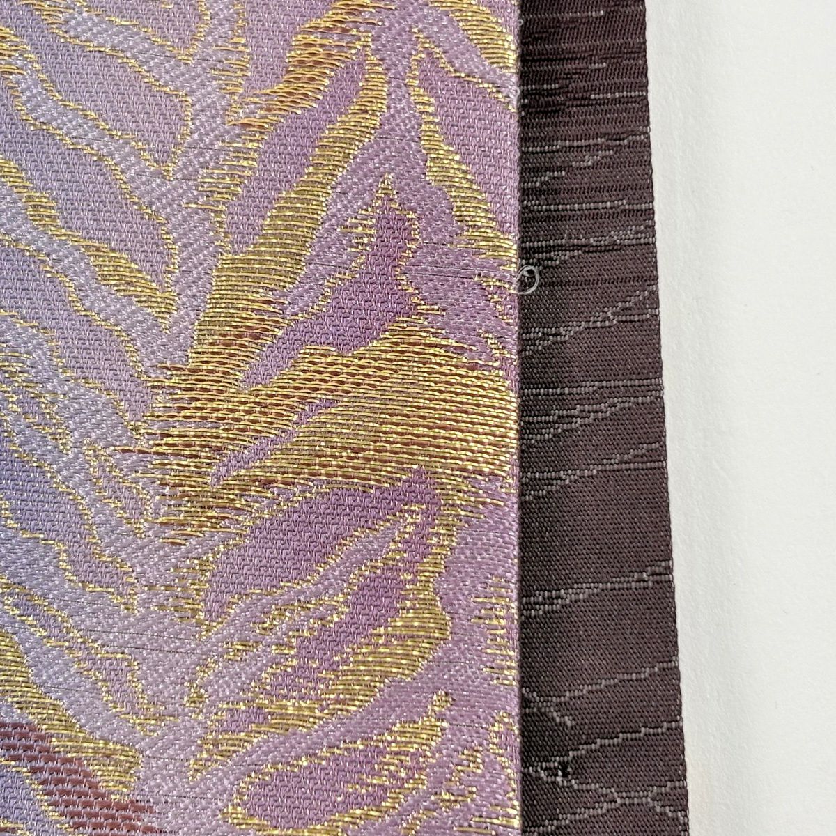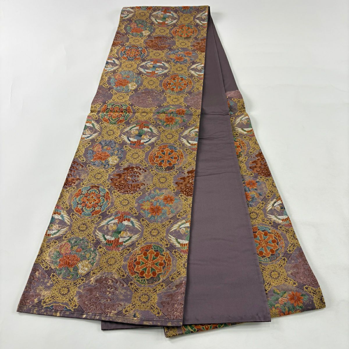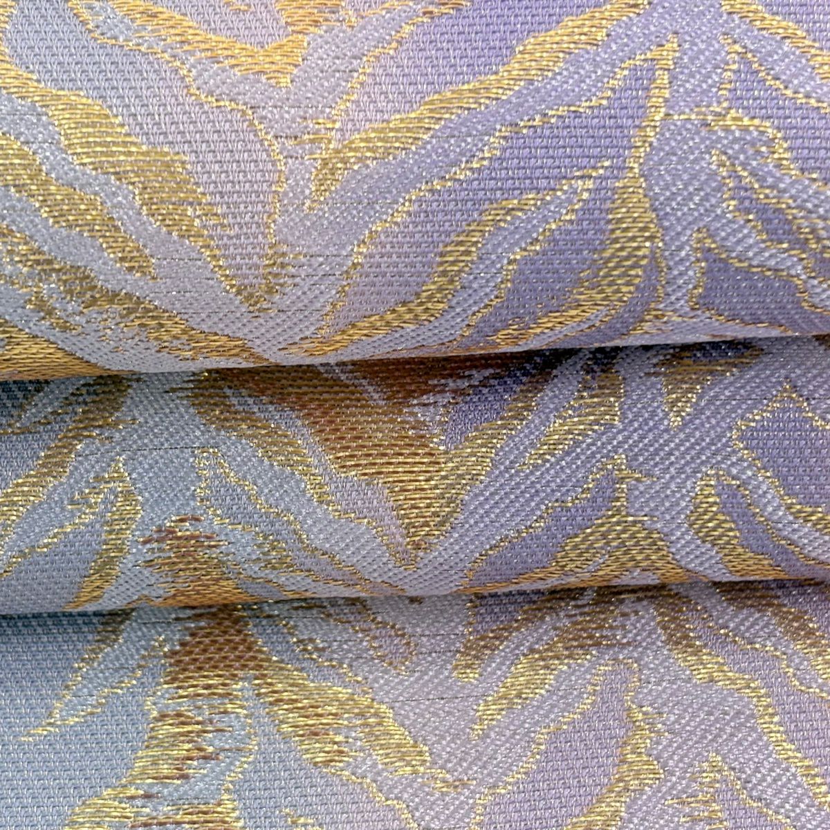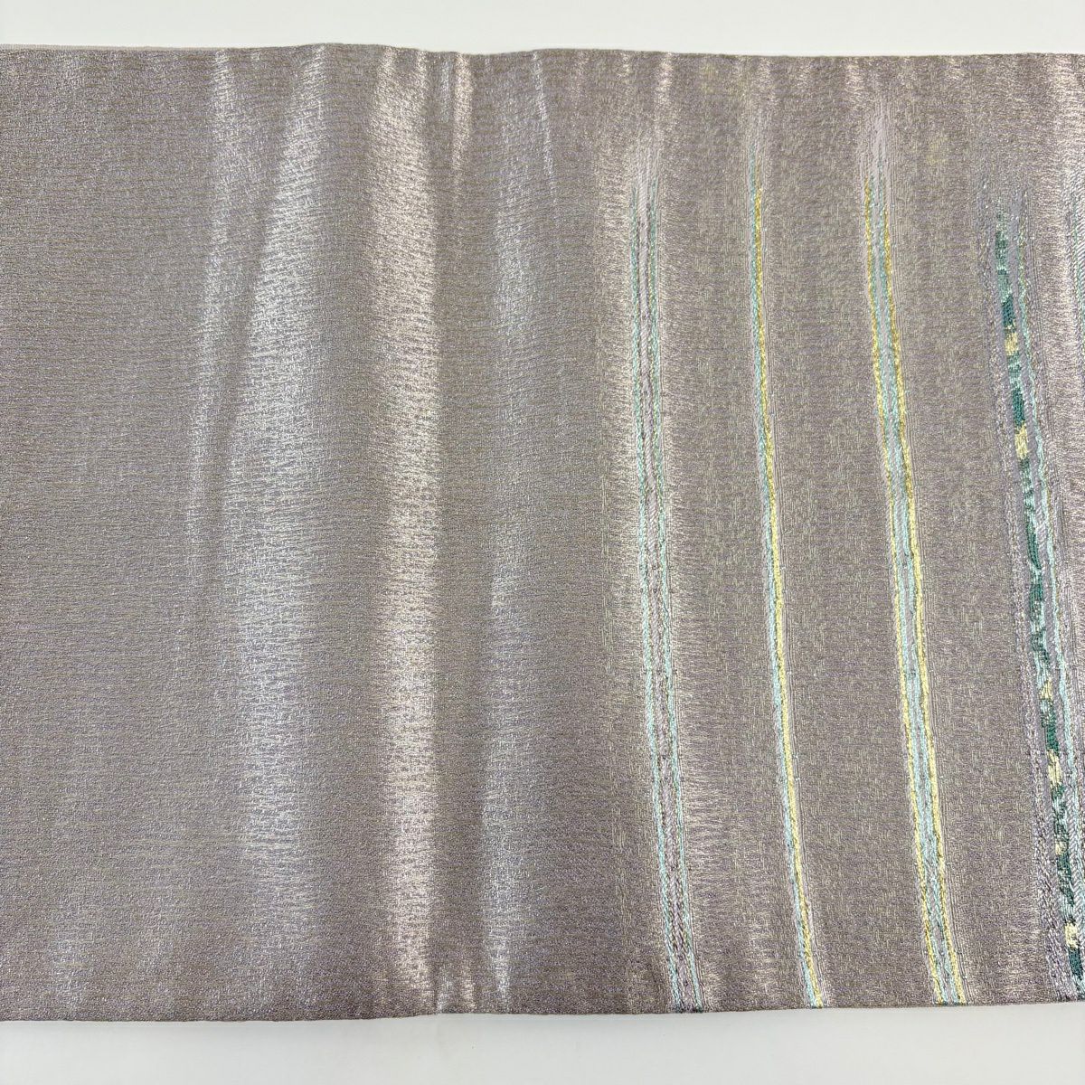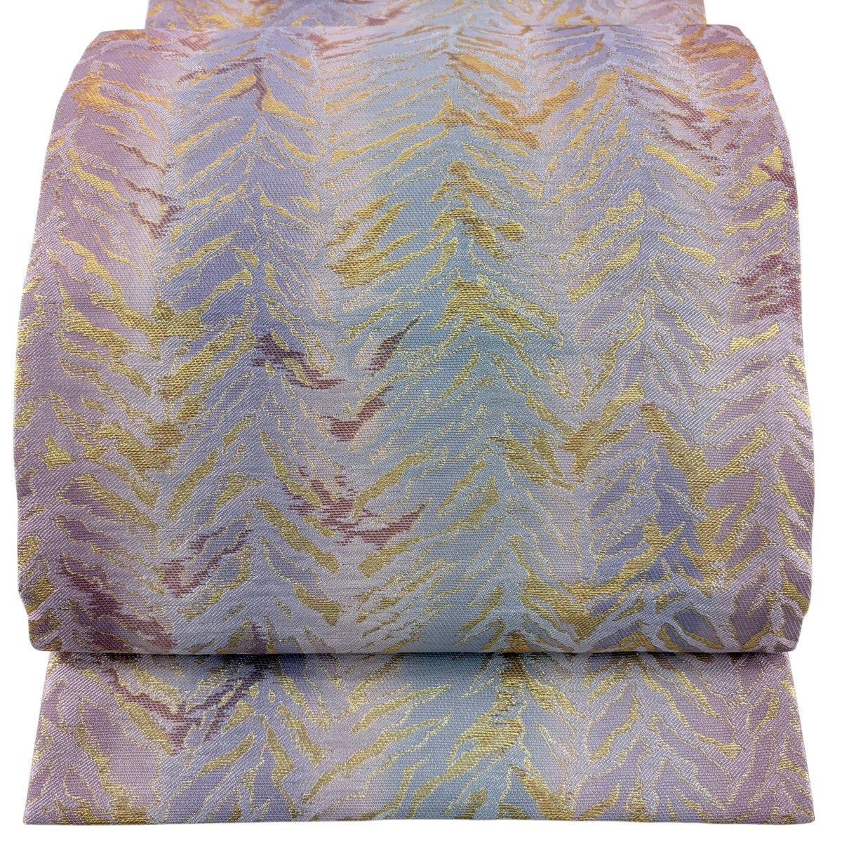 【美品】 袋帯 秀品 幾何学 縞 金銀糸 箔 薄紫 六通 正絹