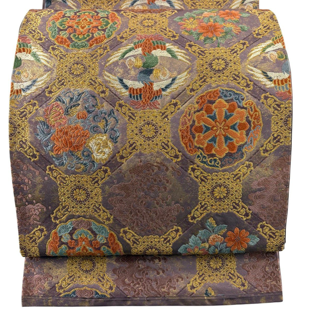 【美品】 袋帯 秀品 華文 花鳥 金銀糸 箔 灰色 六通 正絹