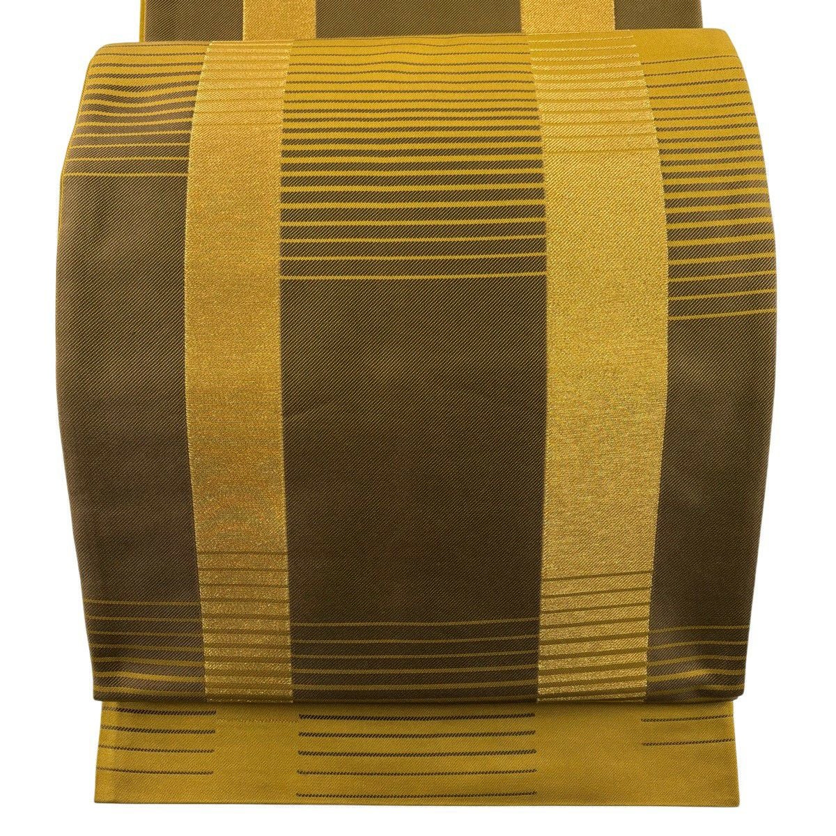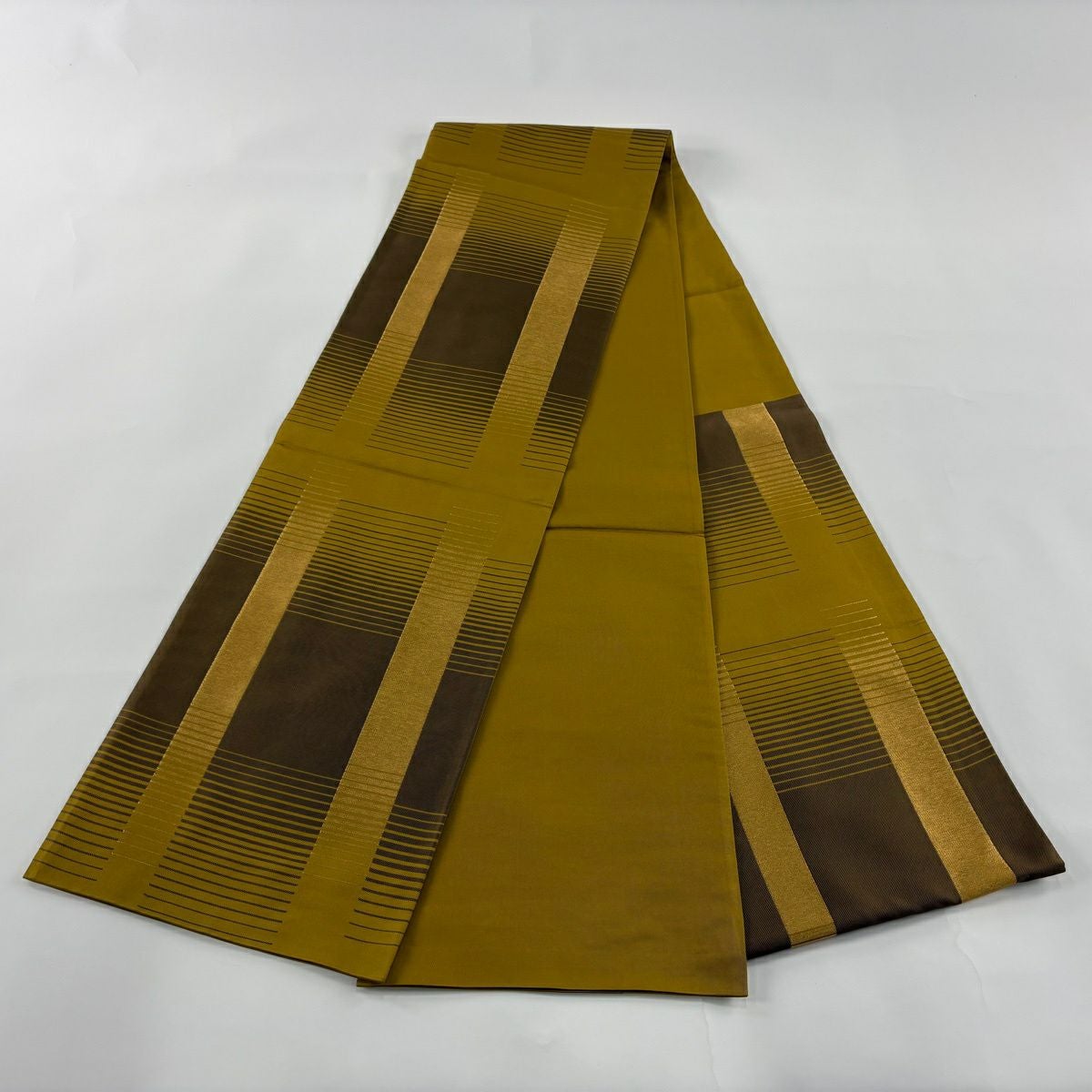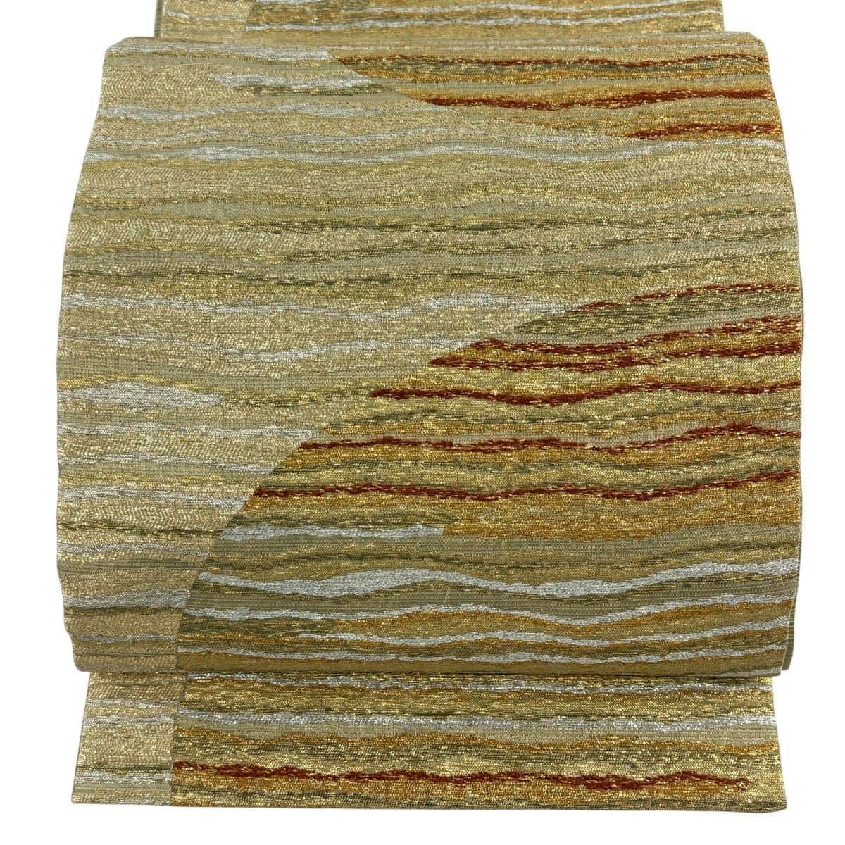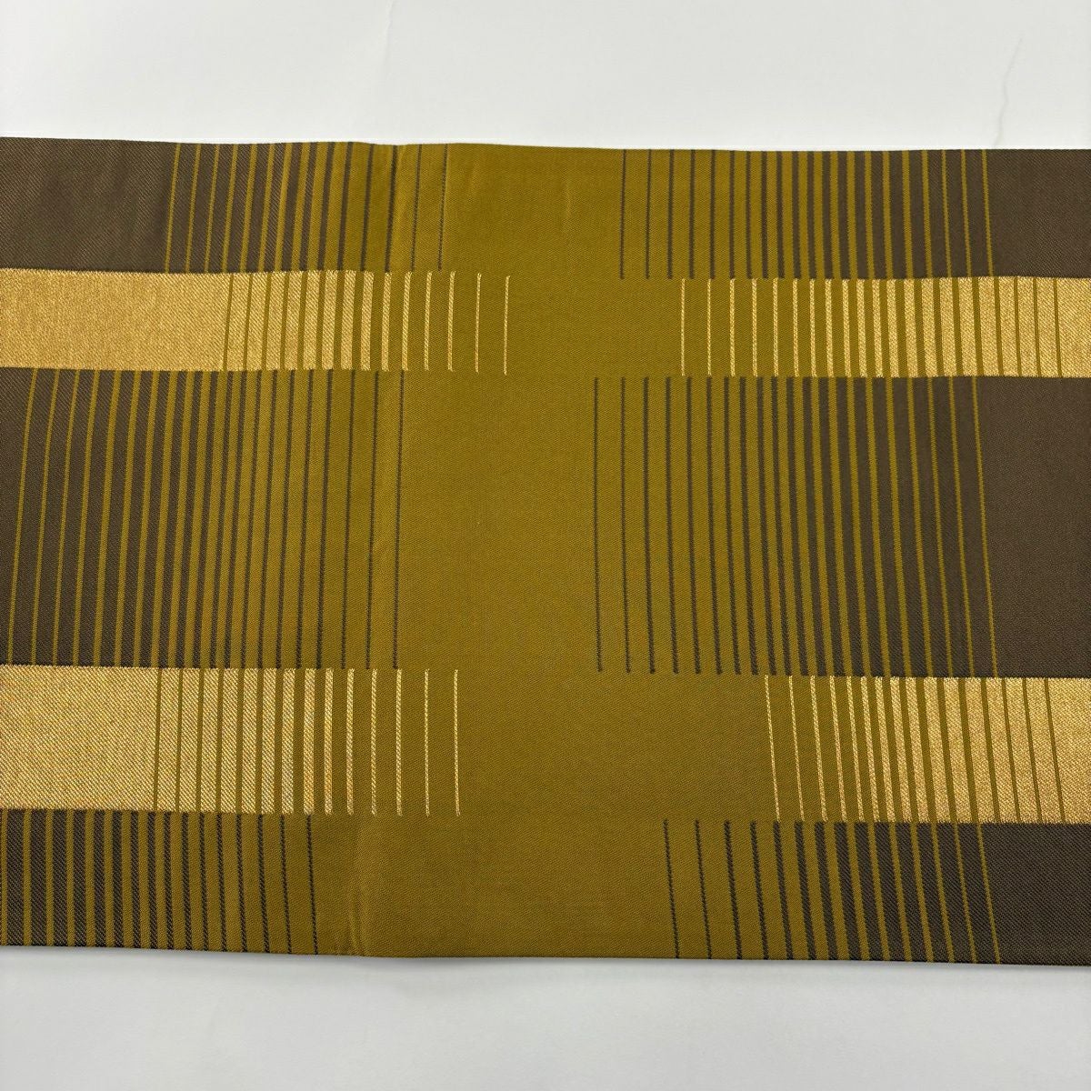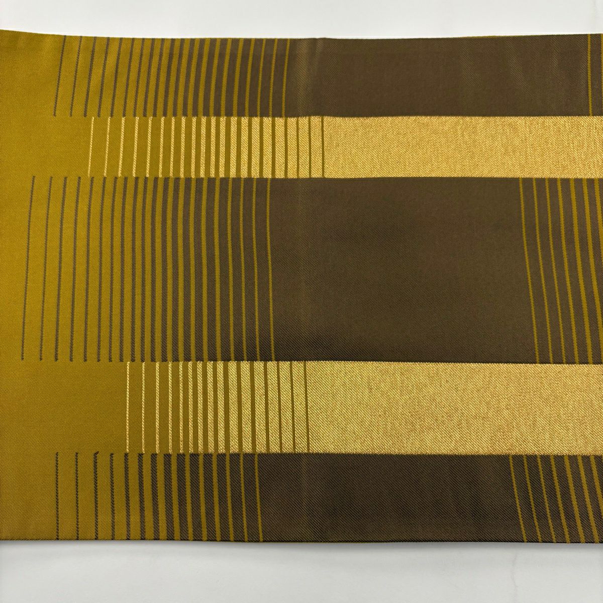 袋帯 秀品 やまと 縞模様 幾何学模様 金糸 黄土色 六通 正絹