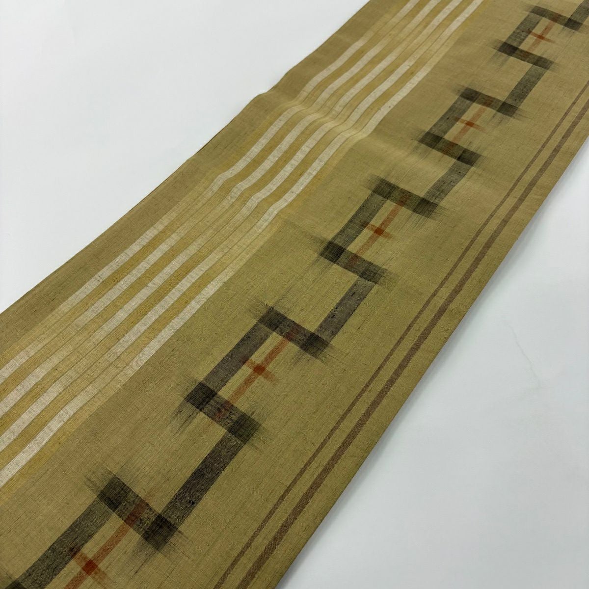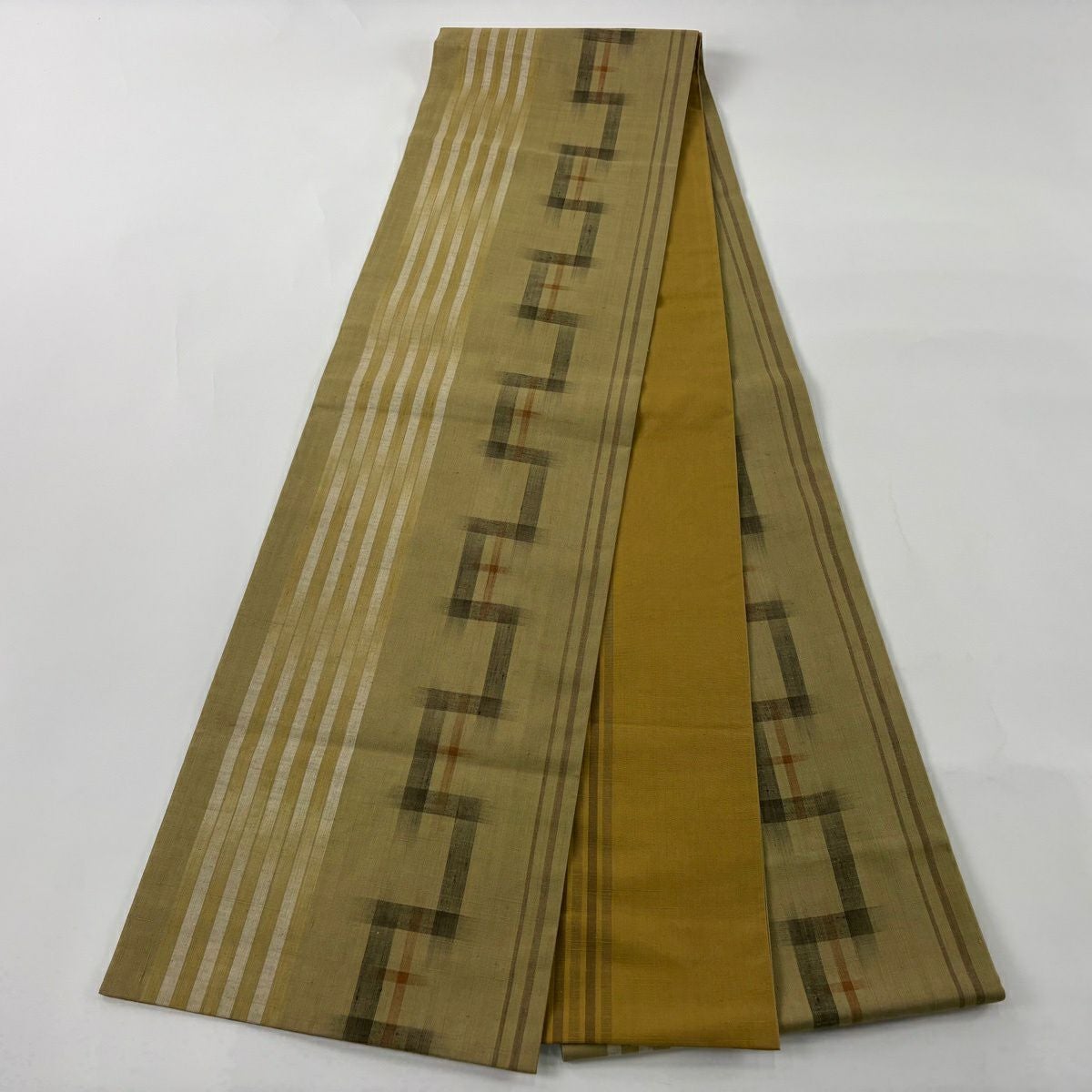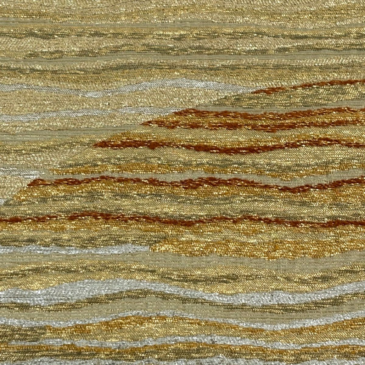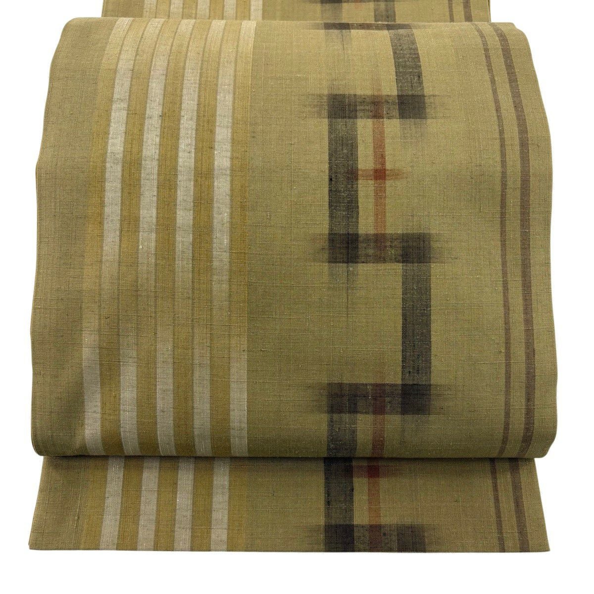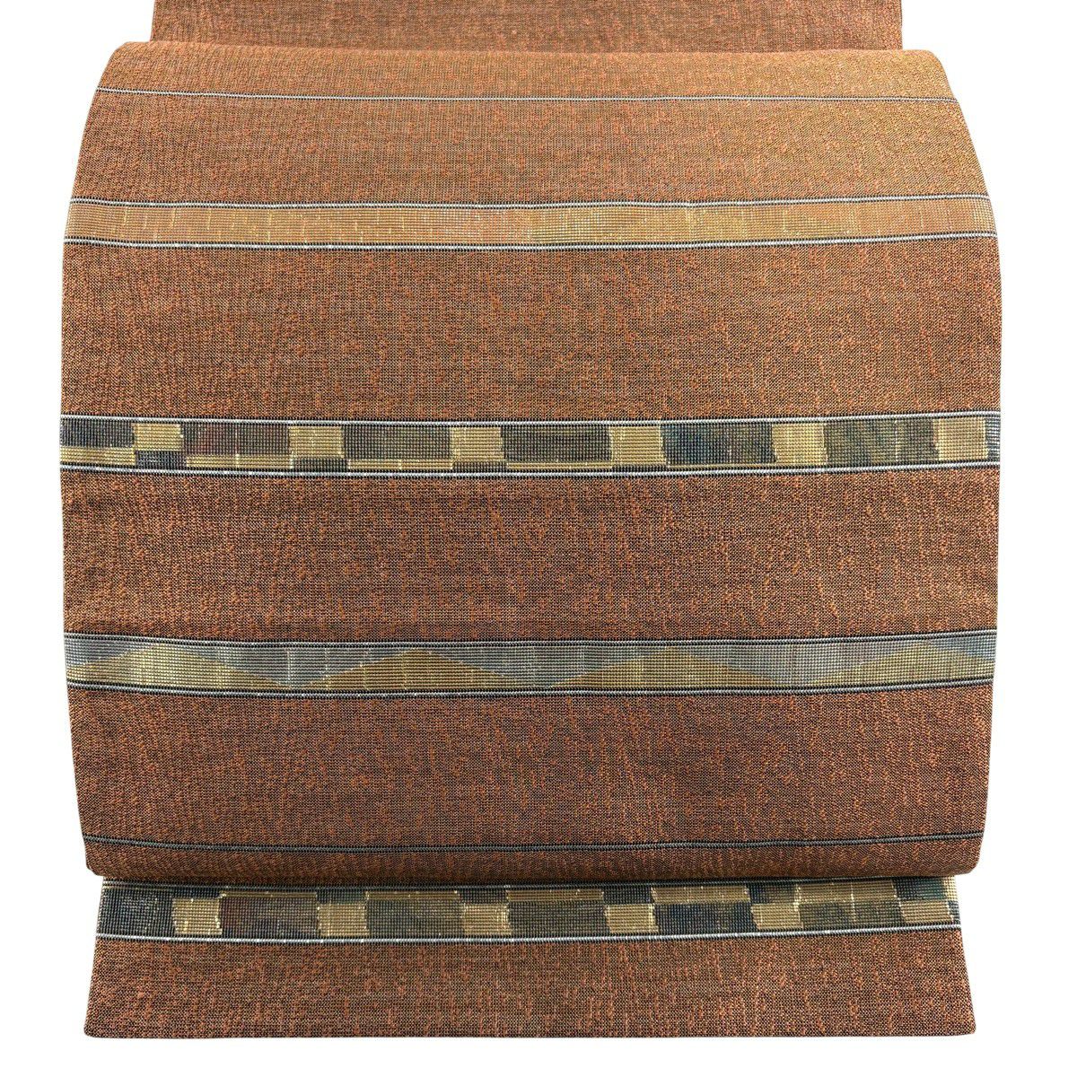 袋帯 秀品 やまと 縞模様 幾何学模様 金糸 黄土色 六通 正絹
