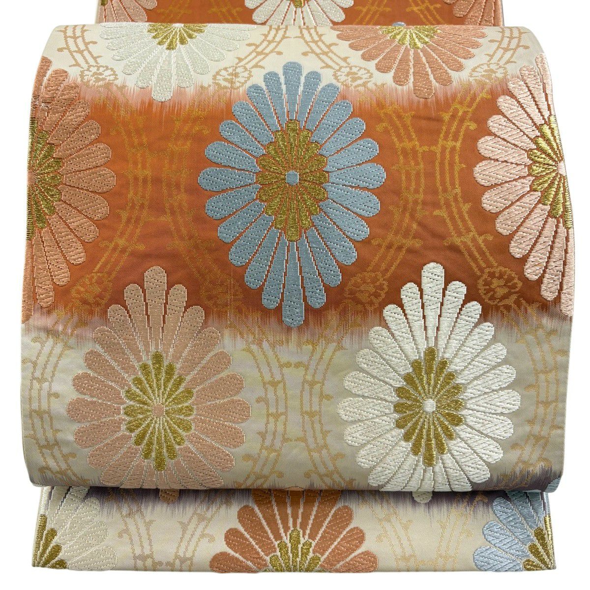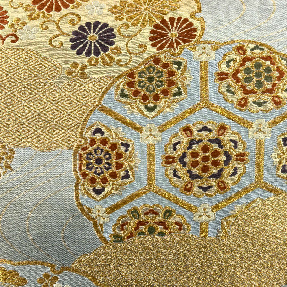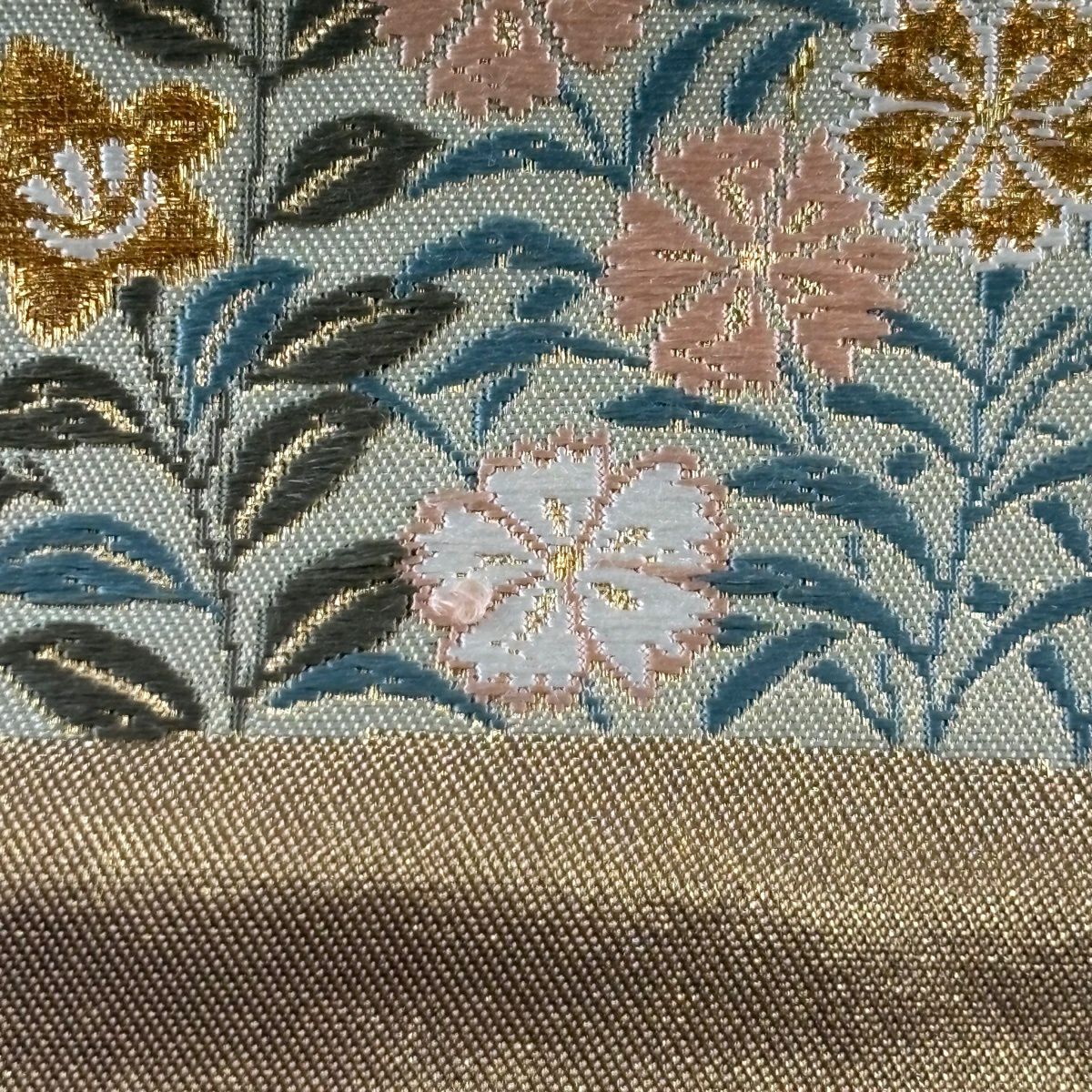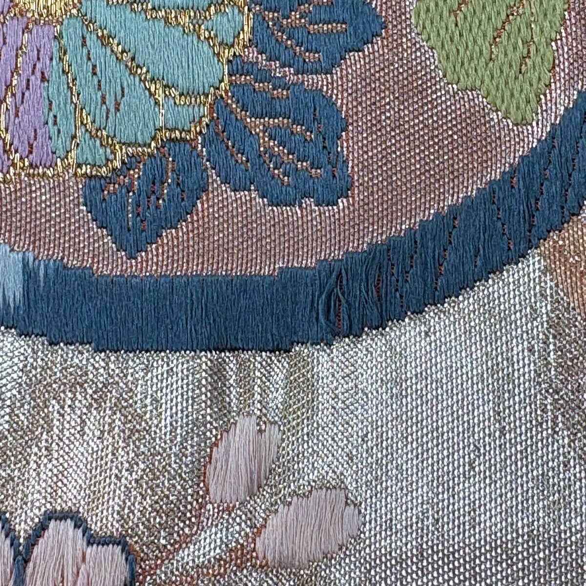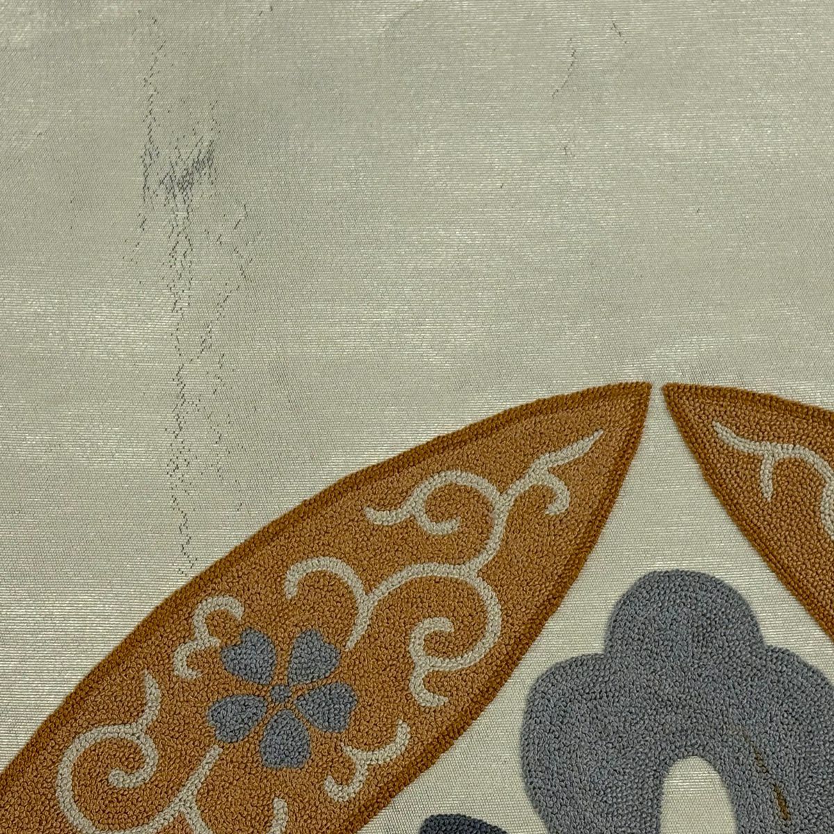 袋帯 秀品 花 幾何学模様 金糸 箔 ベージュ 六通 正絹