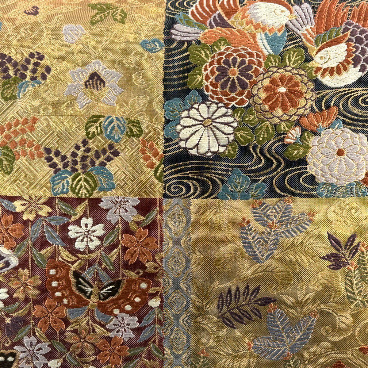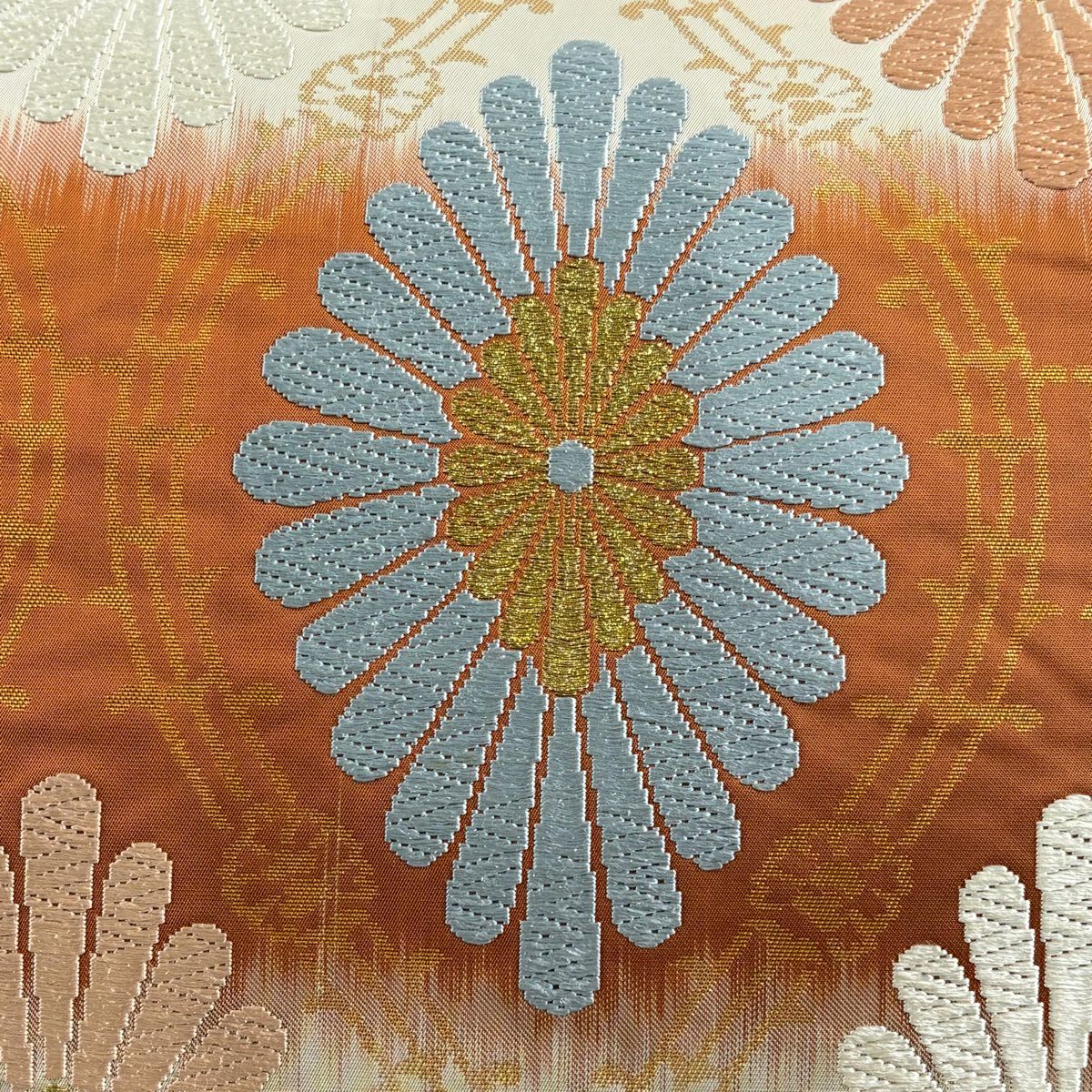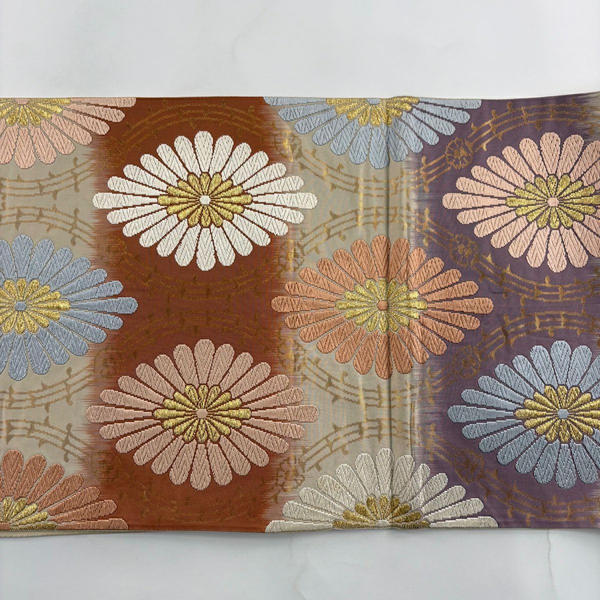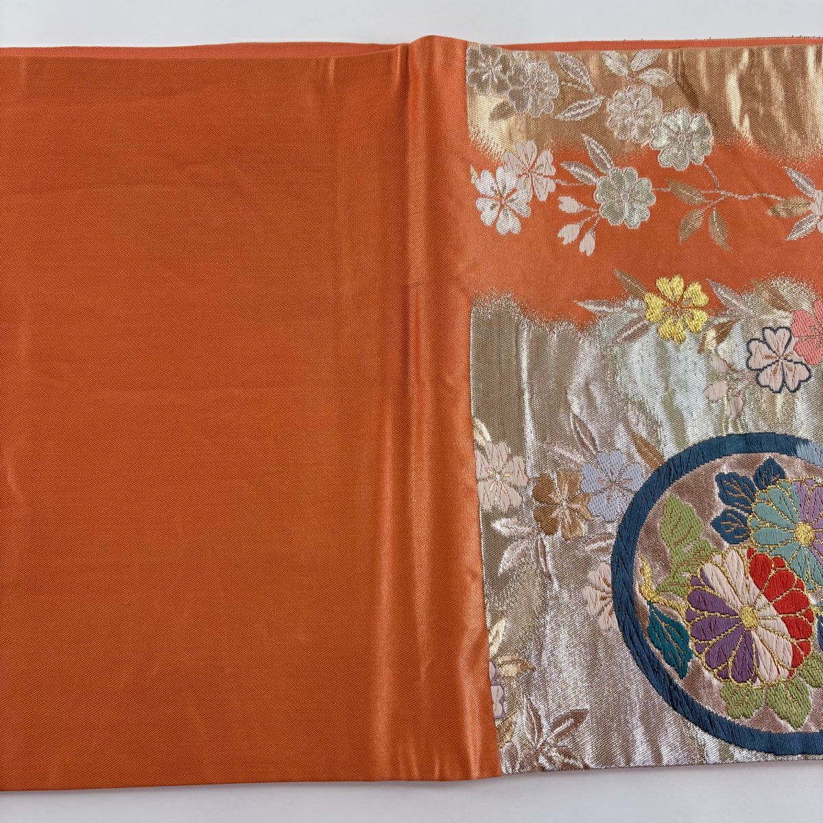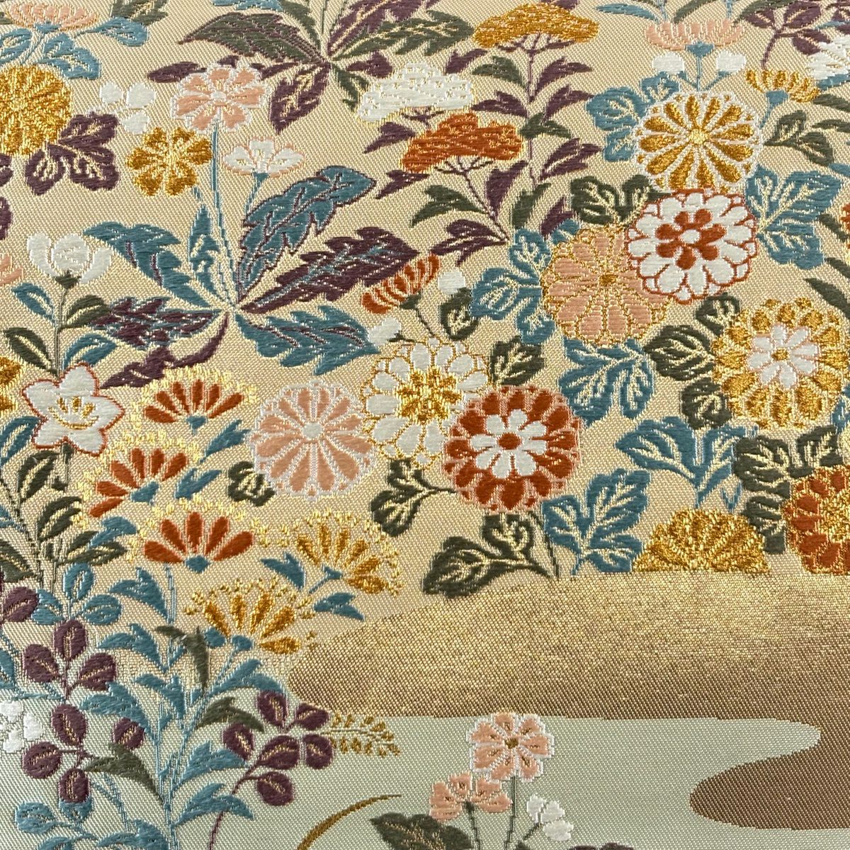袋帯 秀品 花 幾何学模様 金糸 箔 ベージュ 六通 正絹