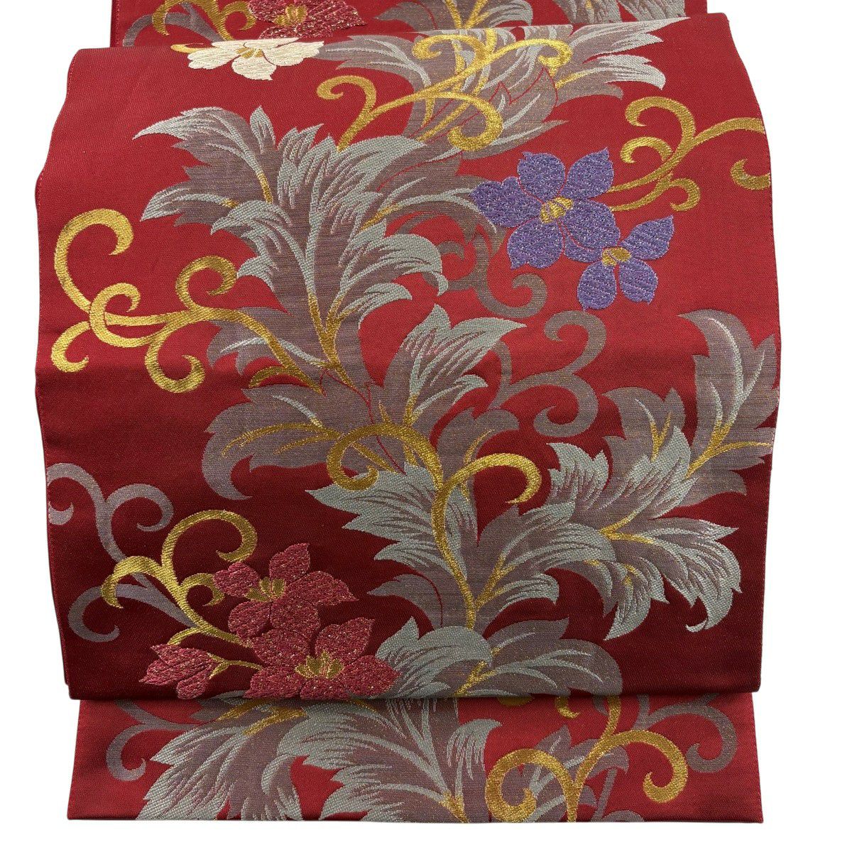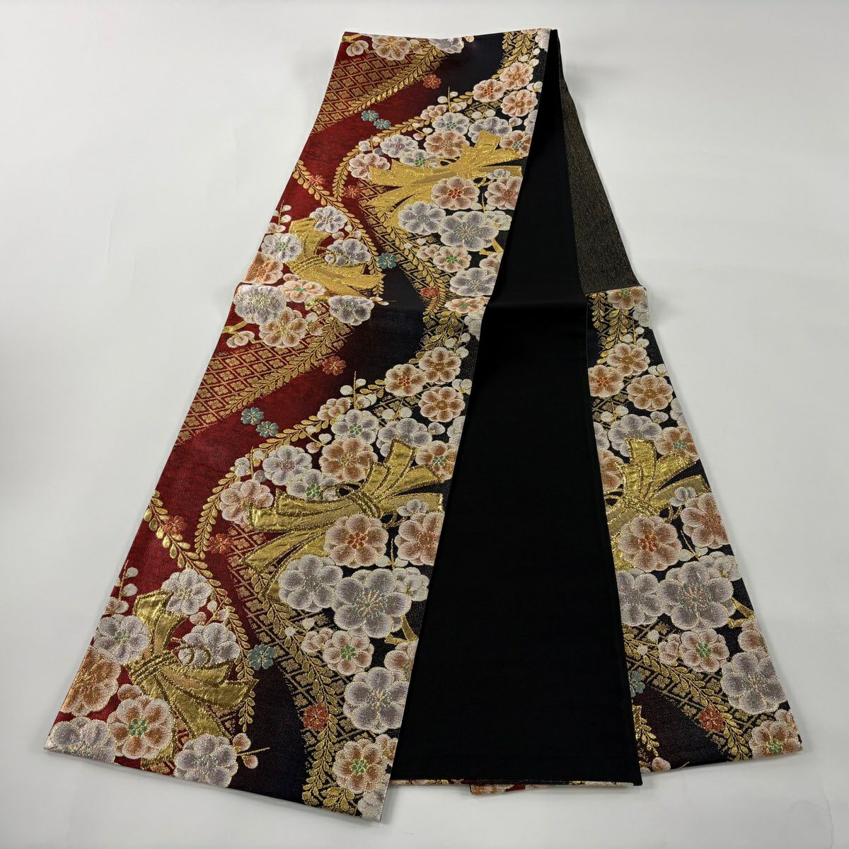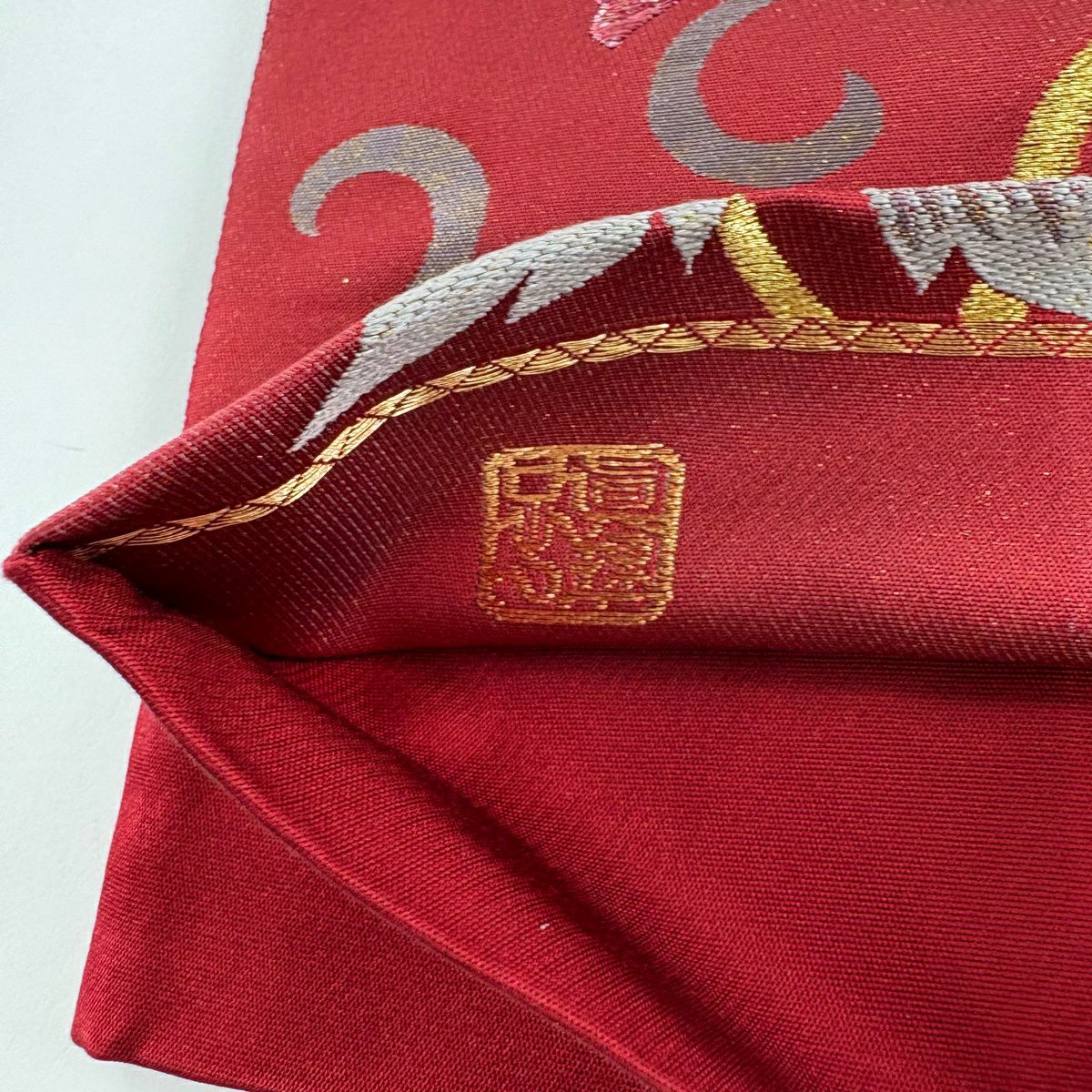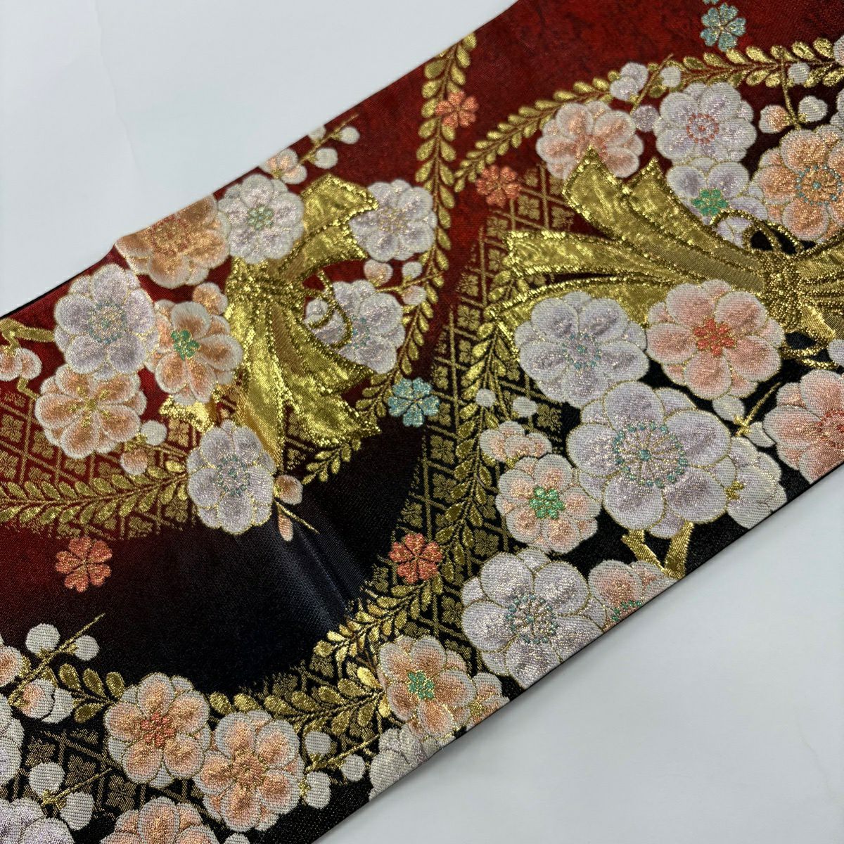 【美品】 袋帯 秀品 束ね熨斗 梅 ラメ糸 箔 赤 六通 正絹