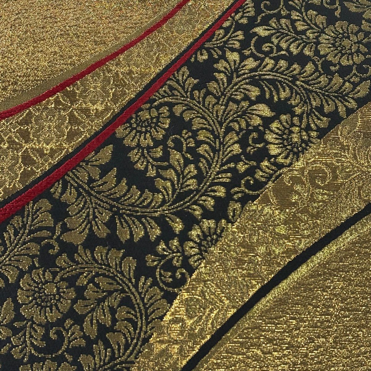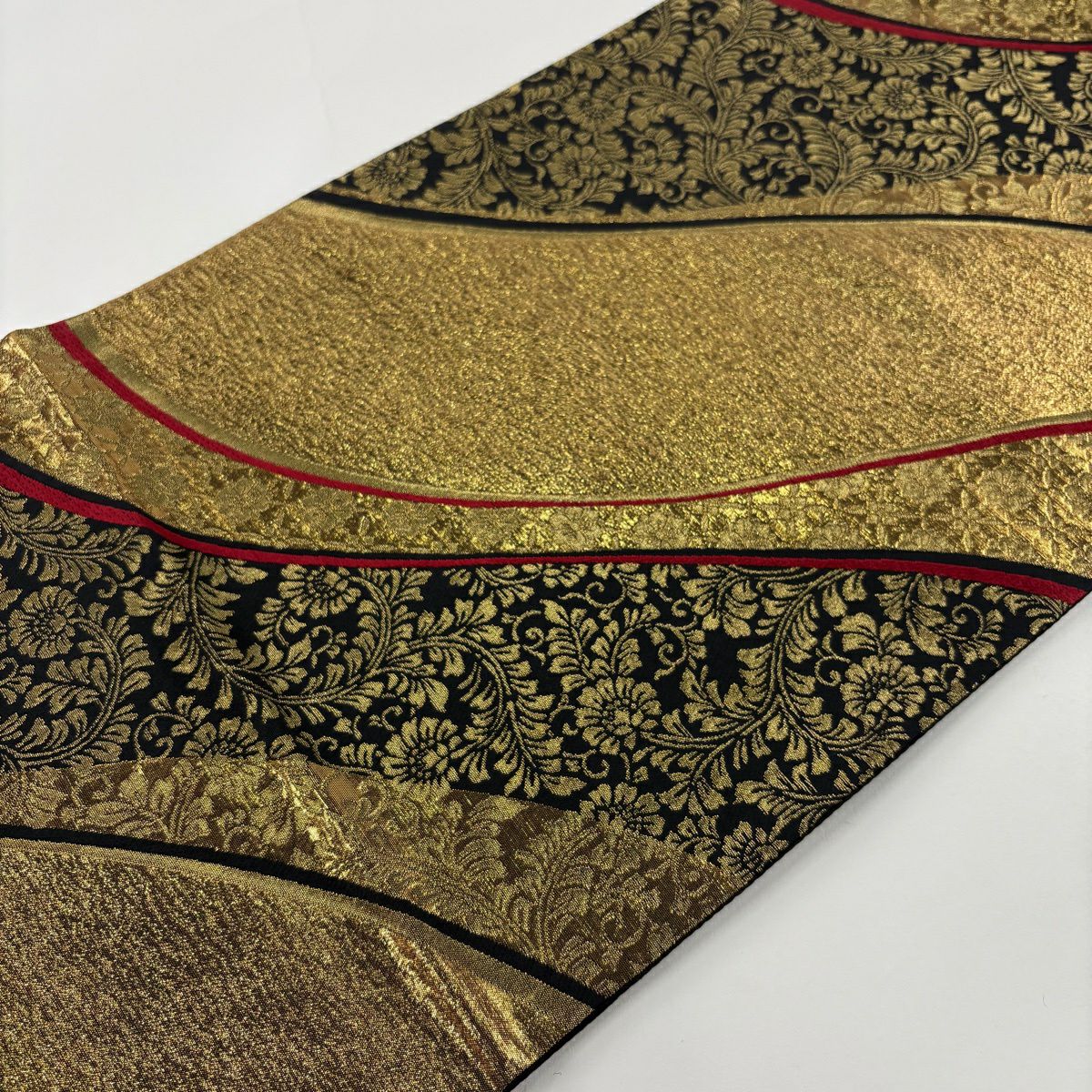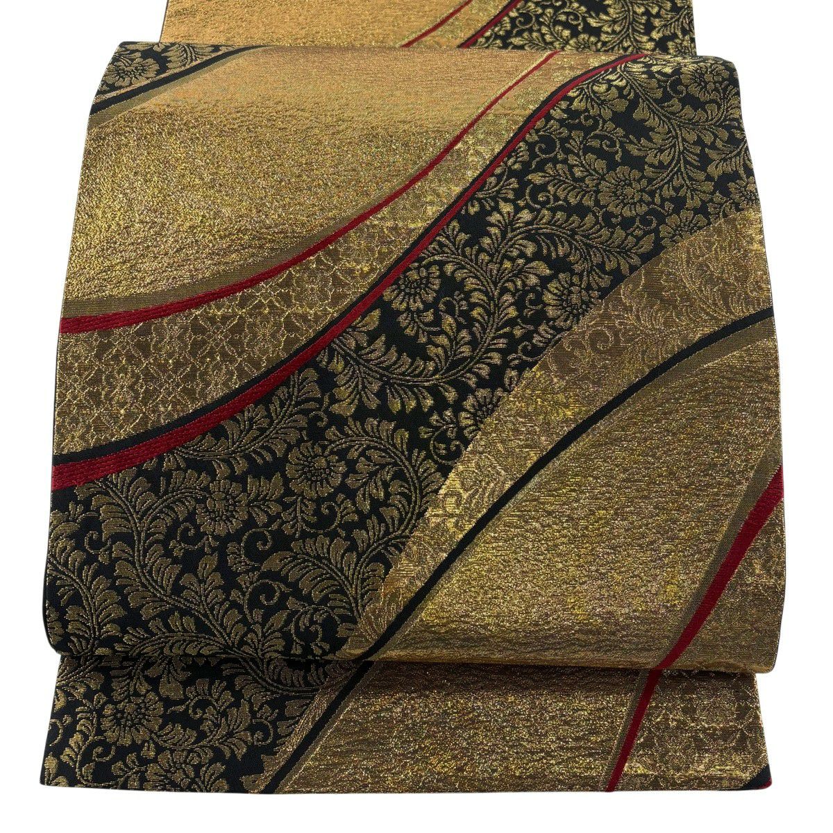 【美品】 袋帯 秀品 花唐草 幾何学模様 箔 金色 全通 正絹