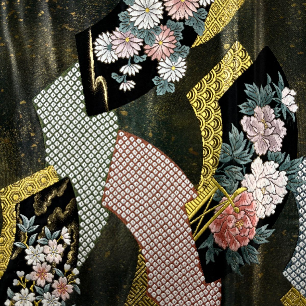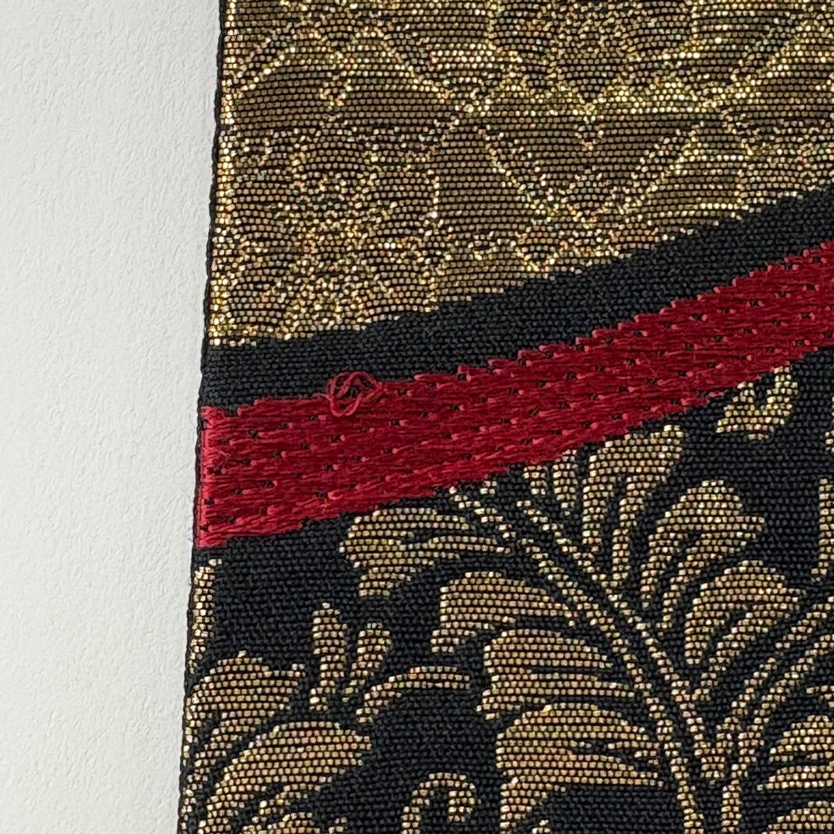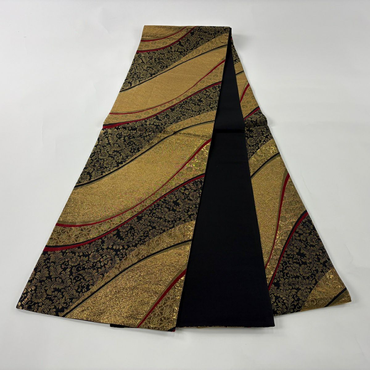 【美品】 袋帯 秀品 花唐草 幾何学模様 箔 金色 全通 正絹