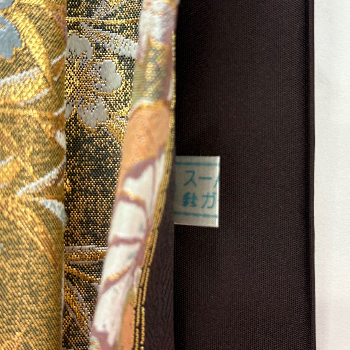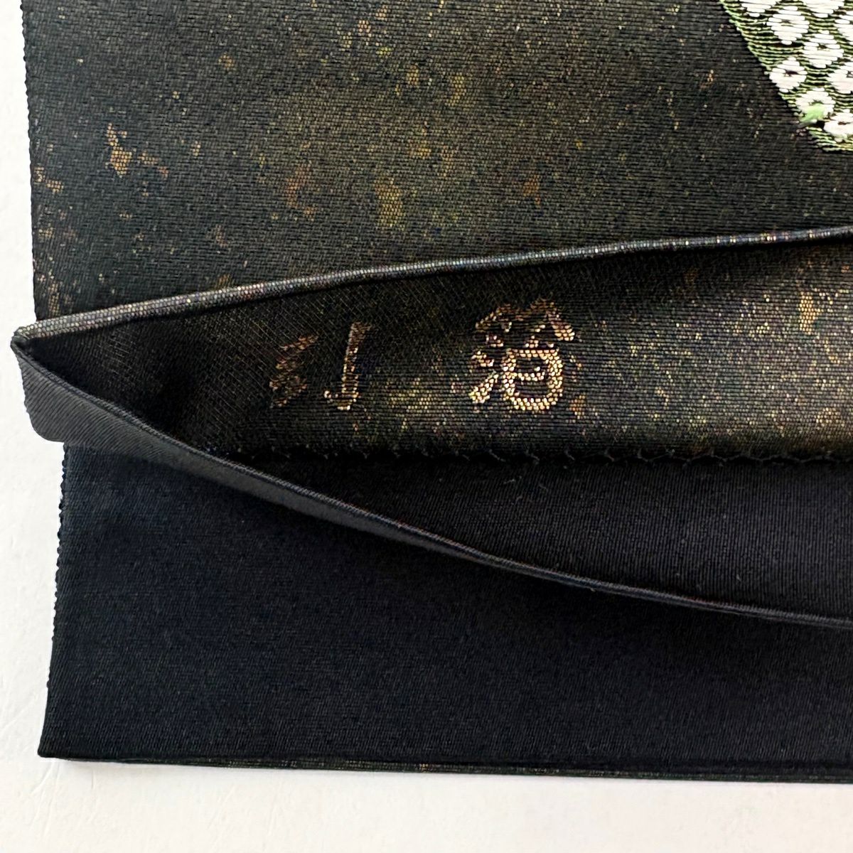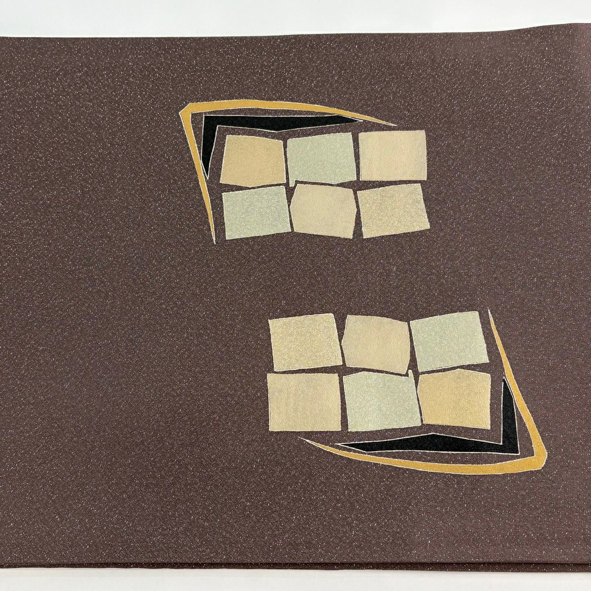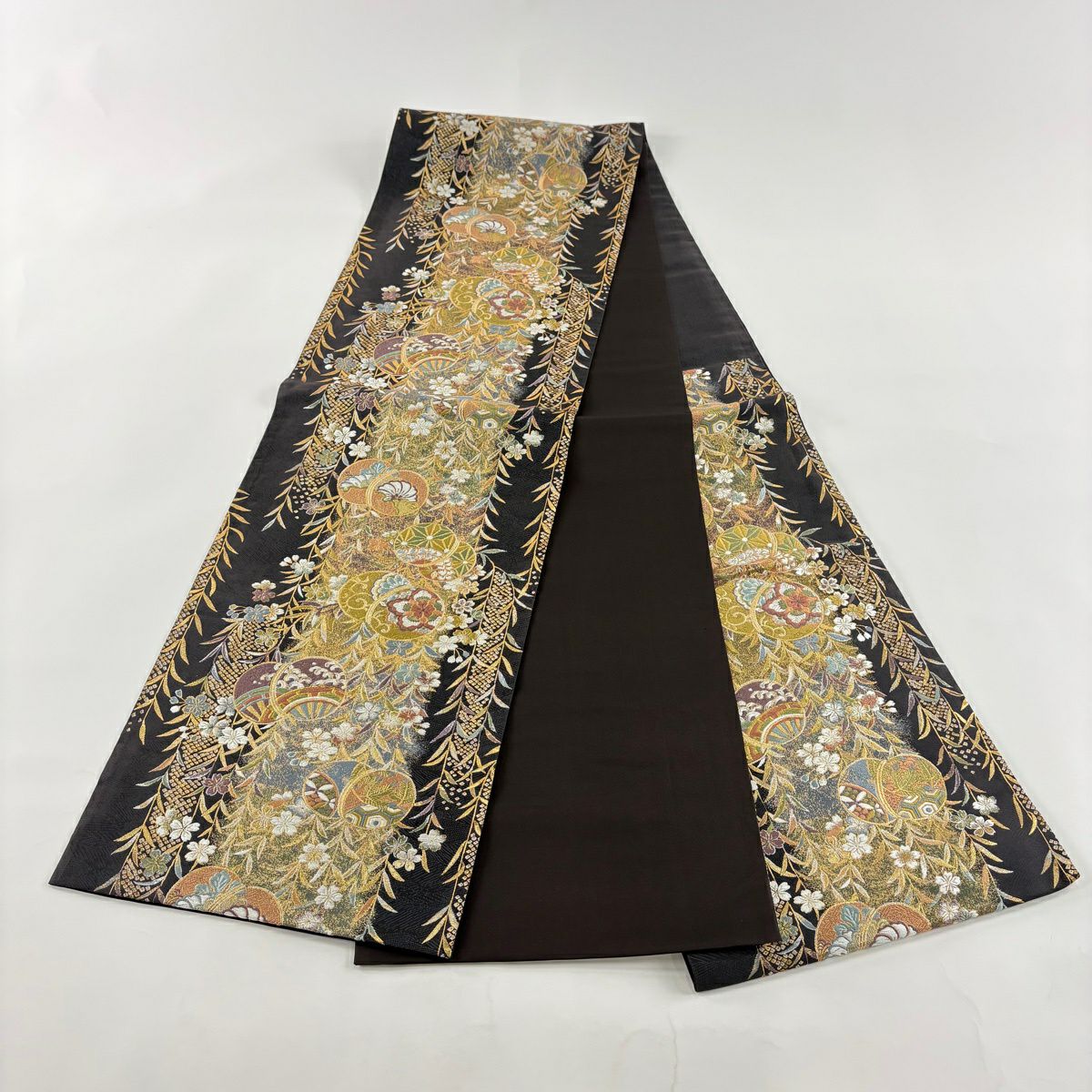 【美品】 袋帯 秀品 草花 文字 金糸 箔 焦茶色 六通 正絹