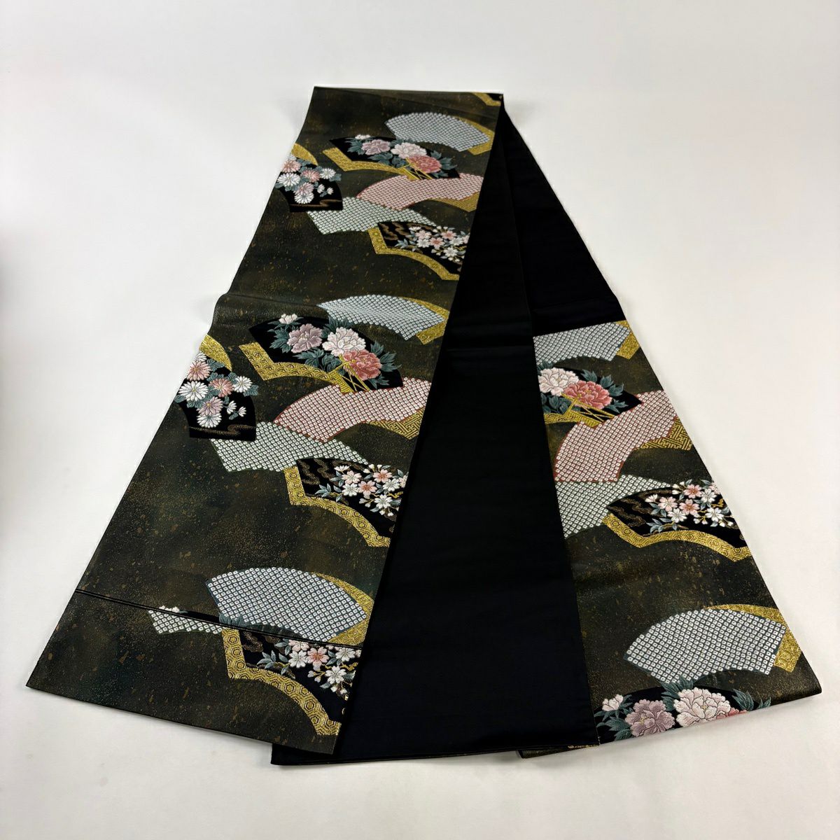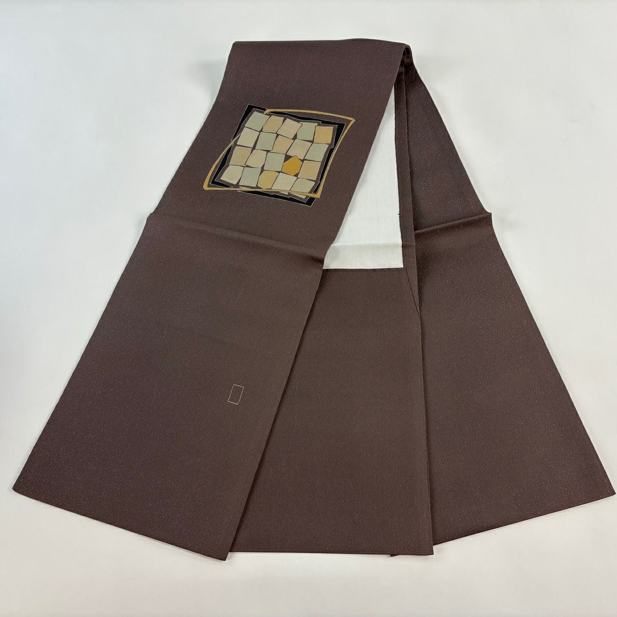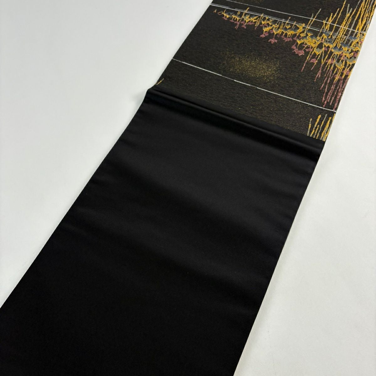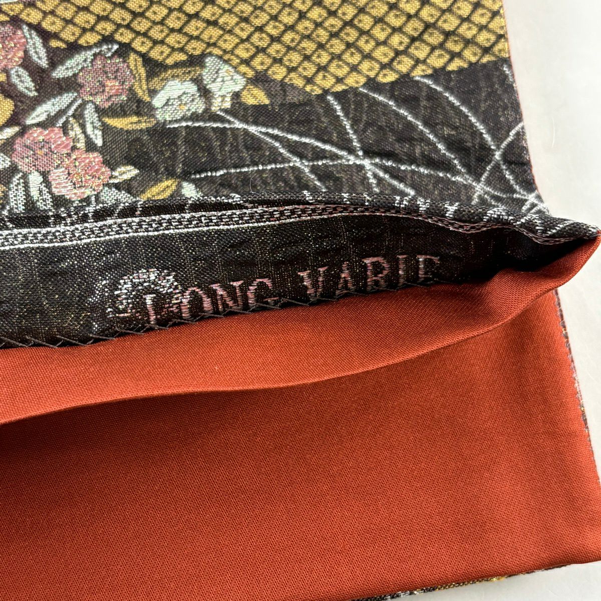 【美品】 袋帯 秀品 草花 文字 金糸 箔 焦茶色 六通 正絹