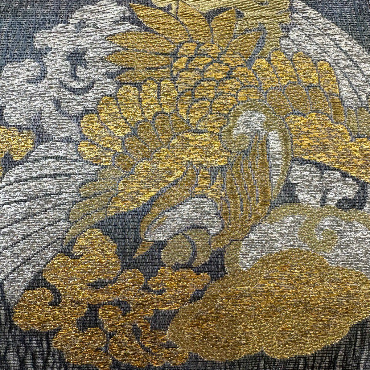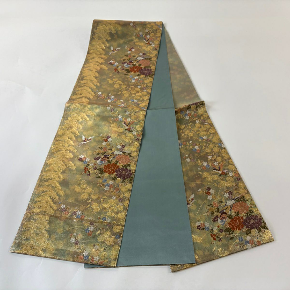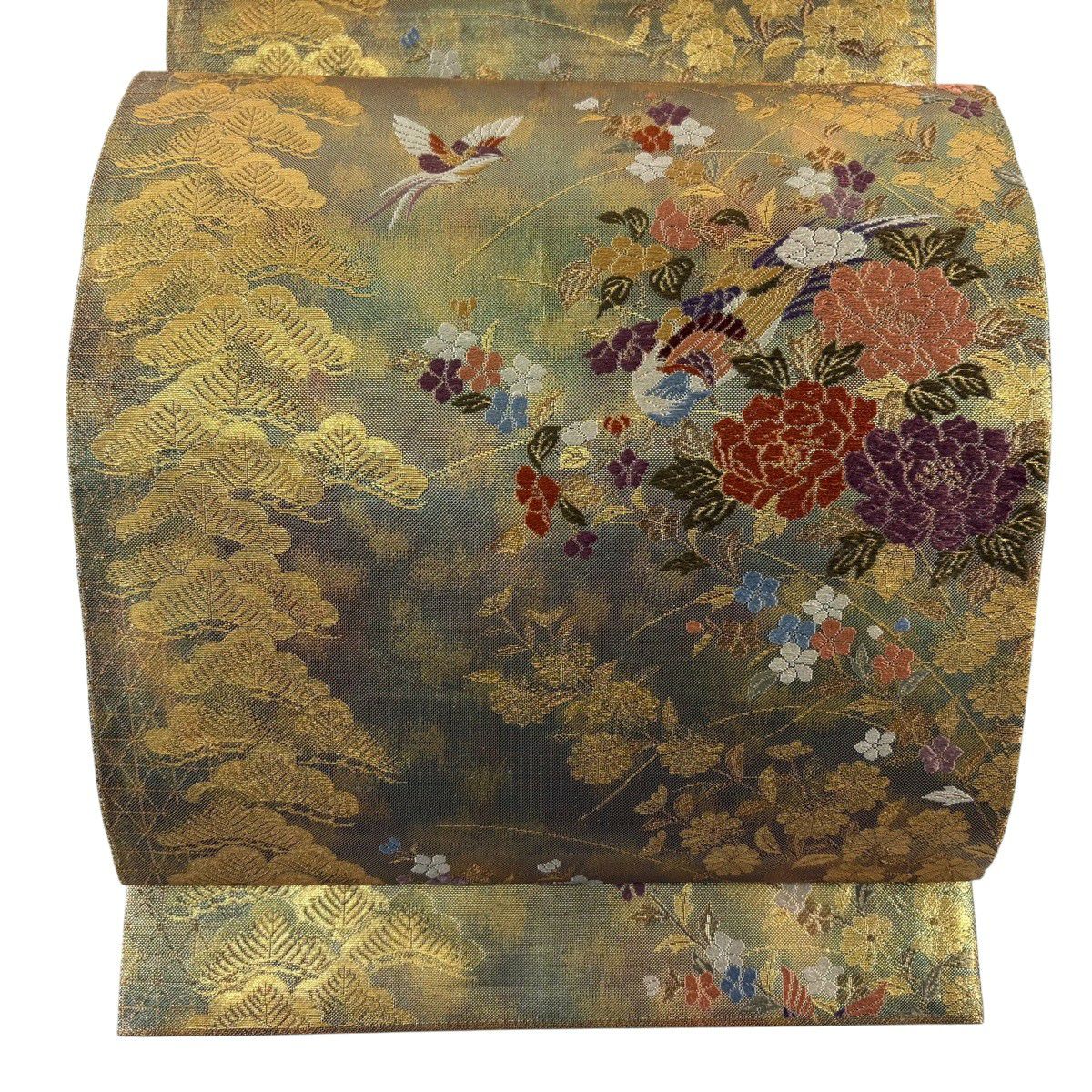 袋帯 秀品 関西仕立て 松献上花鳥紋 金糸 箔 金色 六通 正絹