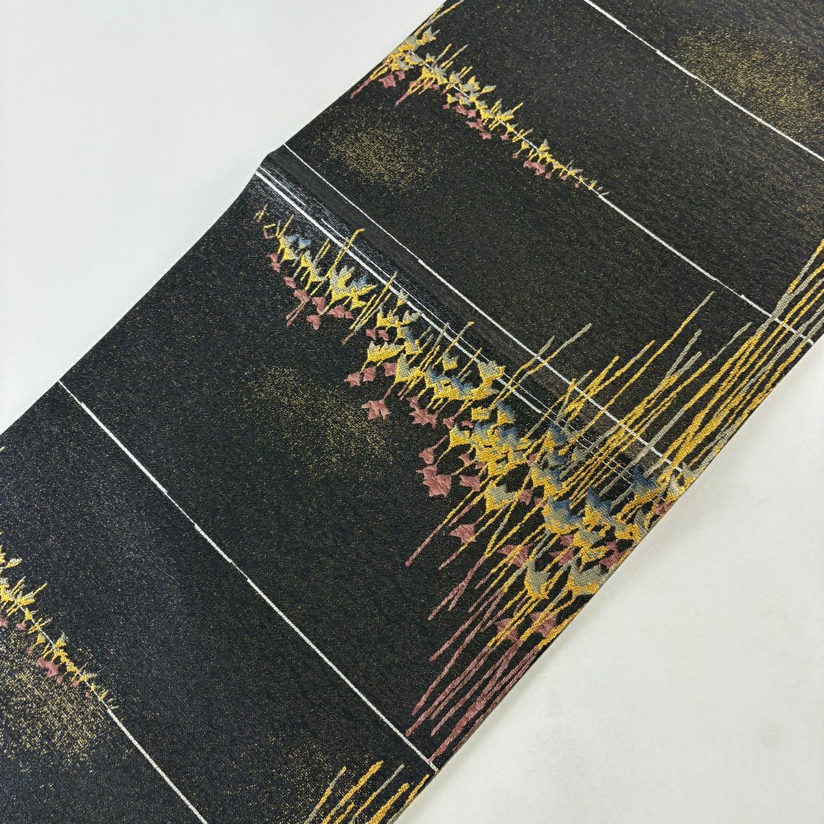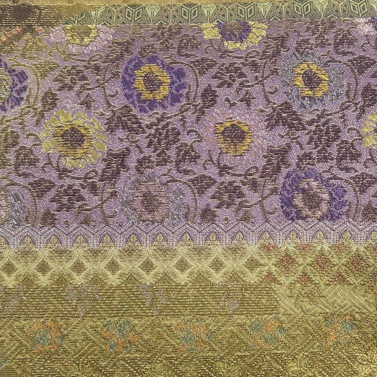 【美品】 袋帯 秀品 草花 箔ちらし 箔 唐織 金色 六通 正絹