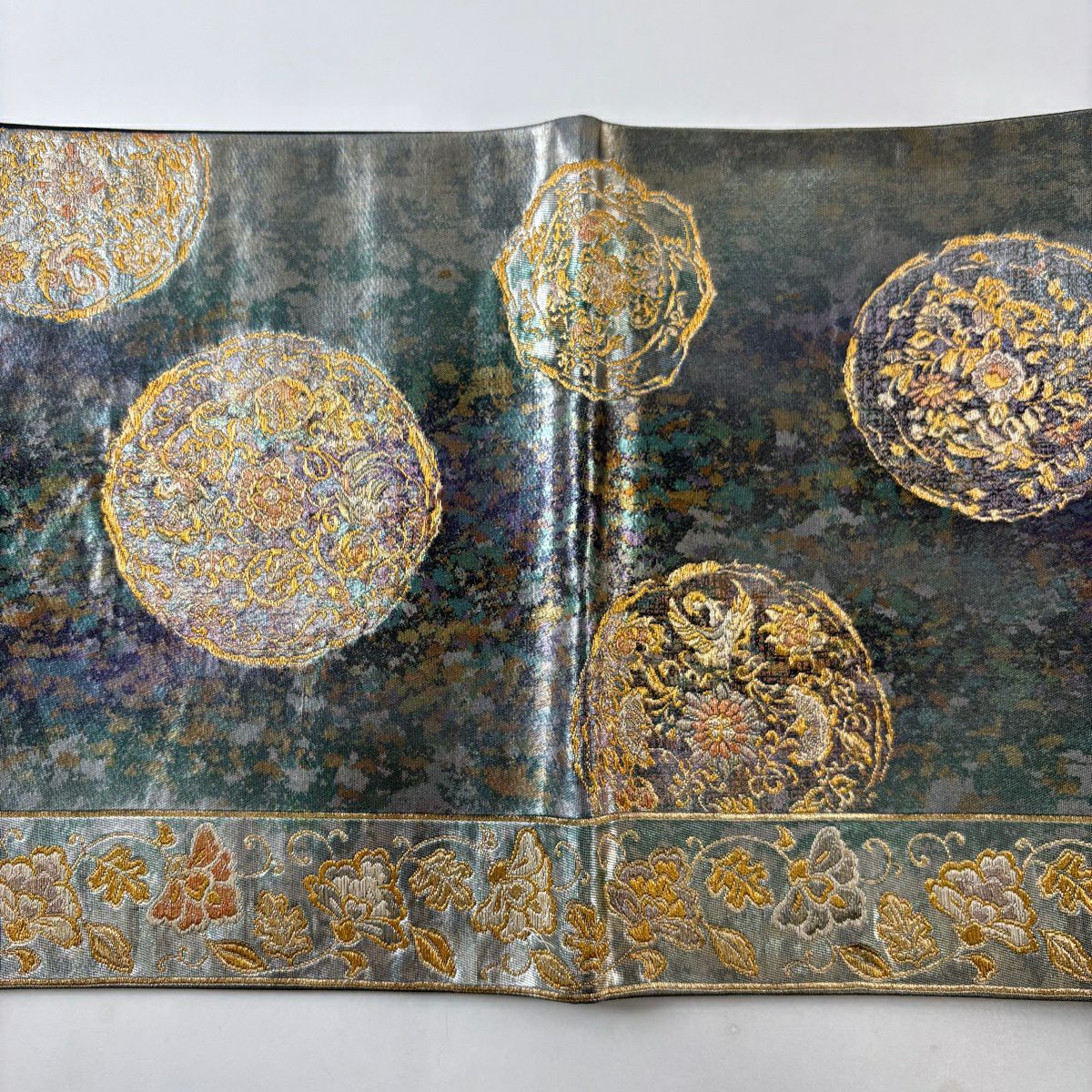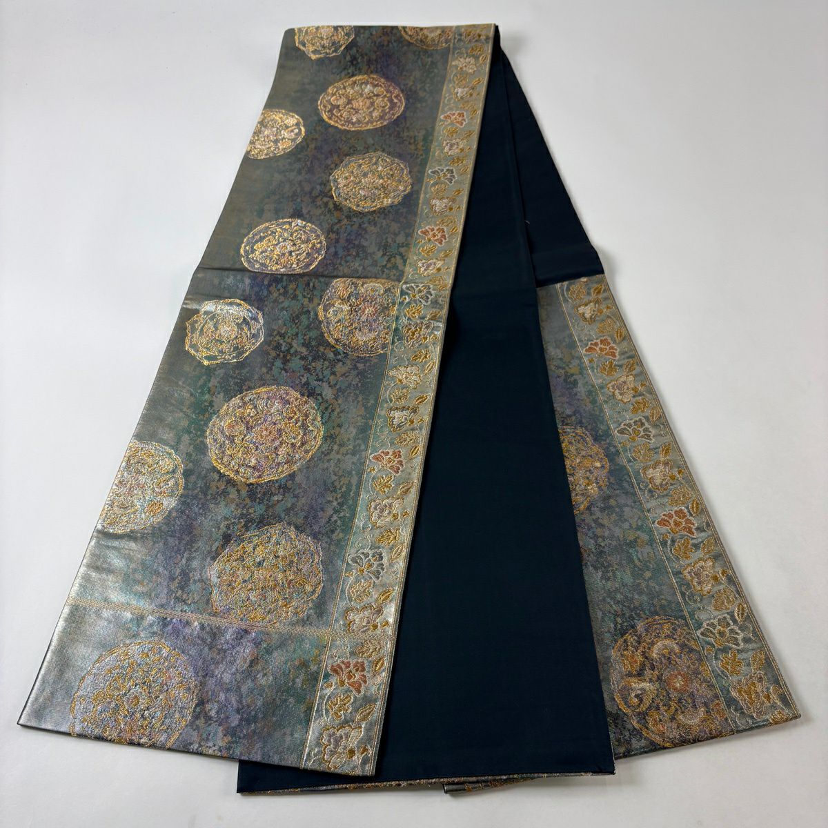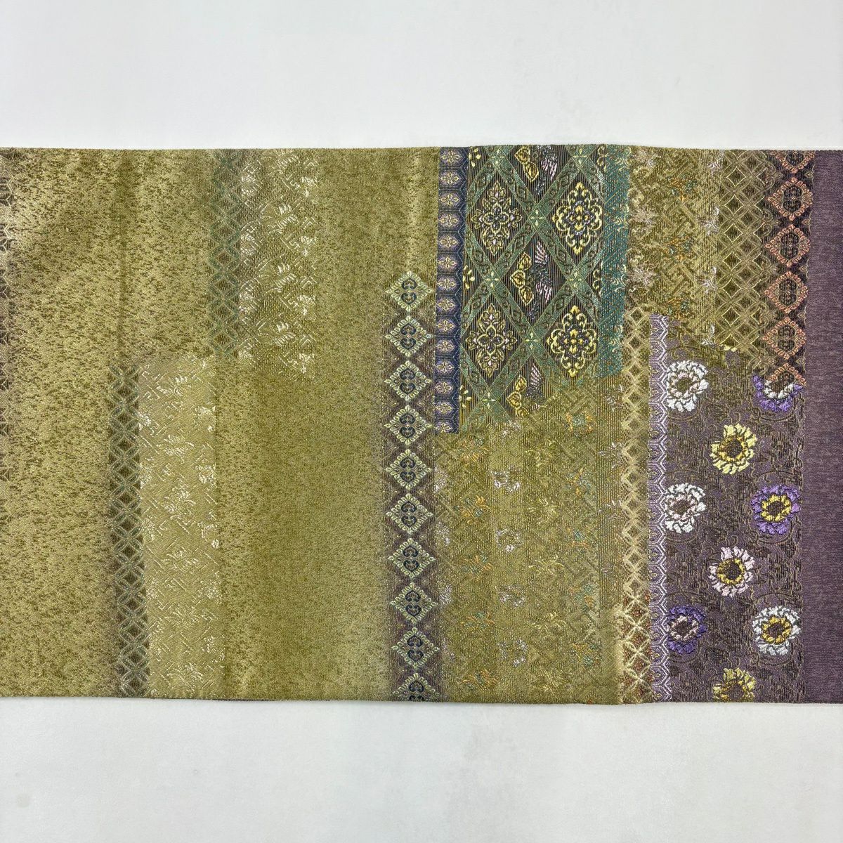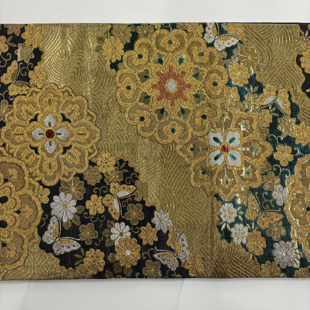 袋帯 秀品 振袖向き 華文 花唐草 金銀糸 箔 緑 六通 正絹