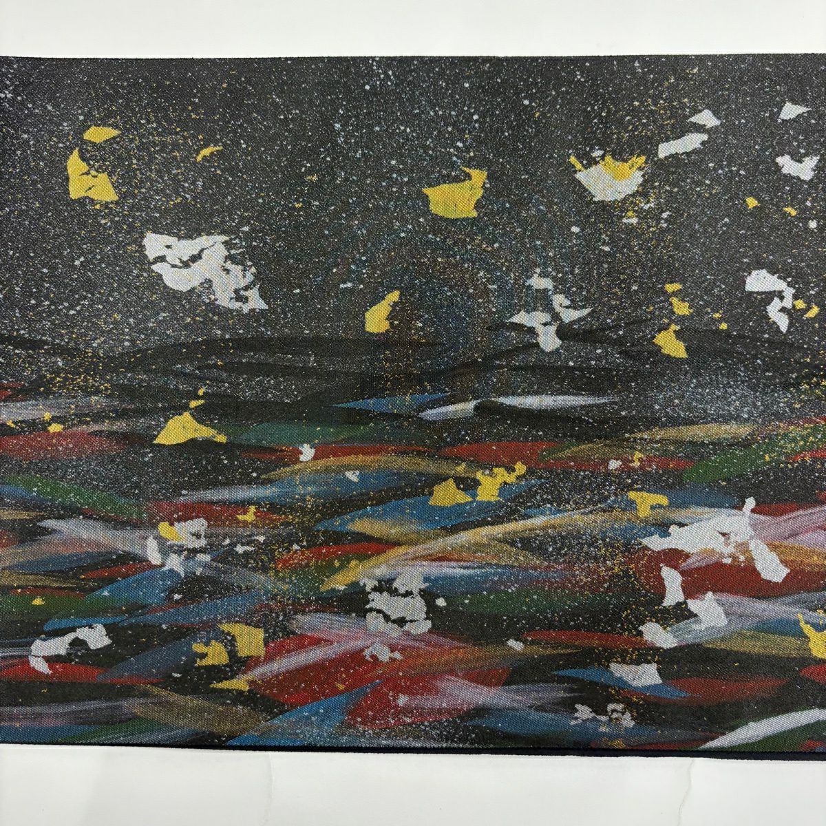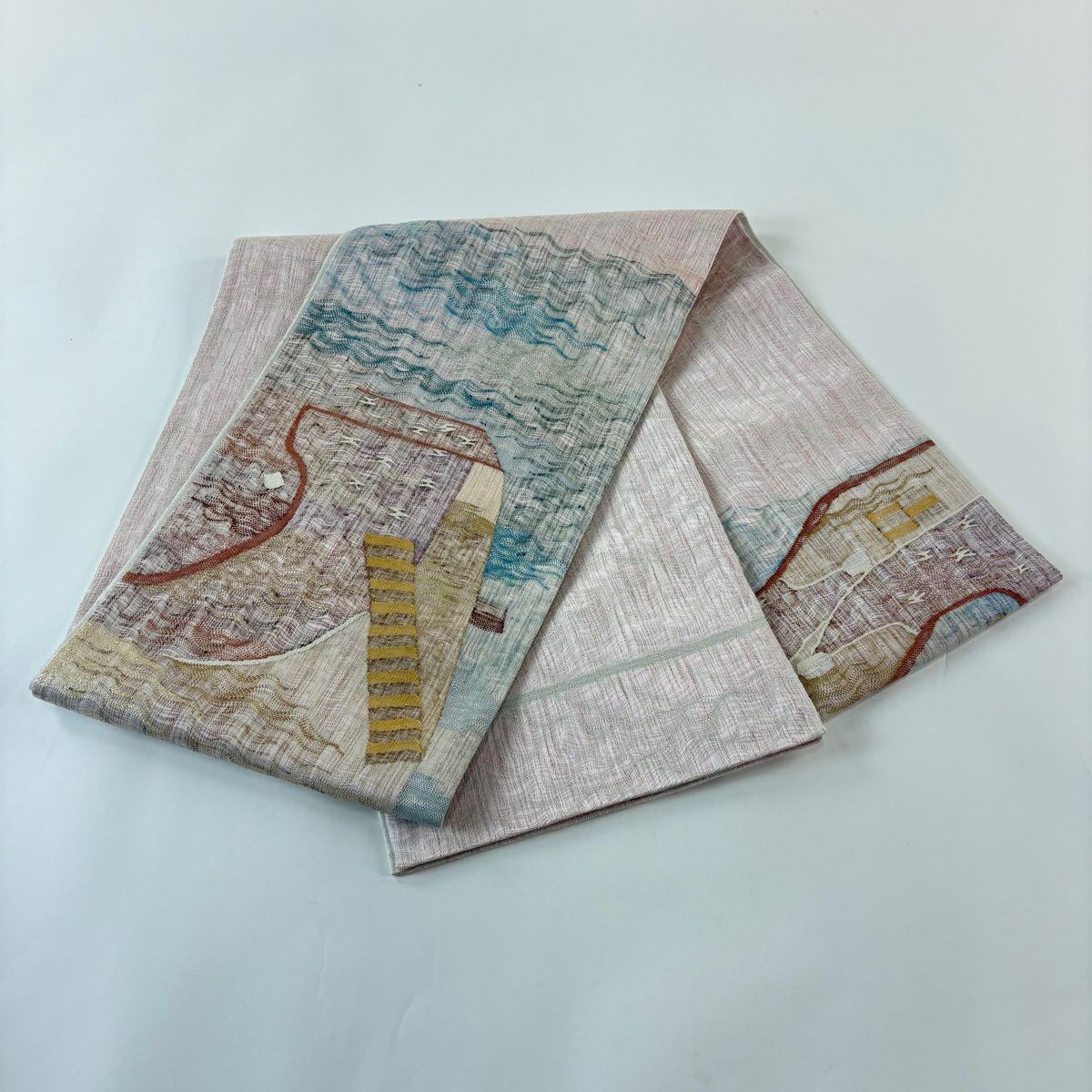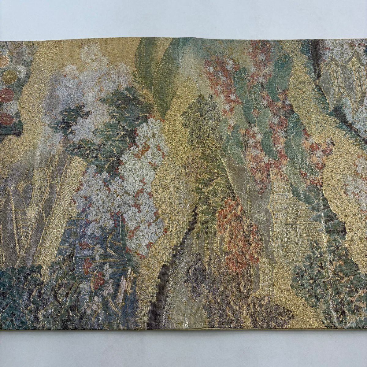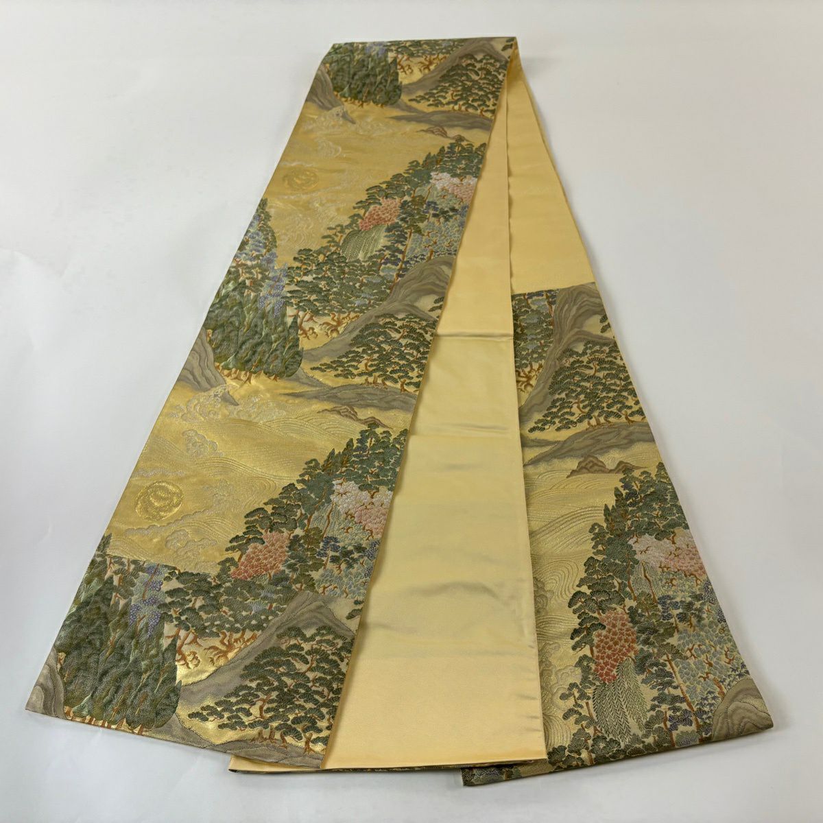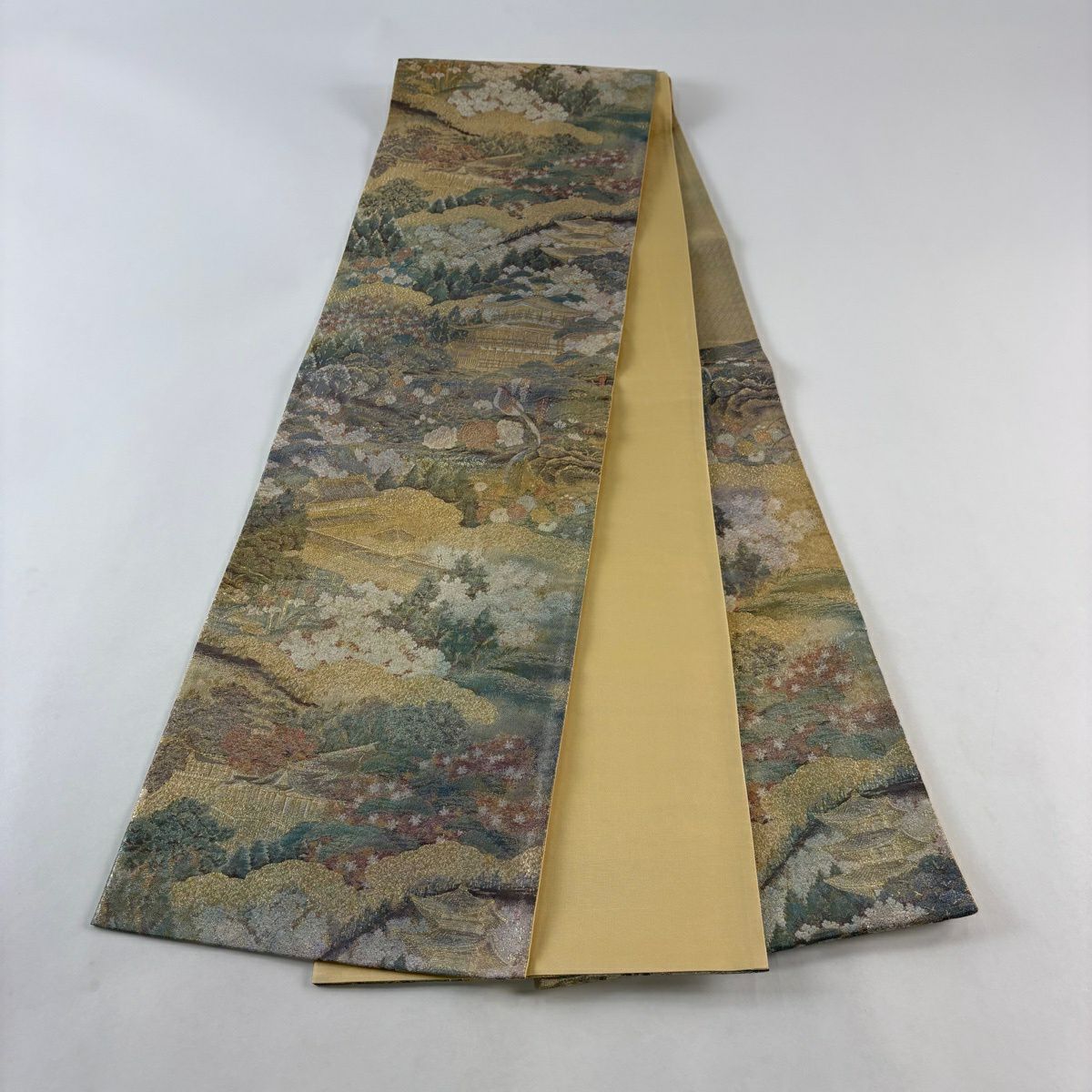 【美品】 袋帯 秀品 日月山水図 箔 ベージュ 六通 正絹