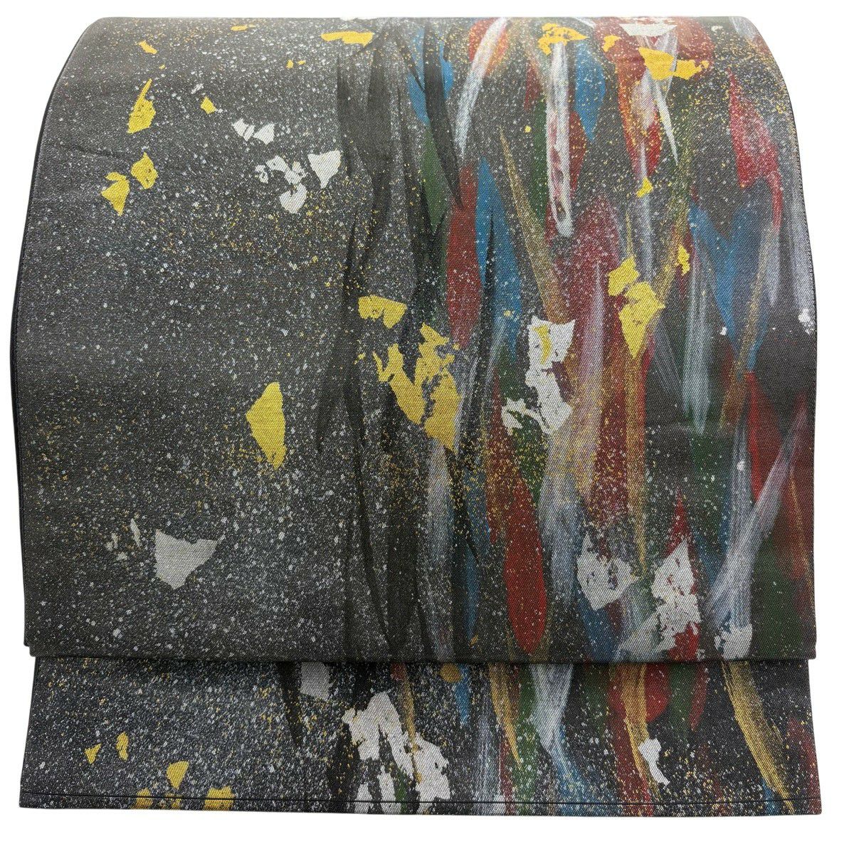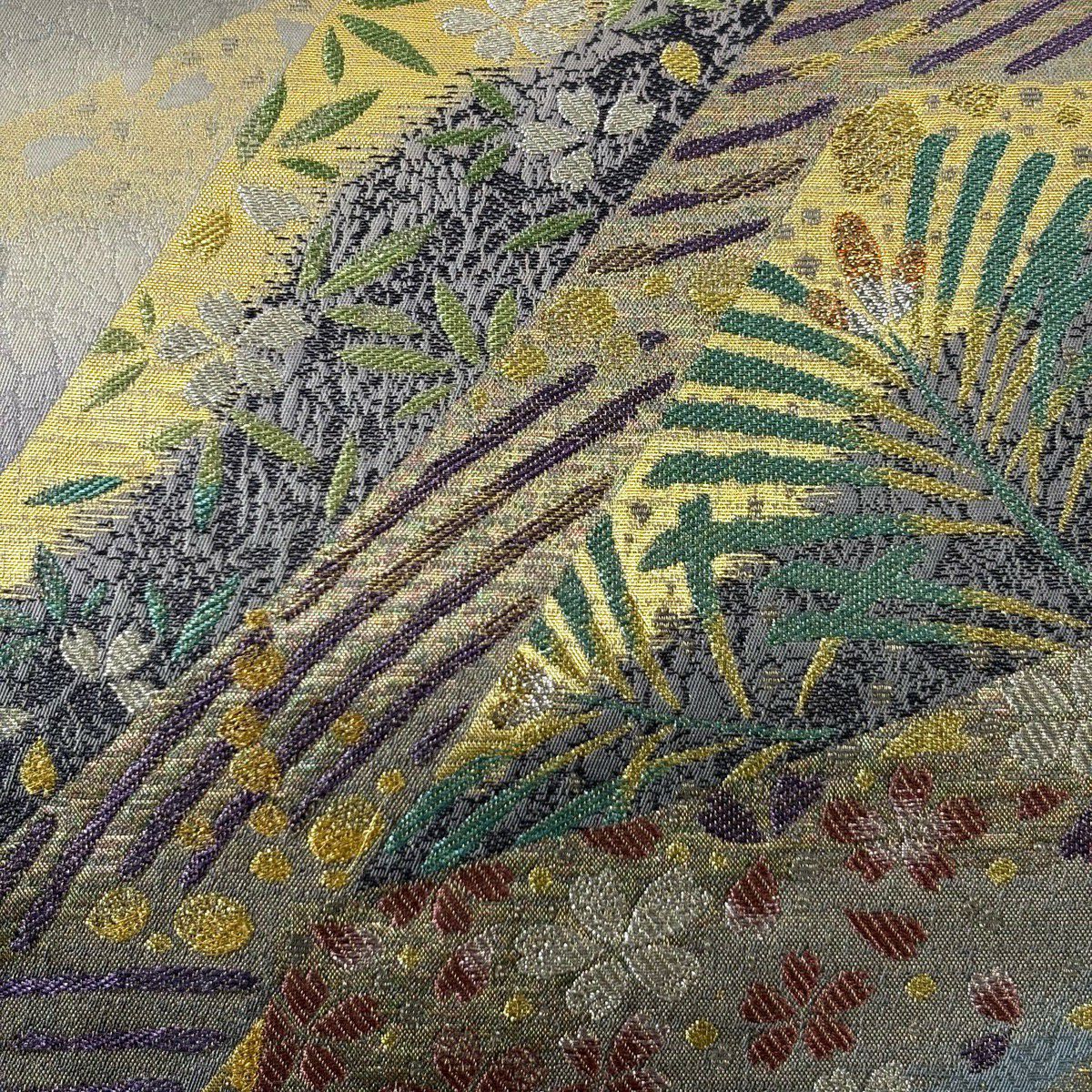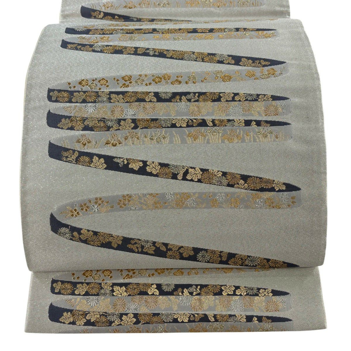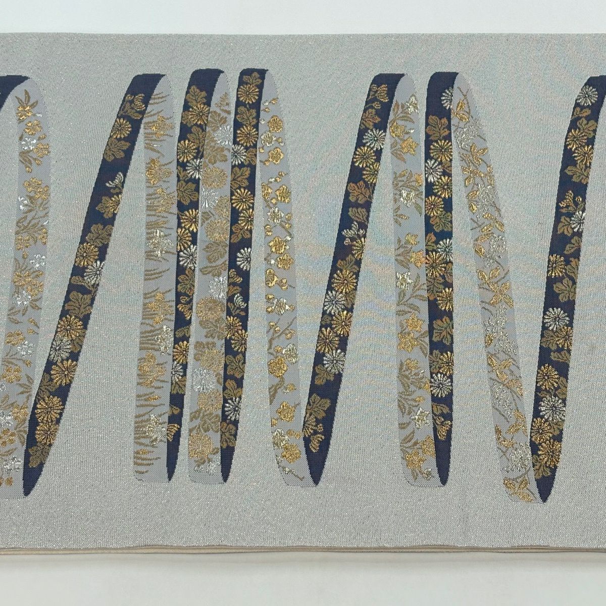 【美品】 袋帯 秀品 幾何学模様 金銀彩 箔 灰色 六通 正絹