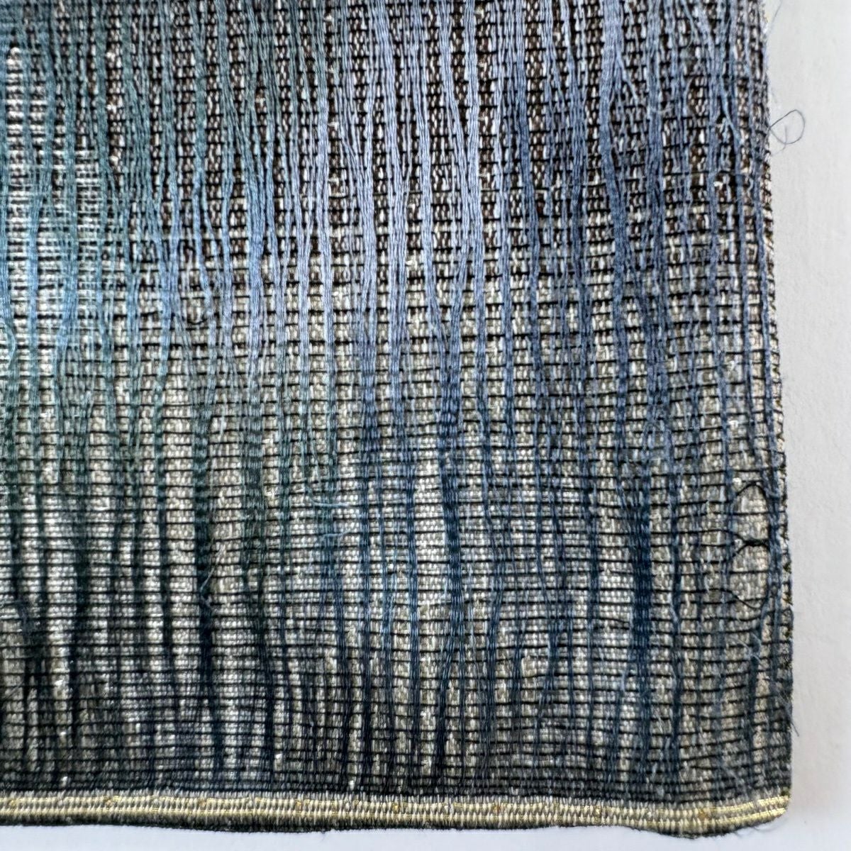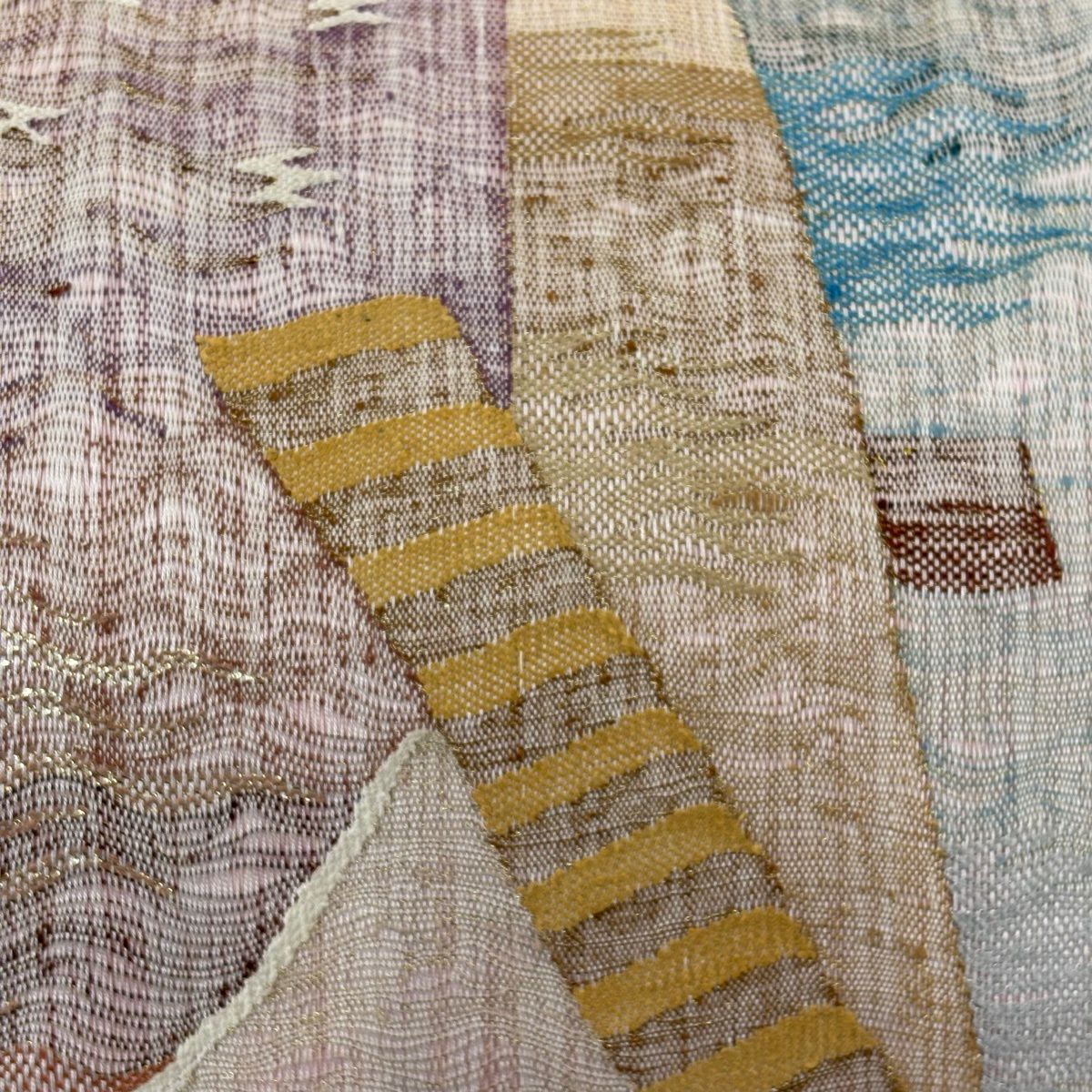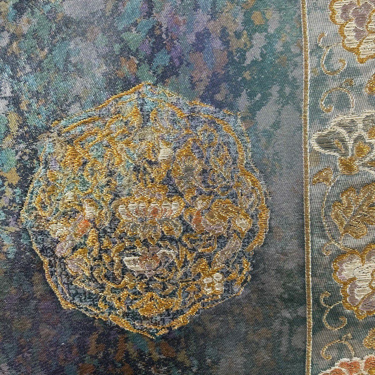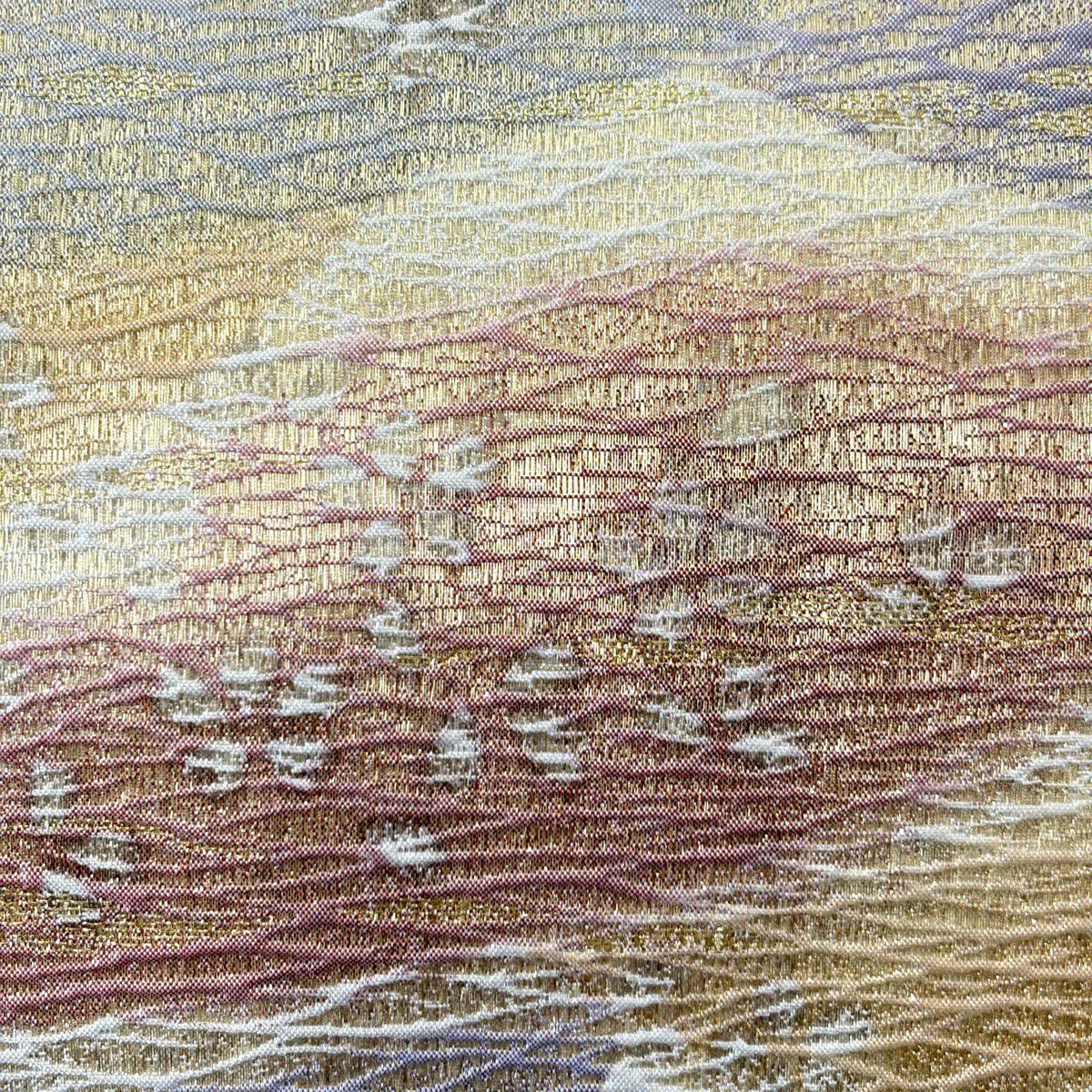 【美品】 開き名古屋帯 秀品 幾何学 金銀彩 銀糸 灰紫 正絹