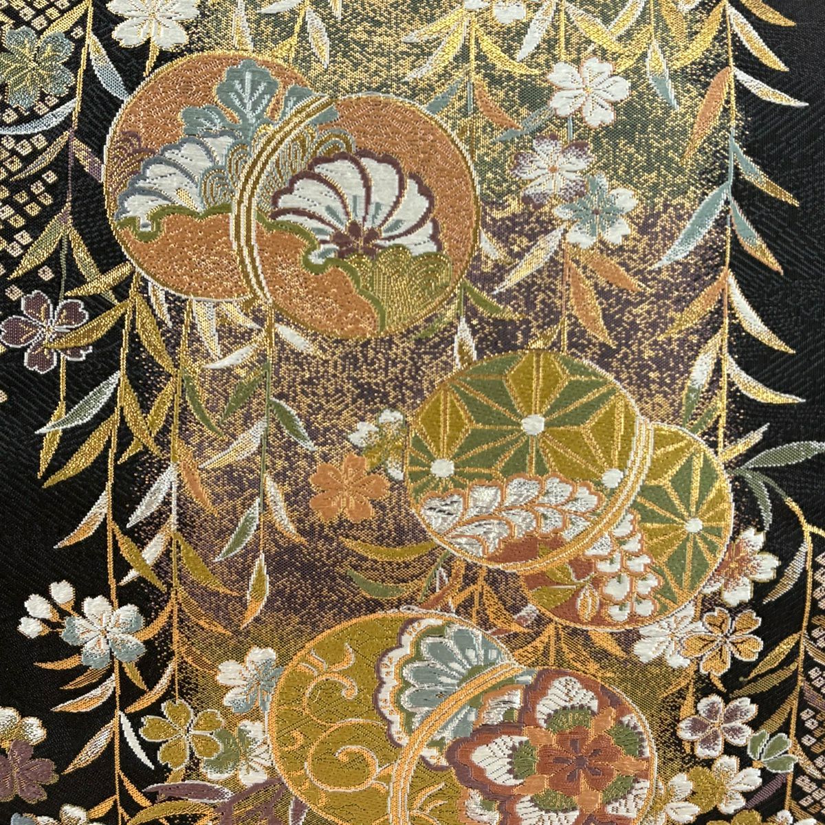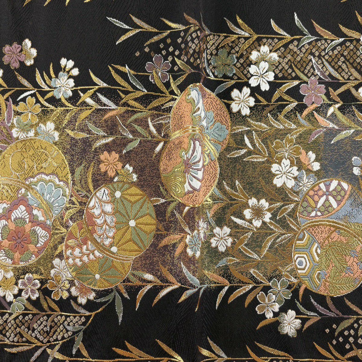【美品】 袋帯 秀品 鈴乃屋 蹴鞠 桜 箔 焦茶色 六通 正絹