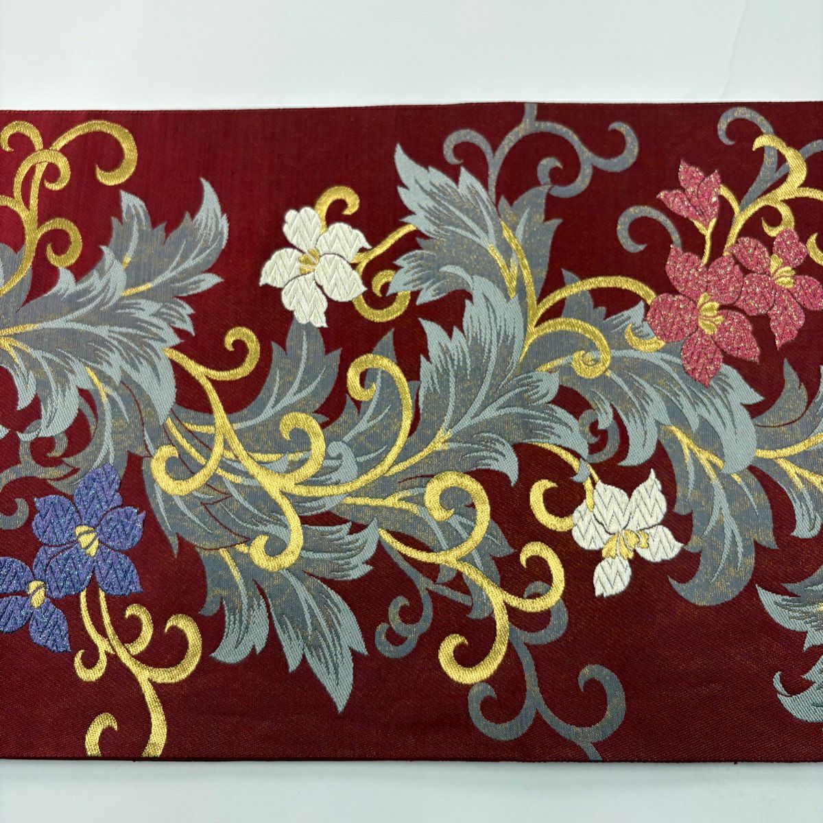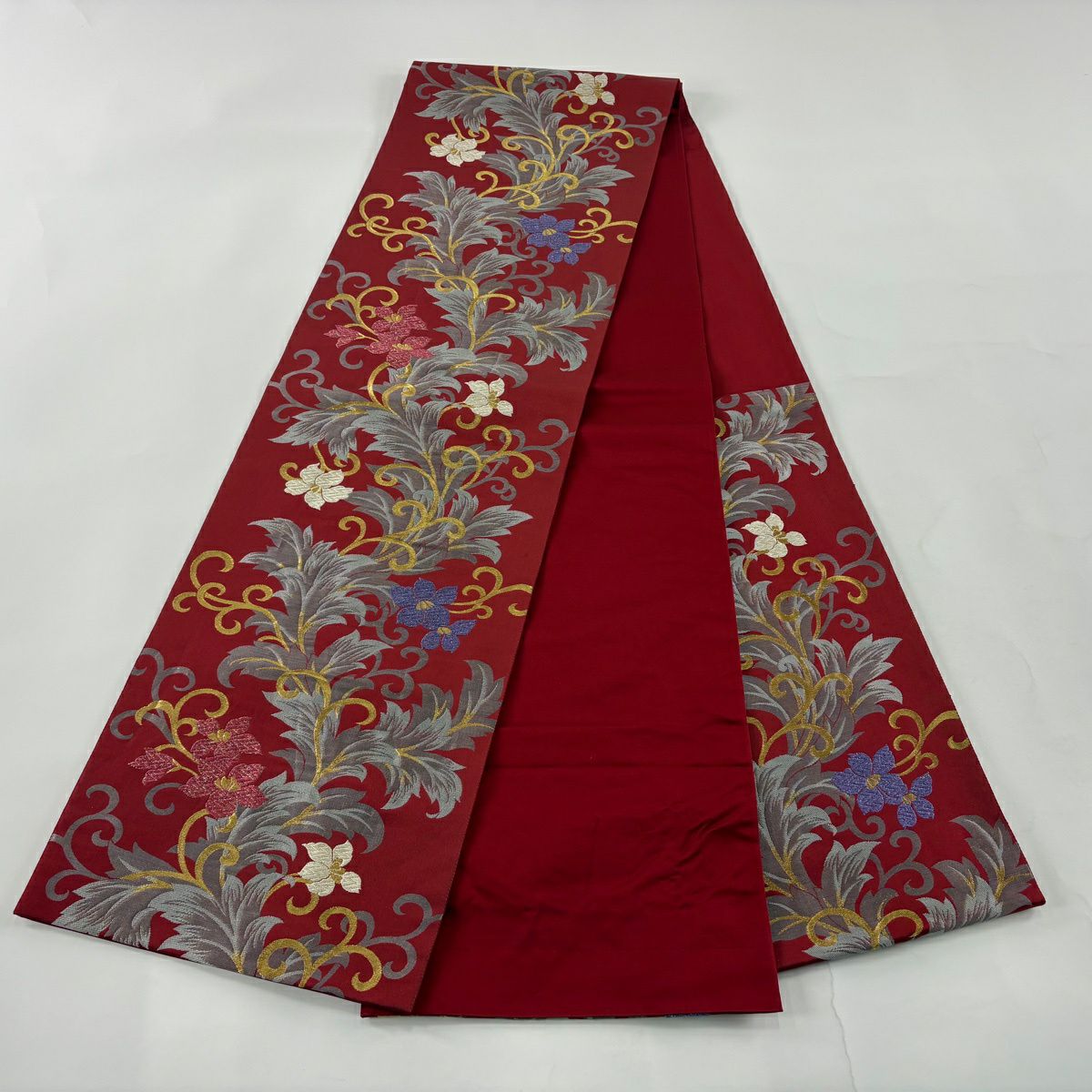 【美品】 袋帯 秀品 草花 蔓帯 箔 金銀糸 銀色 六通 正絹