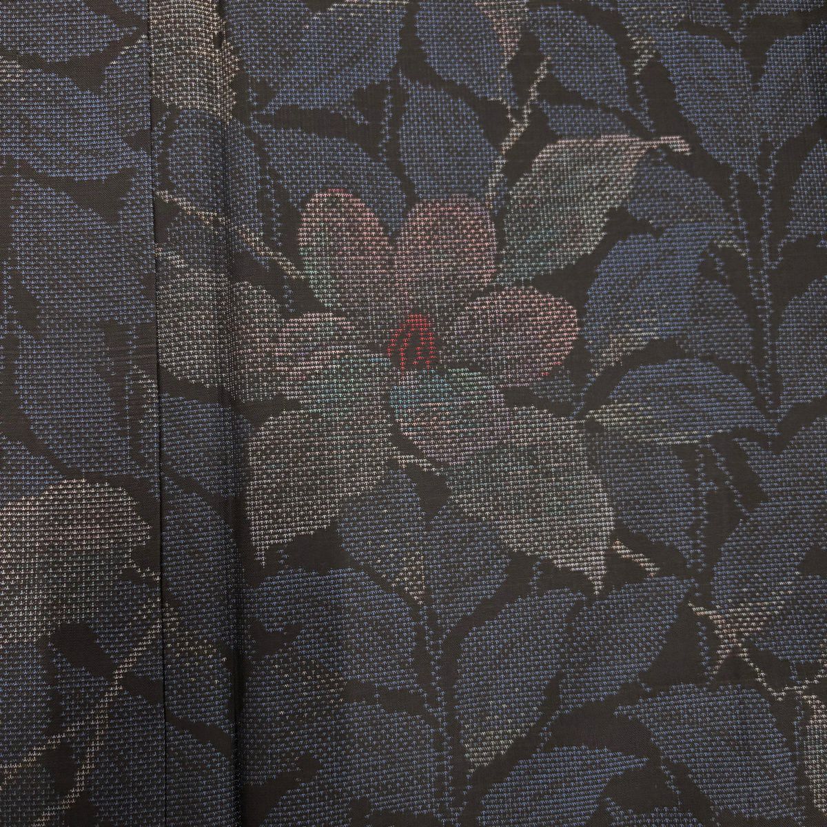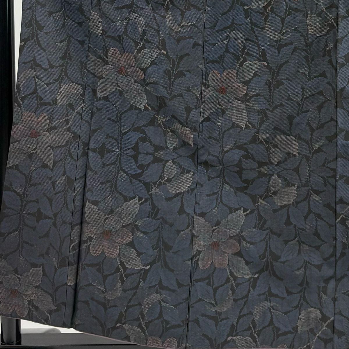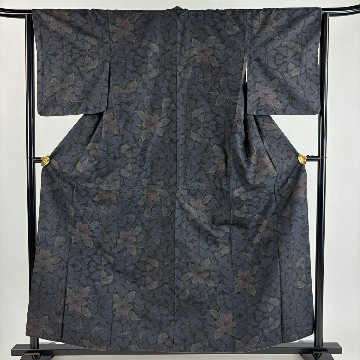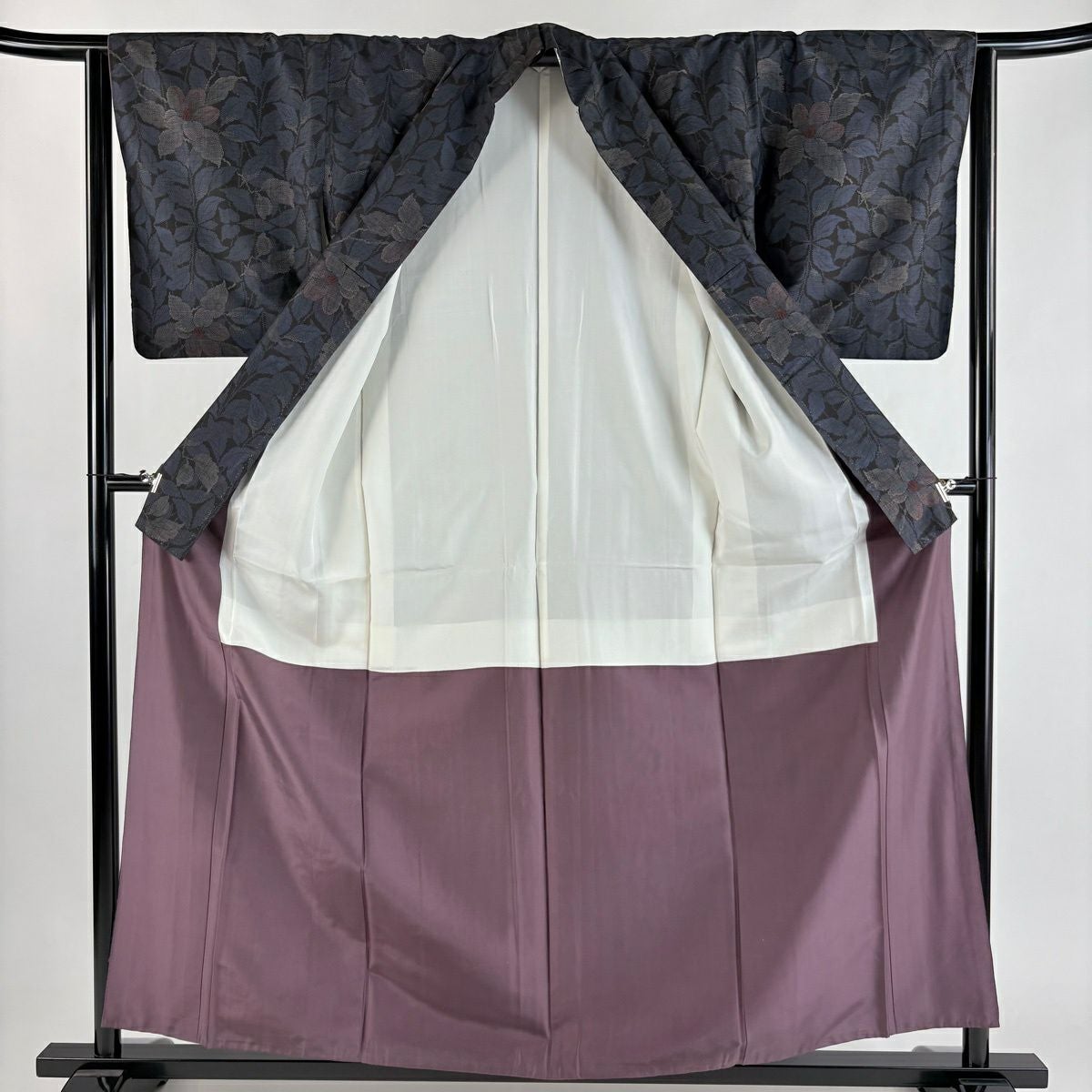 紬 身丈167.5cm 裄丈67.5cm L 袷 草花 灰紫 正絹 秀品