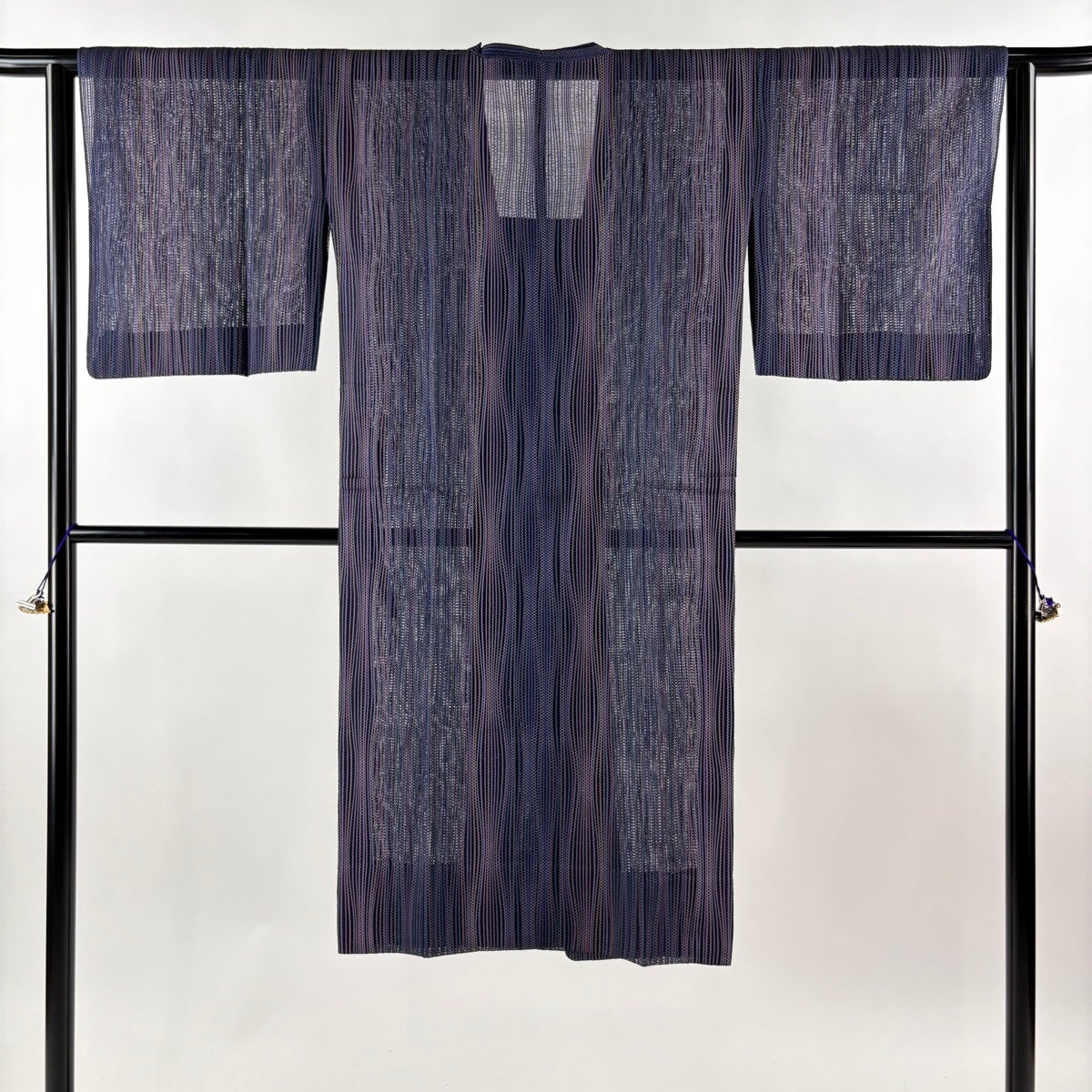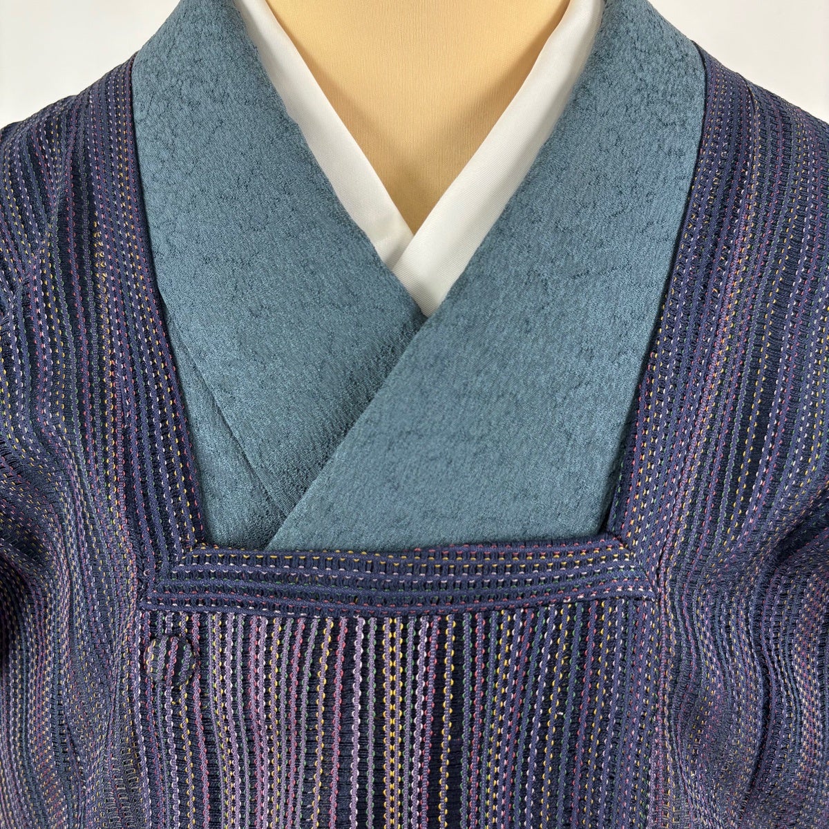 他の画像を見る 20%OFF 【美品】 道中着 身丈124.5cm 裄丈68cm L 和装コート 着物衿 落款あり 縦縞 灰紫 正絹 逸品 K30 当店通常価格 ¥ 41,800 ¥ 33,440 税込