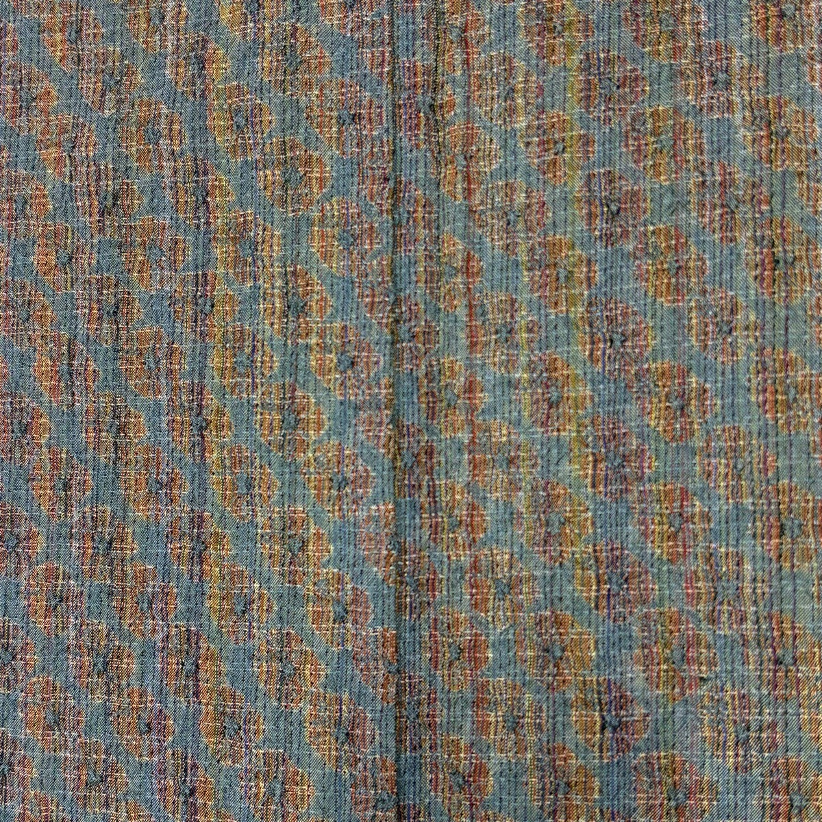 【美品】 小紋 身丈160cm 裄丈65.5cm M 袷 河上峰仙 落款あり 幾何学 青緑 正絹 秀品