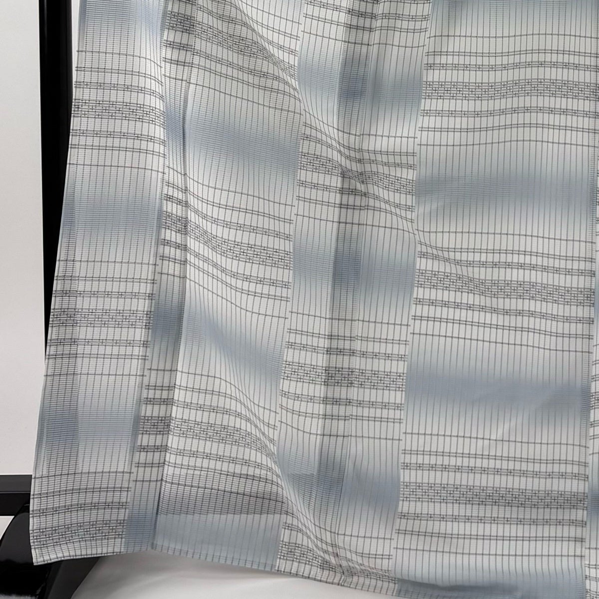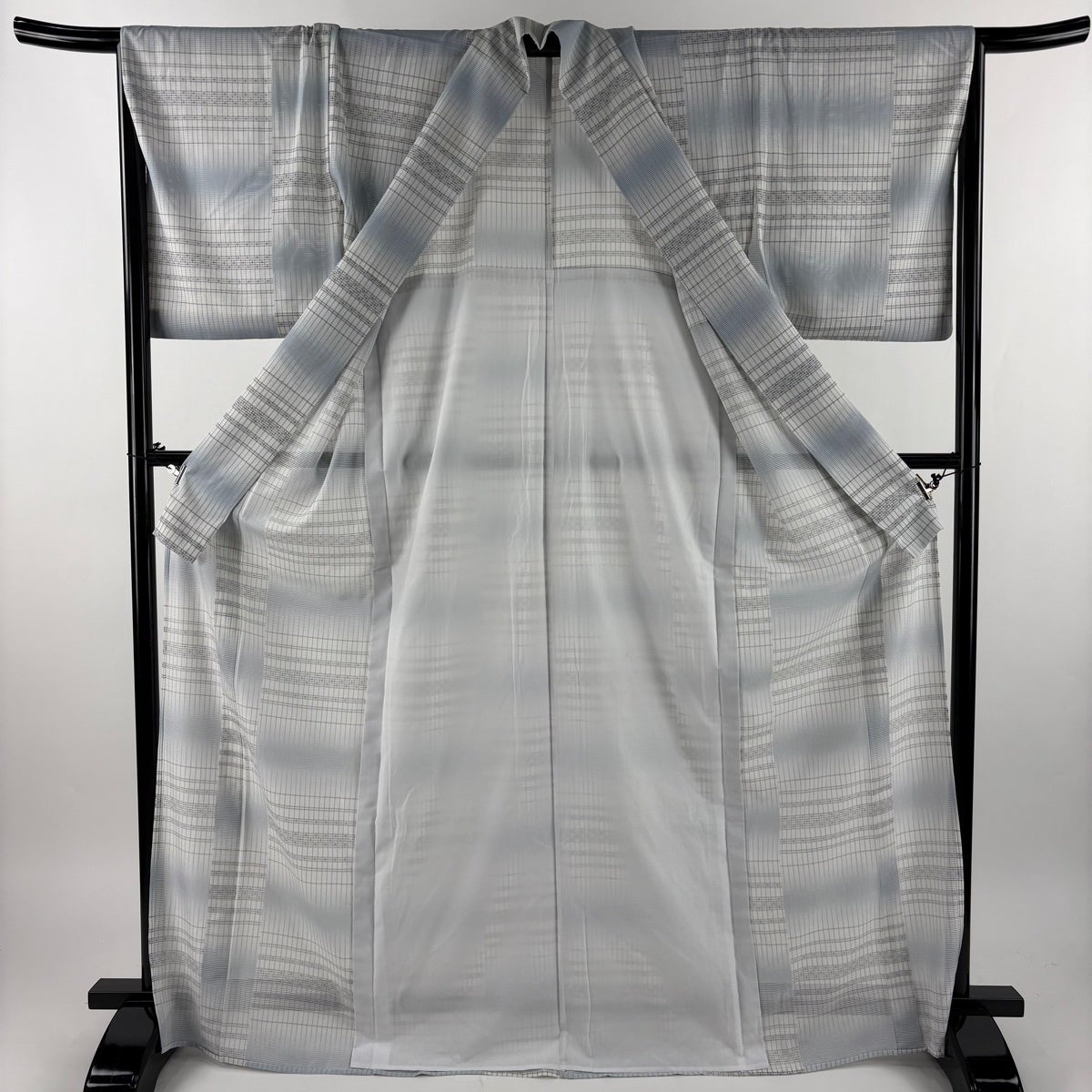 30%OFF 小紋 身丈172cm 裄丈67cm M 薄物 絽 変わり市松 縞 ぼかし 青灰色 正絹 秀品 K30