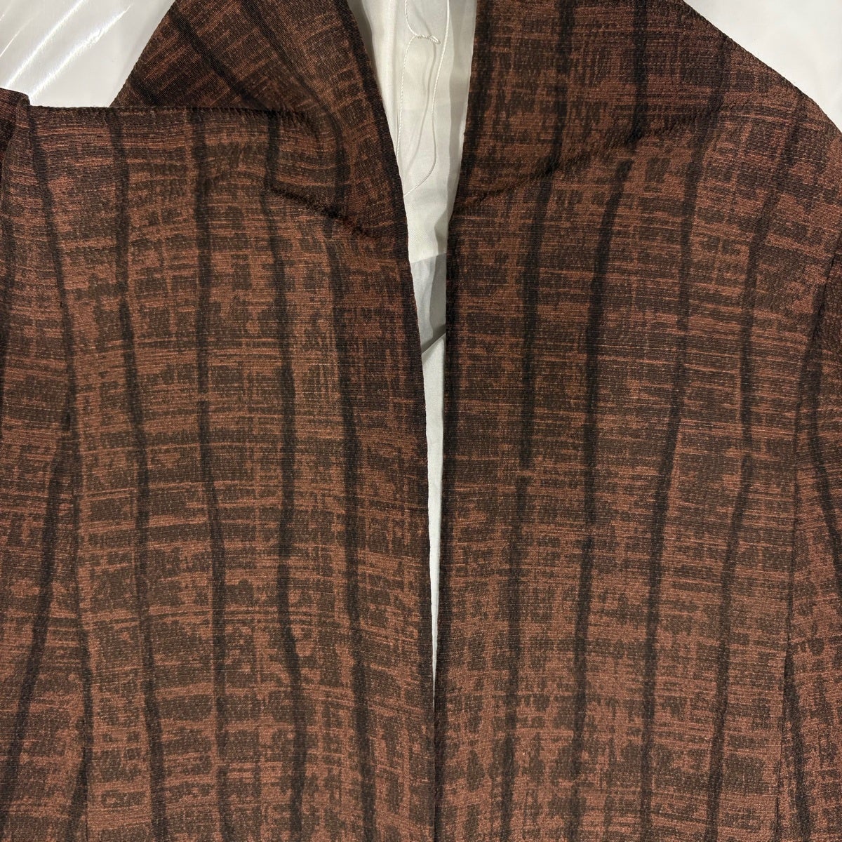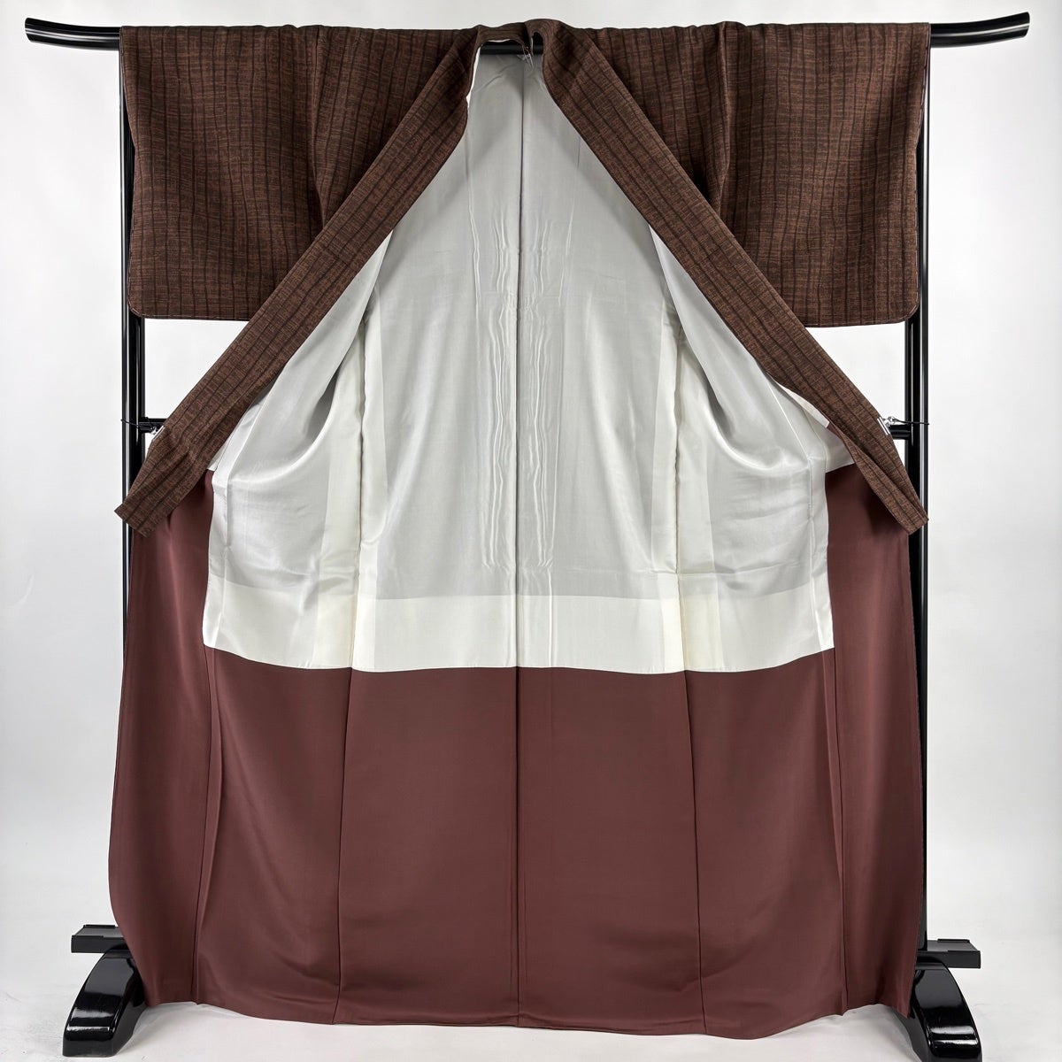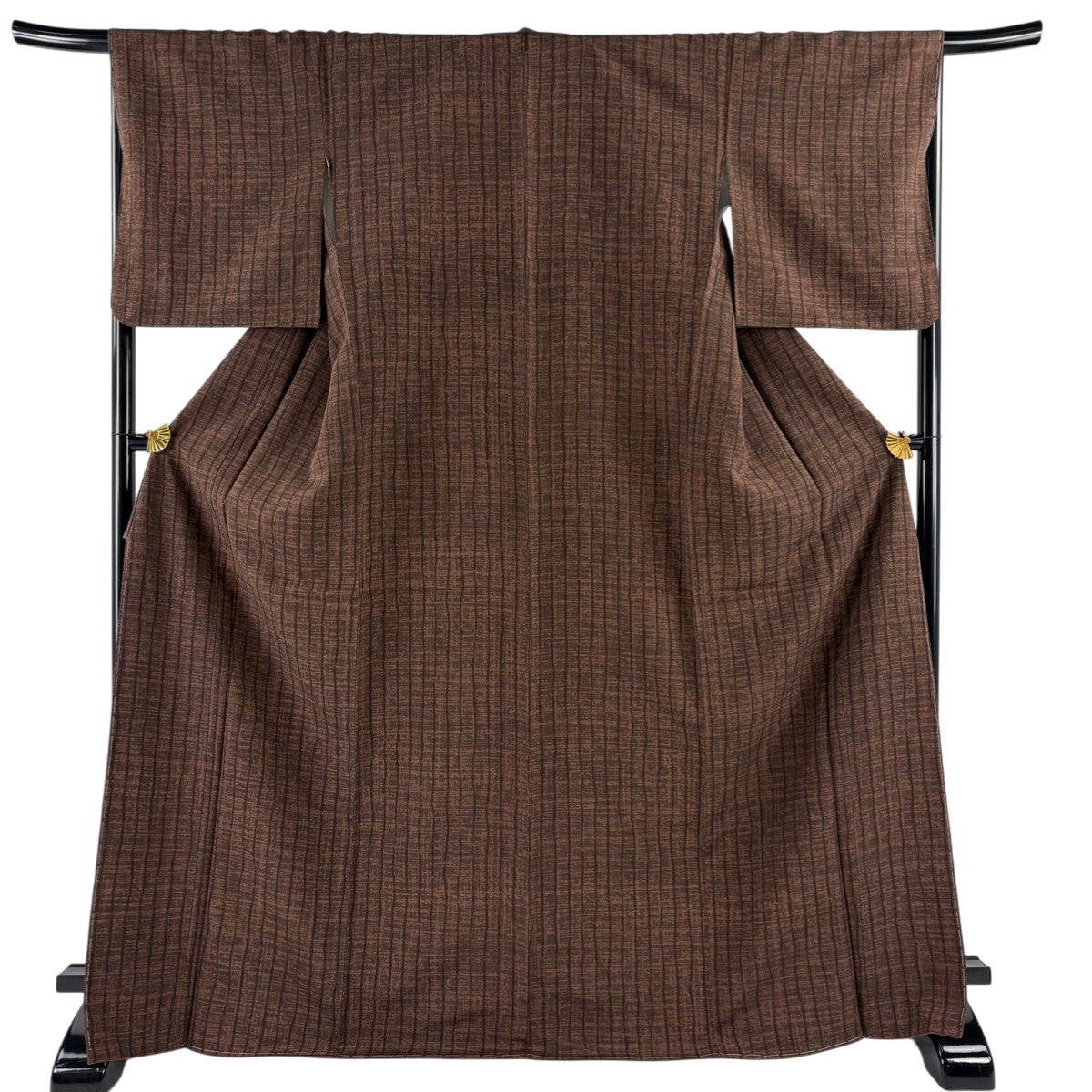 30%OFF 【美品】 小紋 身丈171cm 裄丈67cm M 袷 よろけ縞 幾何学模様 焦茶色 正絹 秀品 K30