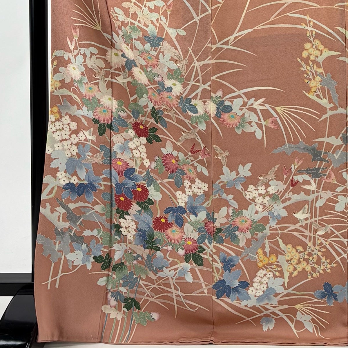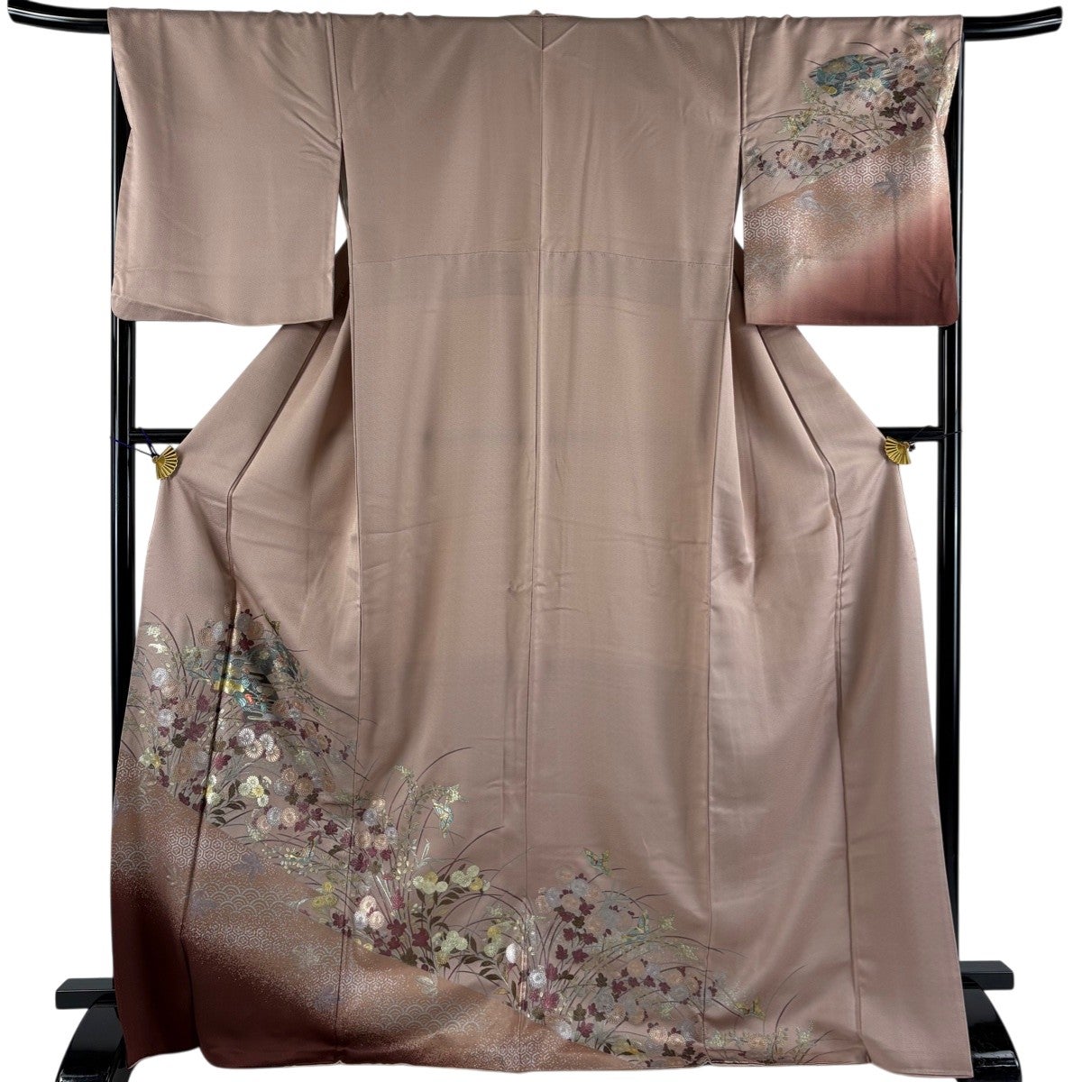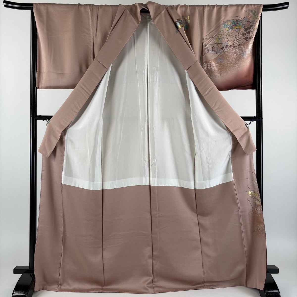 30%OFF 訪問着 身丈173cm 裄丈66.5cm M 袷 草花 蝶 金彩 ぼかし ベージュ 正絹 秀品 K30