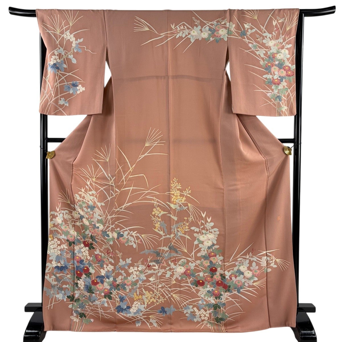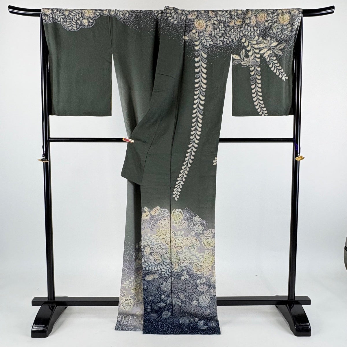 30%OFF 訪問着 身丈172.5cm 裄丈68.5cm 未仕立て 仮絵羽 秋草 金彩 金糸 灰緑 正絹 秀品 K30