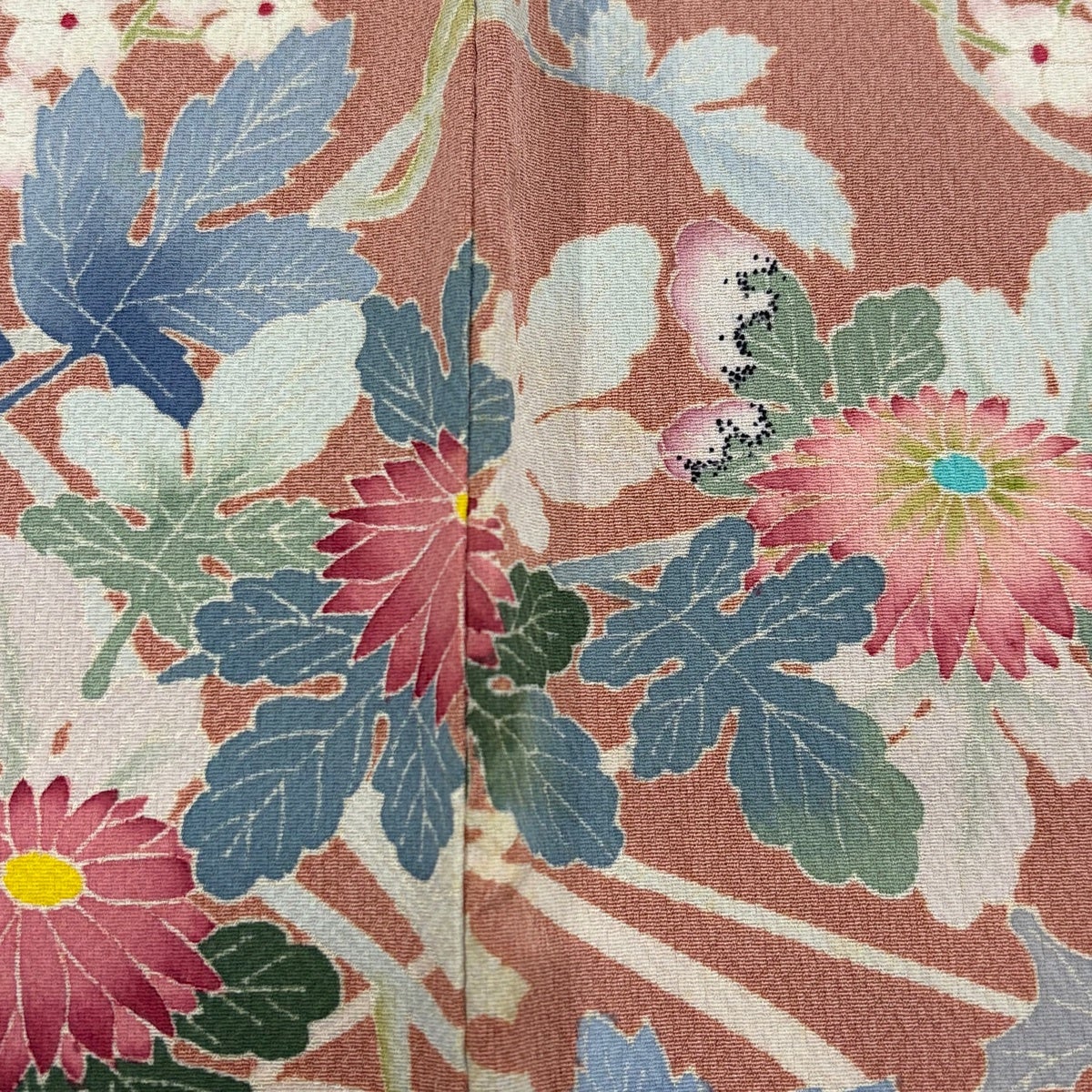 50%OFF 訪問着 身丈171cm 裄丈67cm M 袷 笠松 扇 染め分け ぼかし 山吹茶色 正絹 秀品 K50