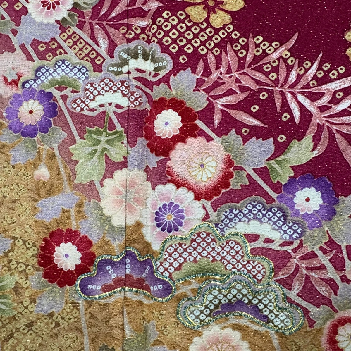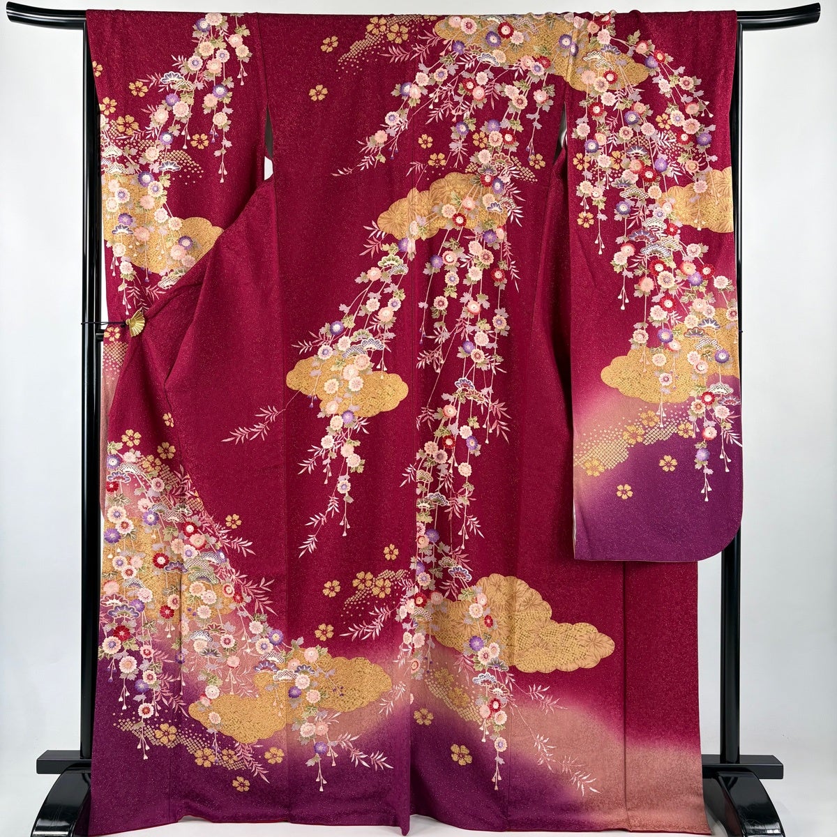 他の画像を見る 30%OFF 【美品】 振袖 身丈178.5cm 裄丈71.5cm 未仕立て 仮絵羽 牡丹 熨斗 金彩 ぼかし 紫 正絹 秀品 K30 当店通常価格 ¥ 11,800 ¥ 8,260 税込