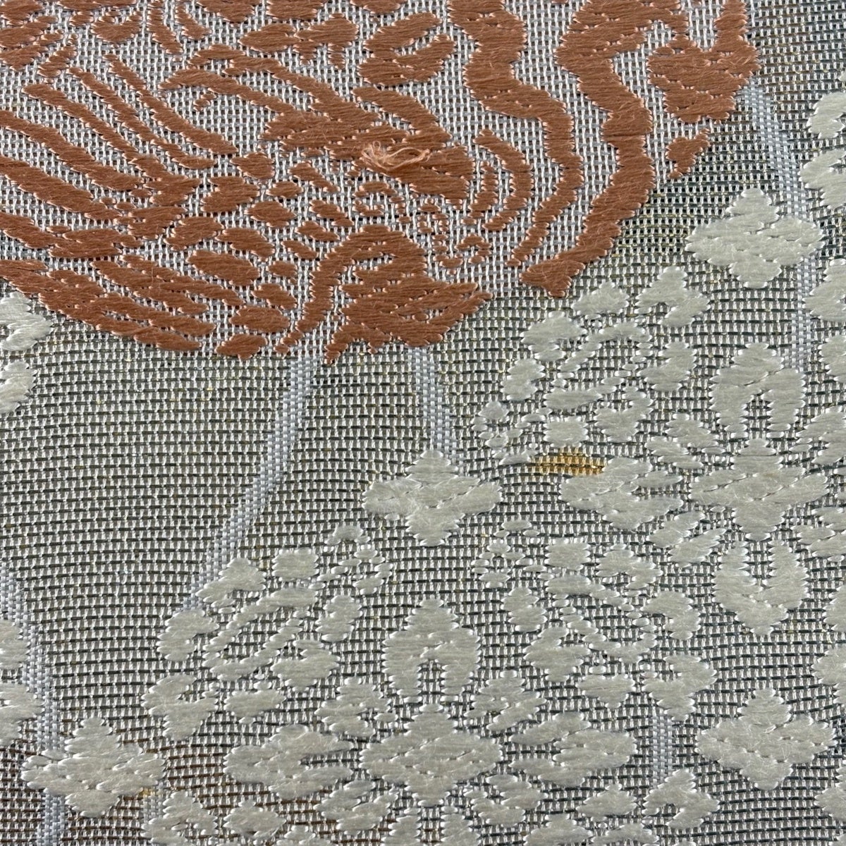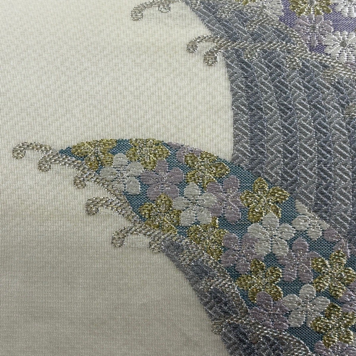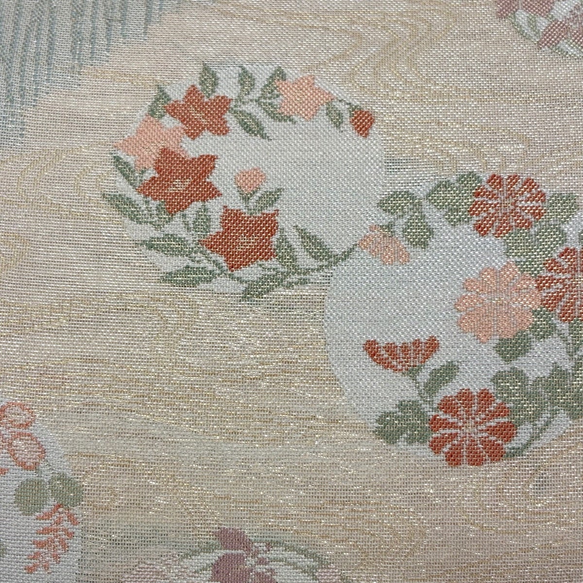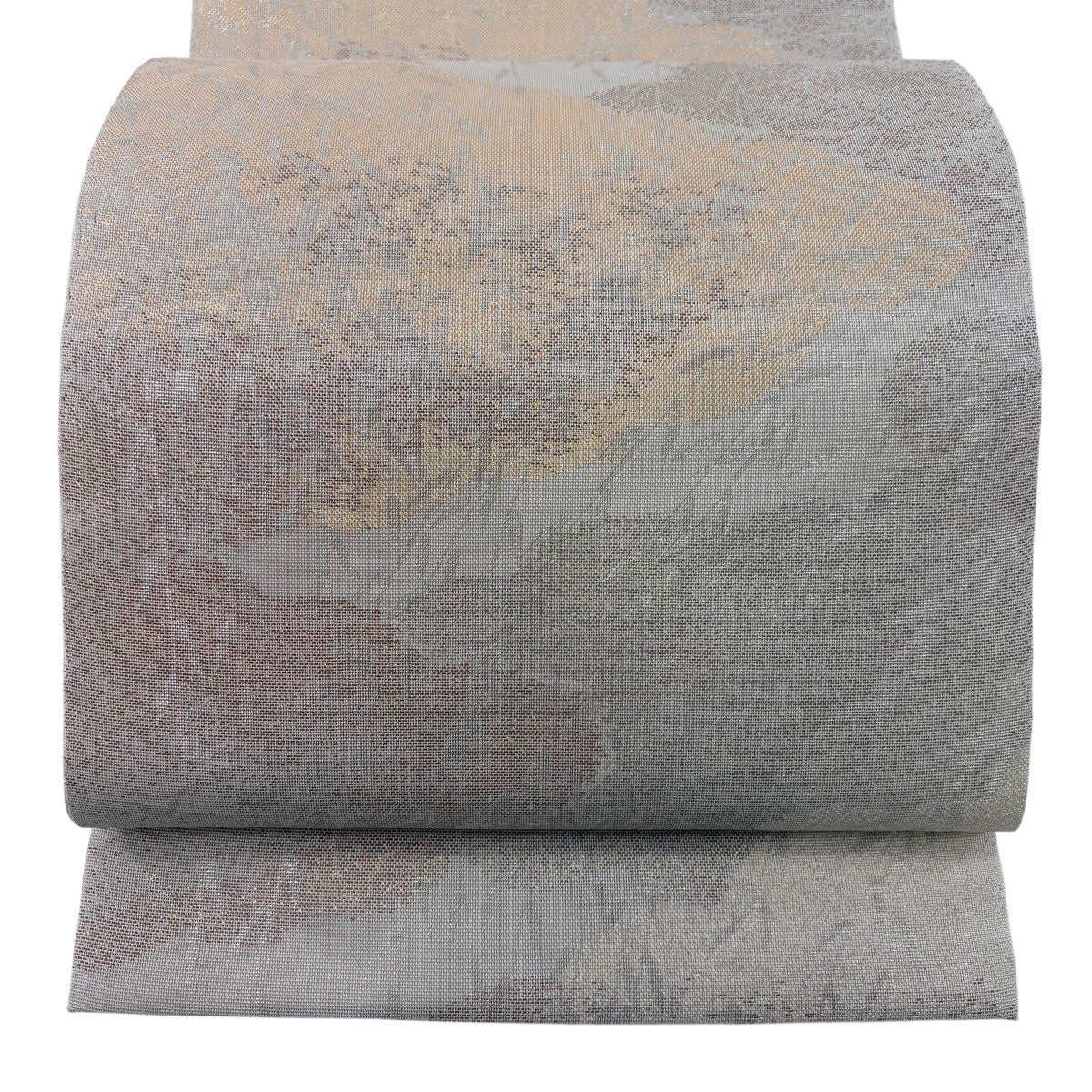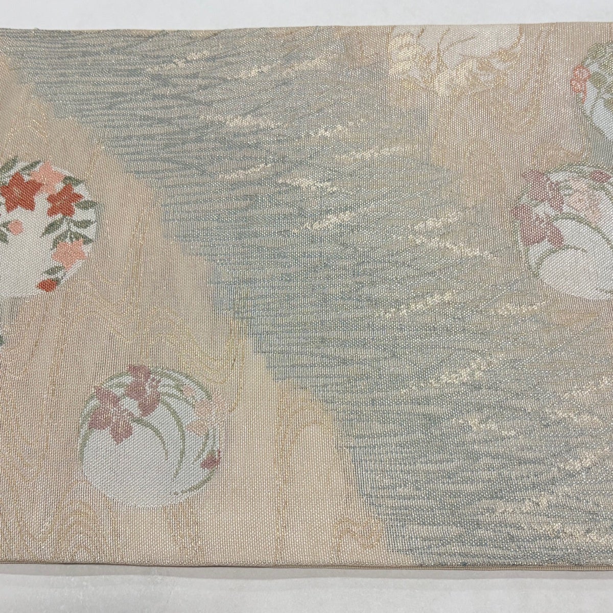 袋帯 名品 夏帯 紗 草花 銀糸 箔 ベージュ お太鼓柄 正絹