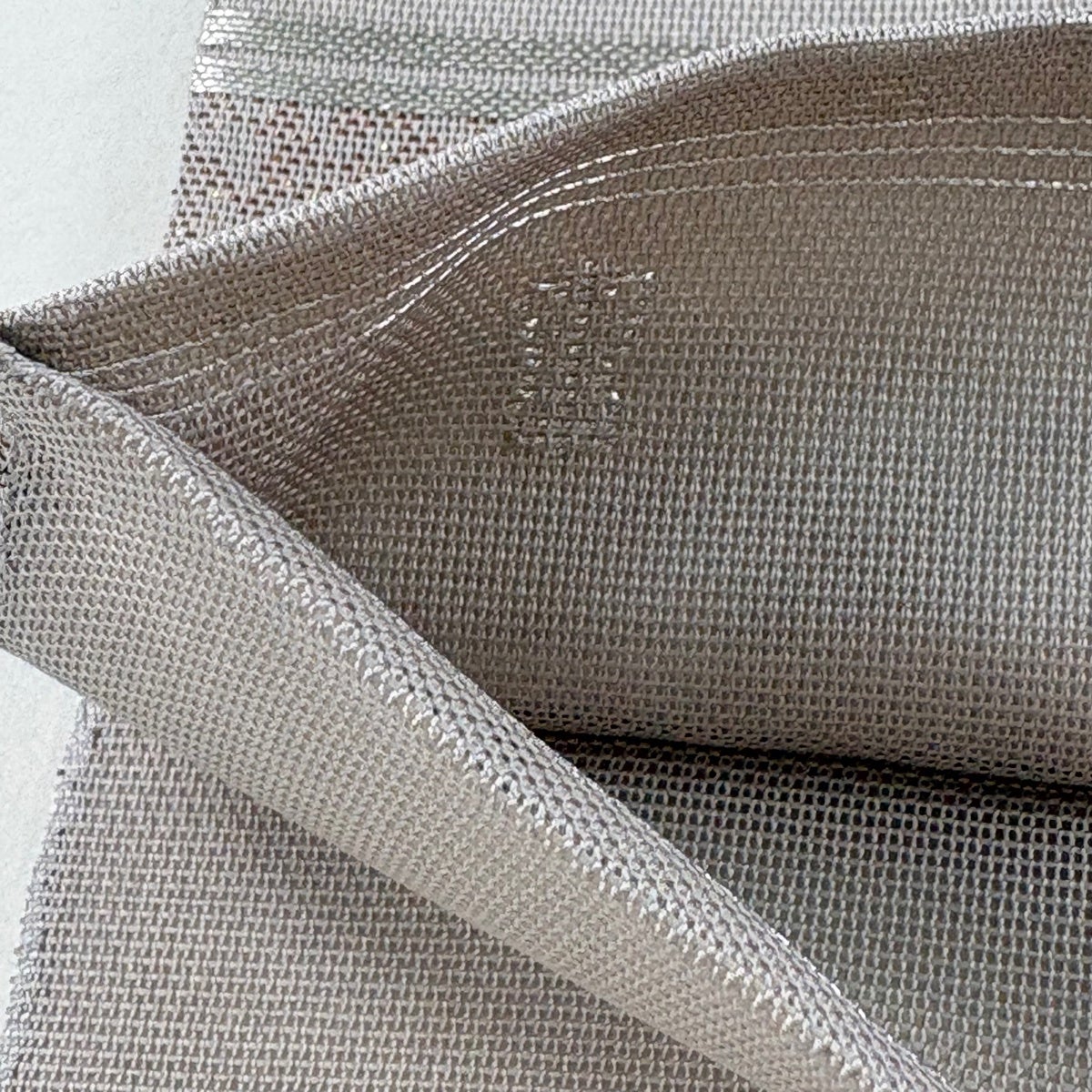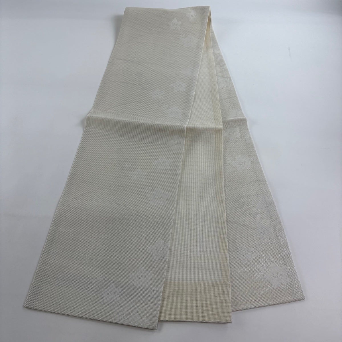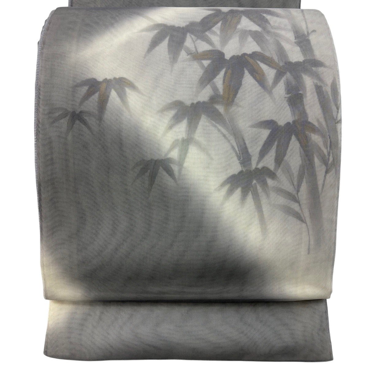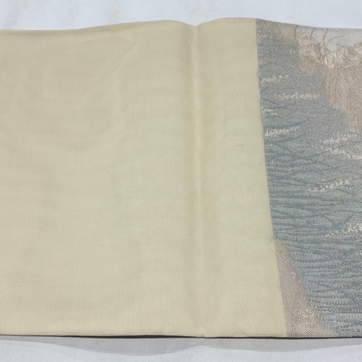 袋帯 秀品 夏帯 紗 関西仕立て 葉柄 銀糸 箔 クリーム 六通 正絹