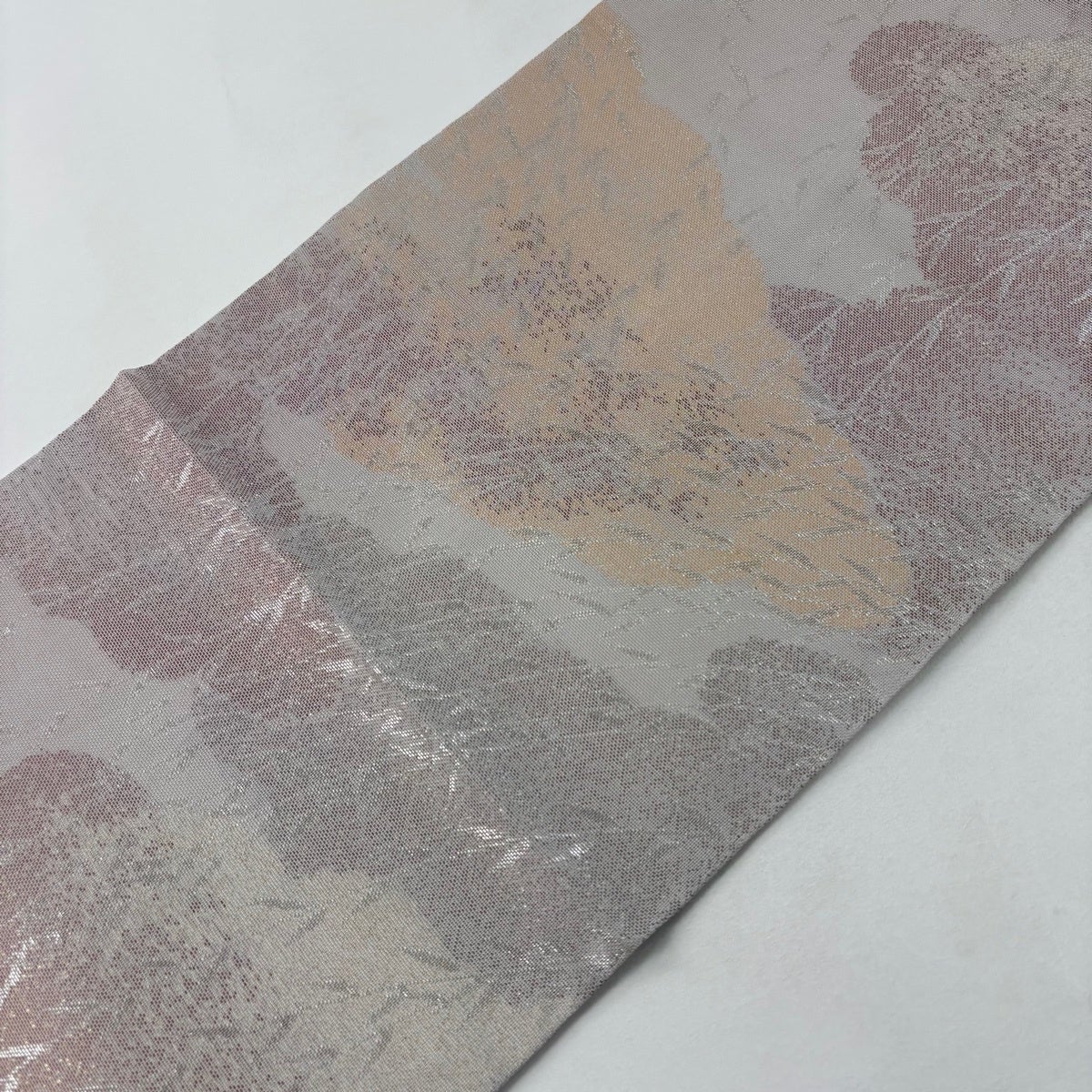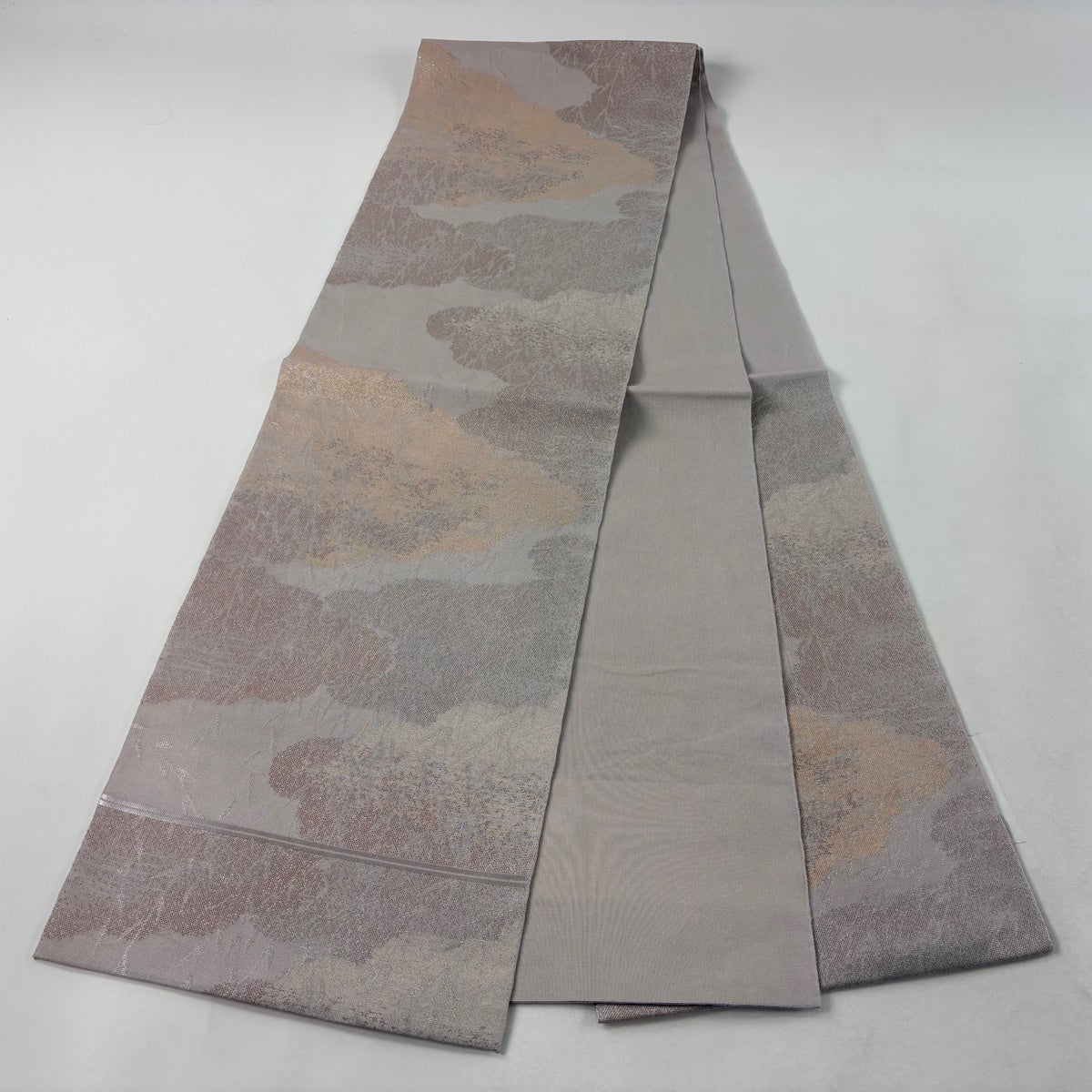 袋帯 秀品 川島織物 落款あり 夏帯 紗 雲文 葉 箔 灰紫 六通 正絹