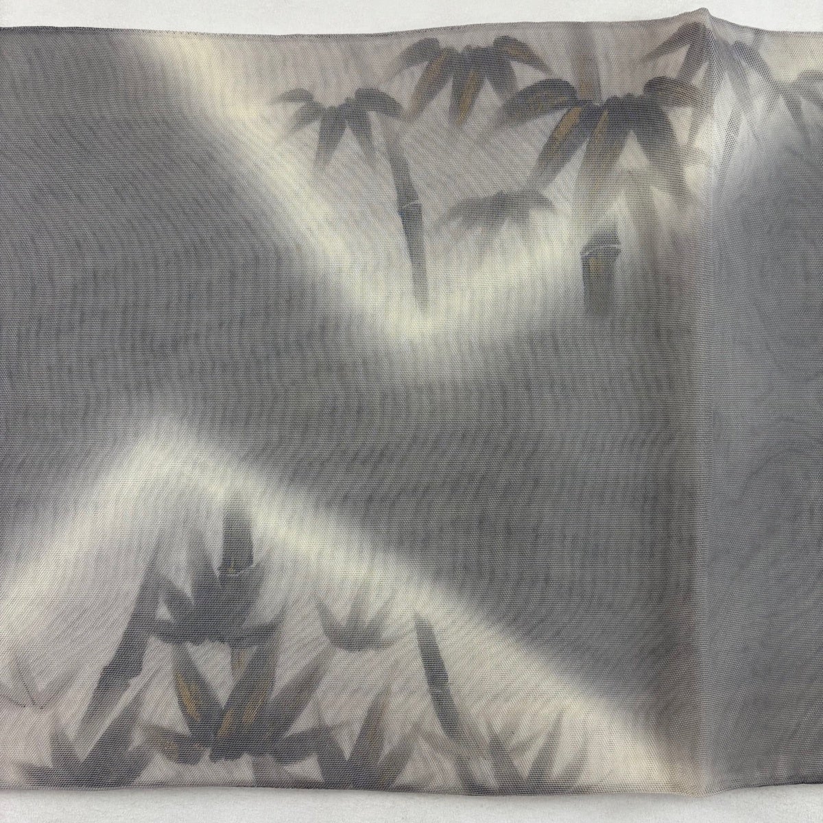 【美品】 名古屋帯 秀品 夏帯 紗 風景 波 ラメ糸 箔 黒灰 正絹
