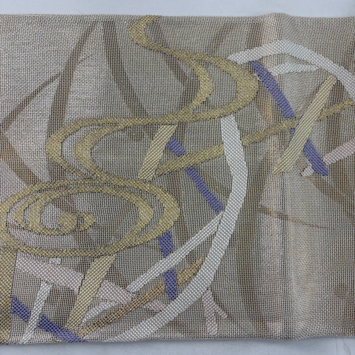 【美品】 名古屋帯 秀品 夏帯 紗 幾何学 樹木 金糸 薄紫 正絹