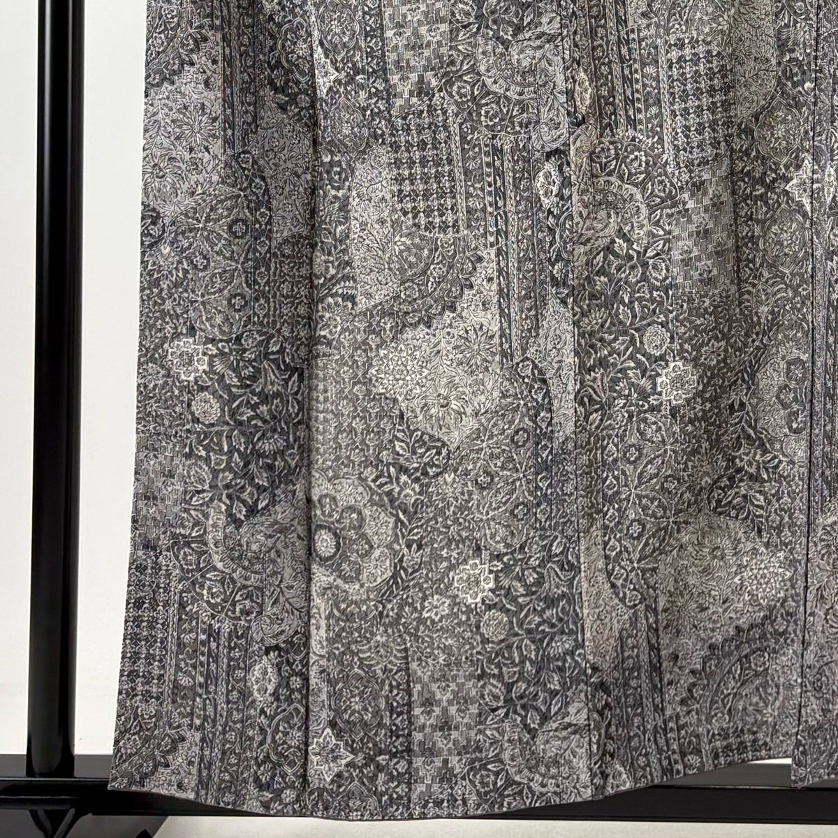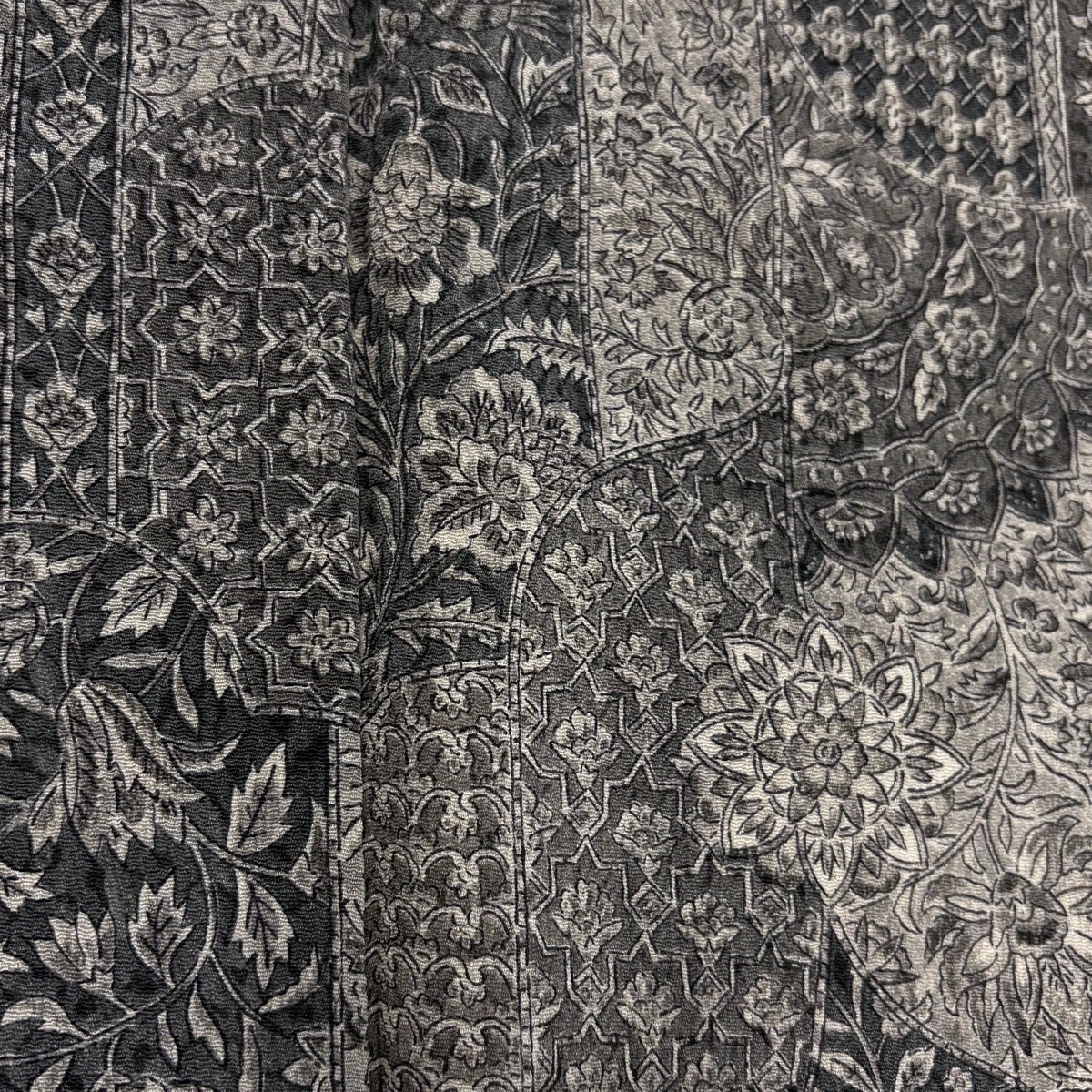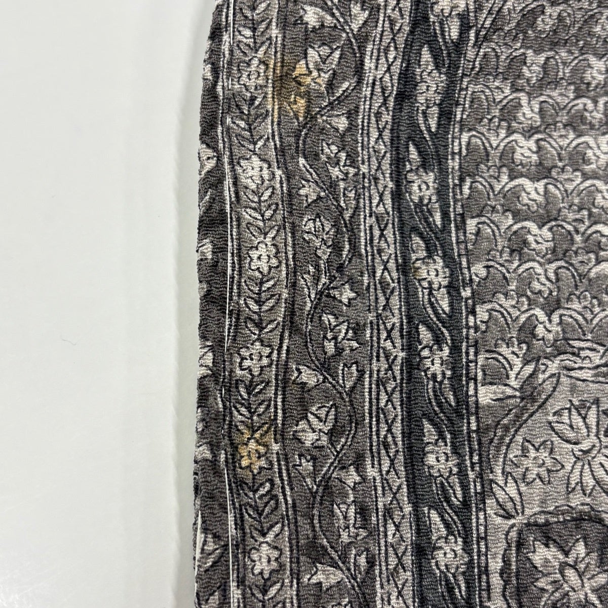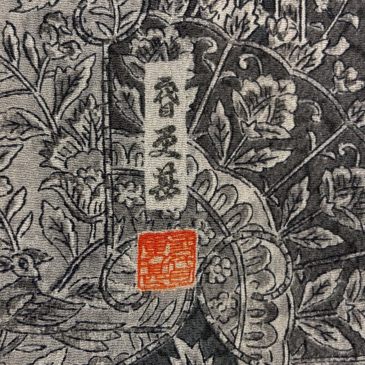 訪問着 身丈156.5cm 裄丈62.5cm S 単衣 二代目 更甚 落款あり 更紗柄 雪芝 ぼかし 灰色 正絹 秀品