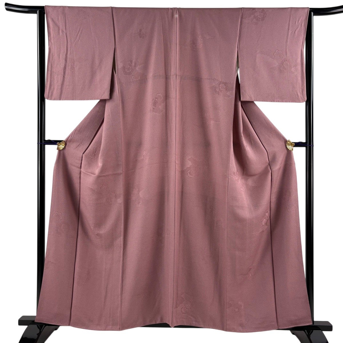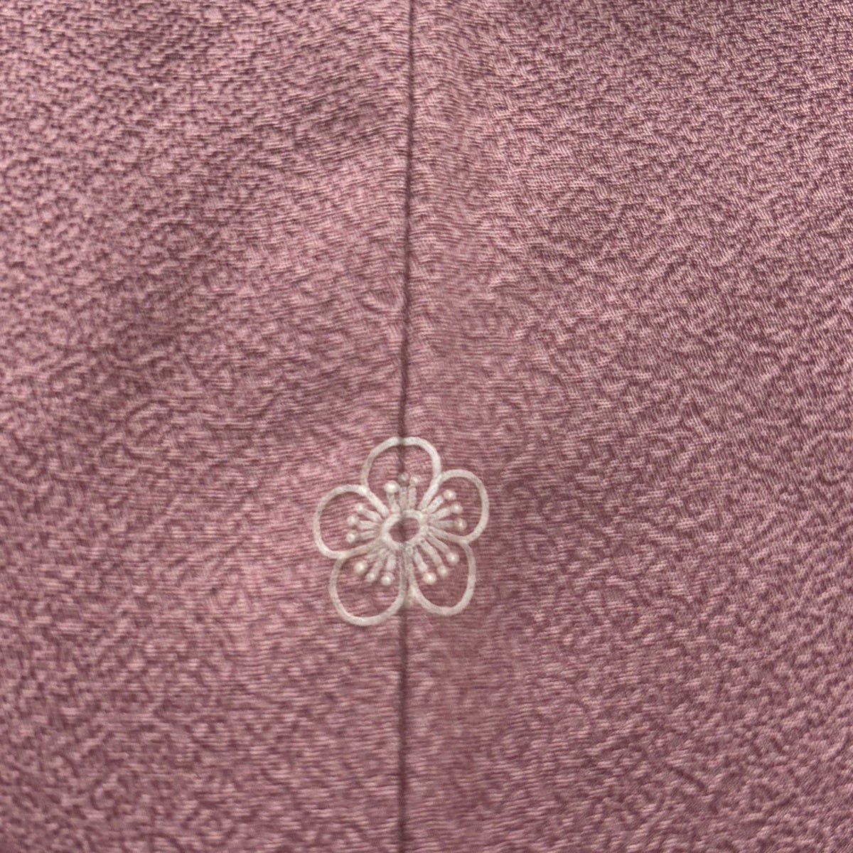 色無地 身丈158cm 裄丈64.5cm M 袷 地紋 紫 正絹 優品 一つ紋