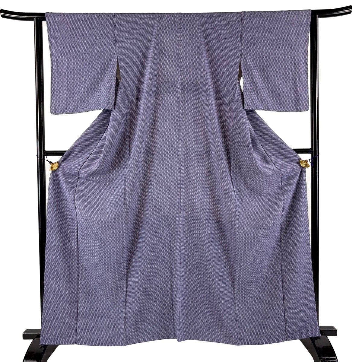 小紋 身丈156cm 裄丈64.5cm M 薄物 絽 斜縞 幾何学模様 ぼかし 紫 正絹 秀品