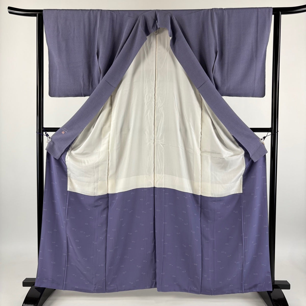 【美品】 小紋 身丈164.5cm 裄丈65cm M 袷 落款あり 幾何学模様 紫 正絹 秀品