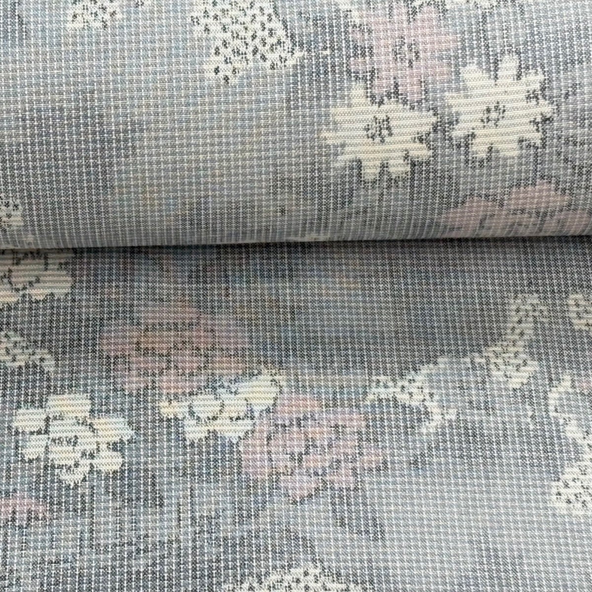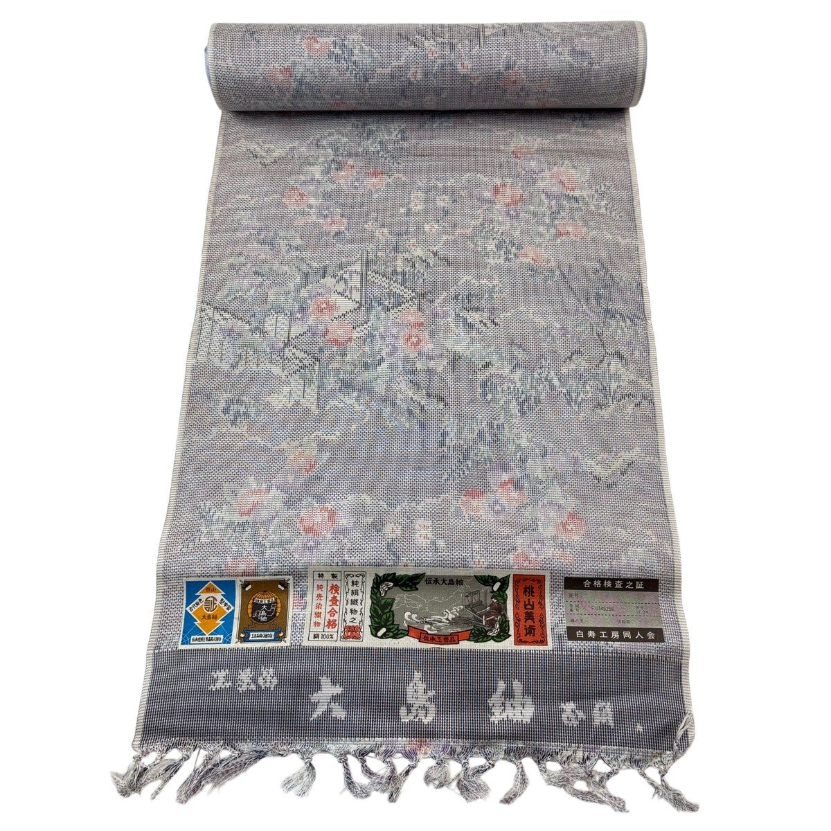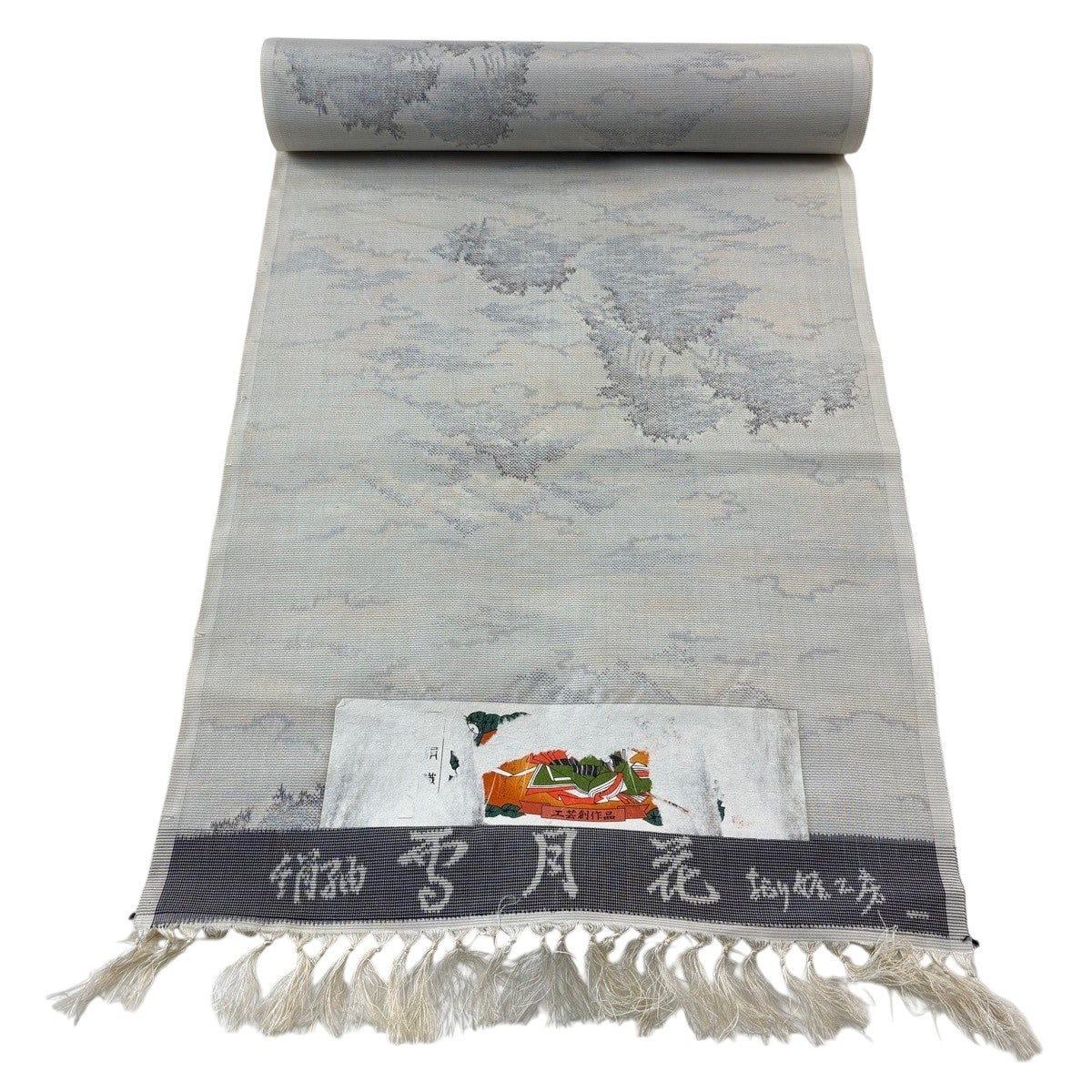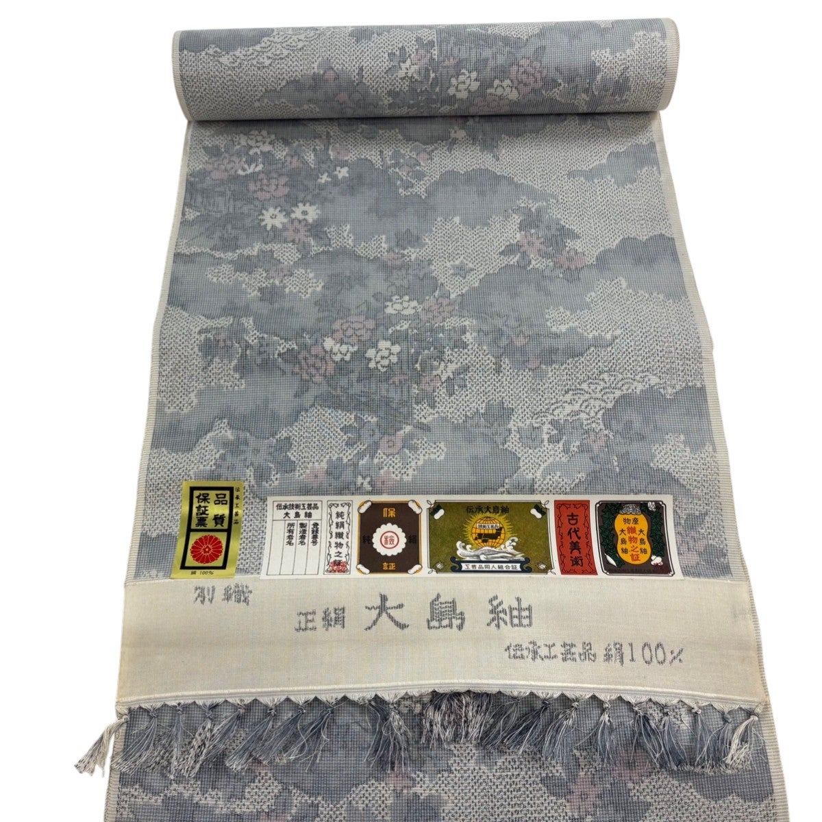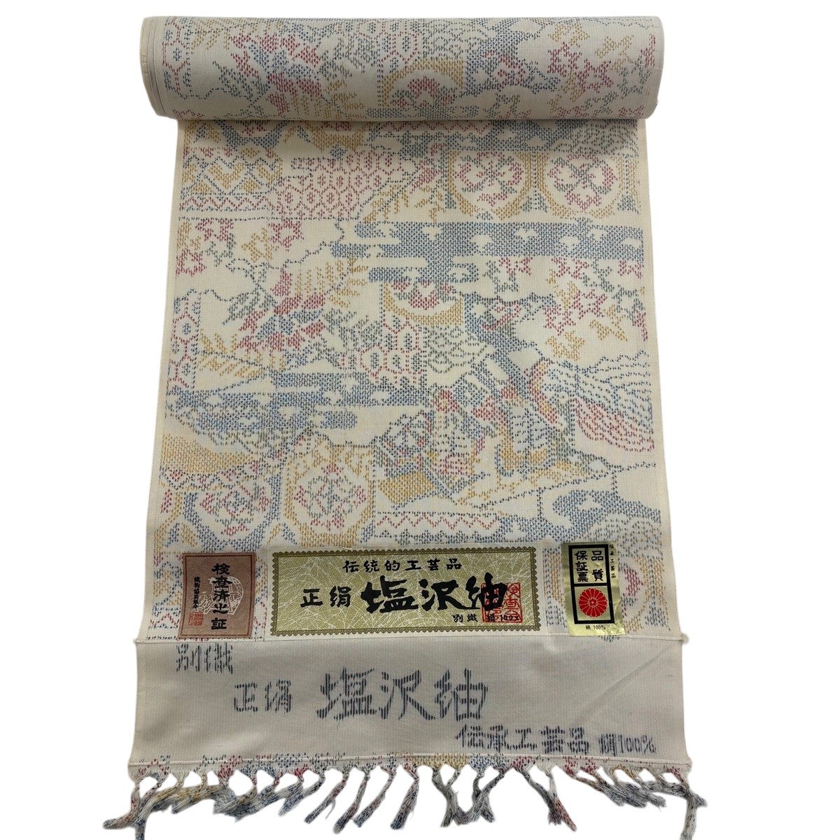 反物 秀品 紬 証紙有り 草花 ヱ霞 クリーム 正絹