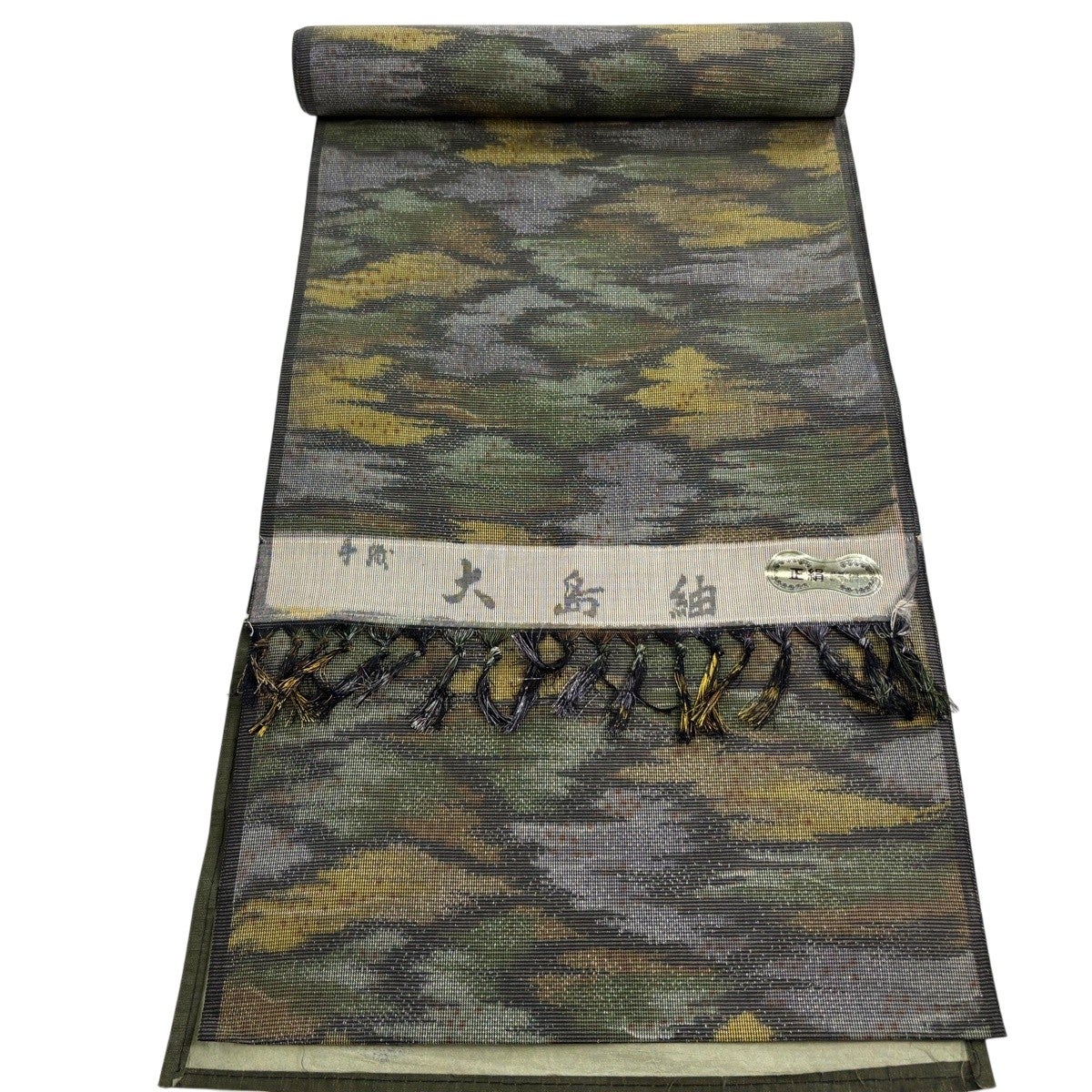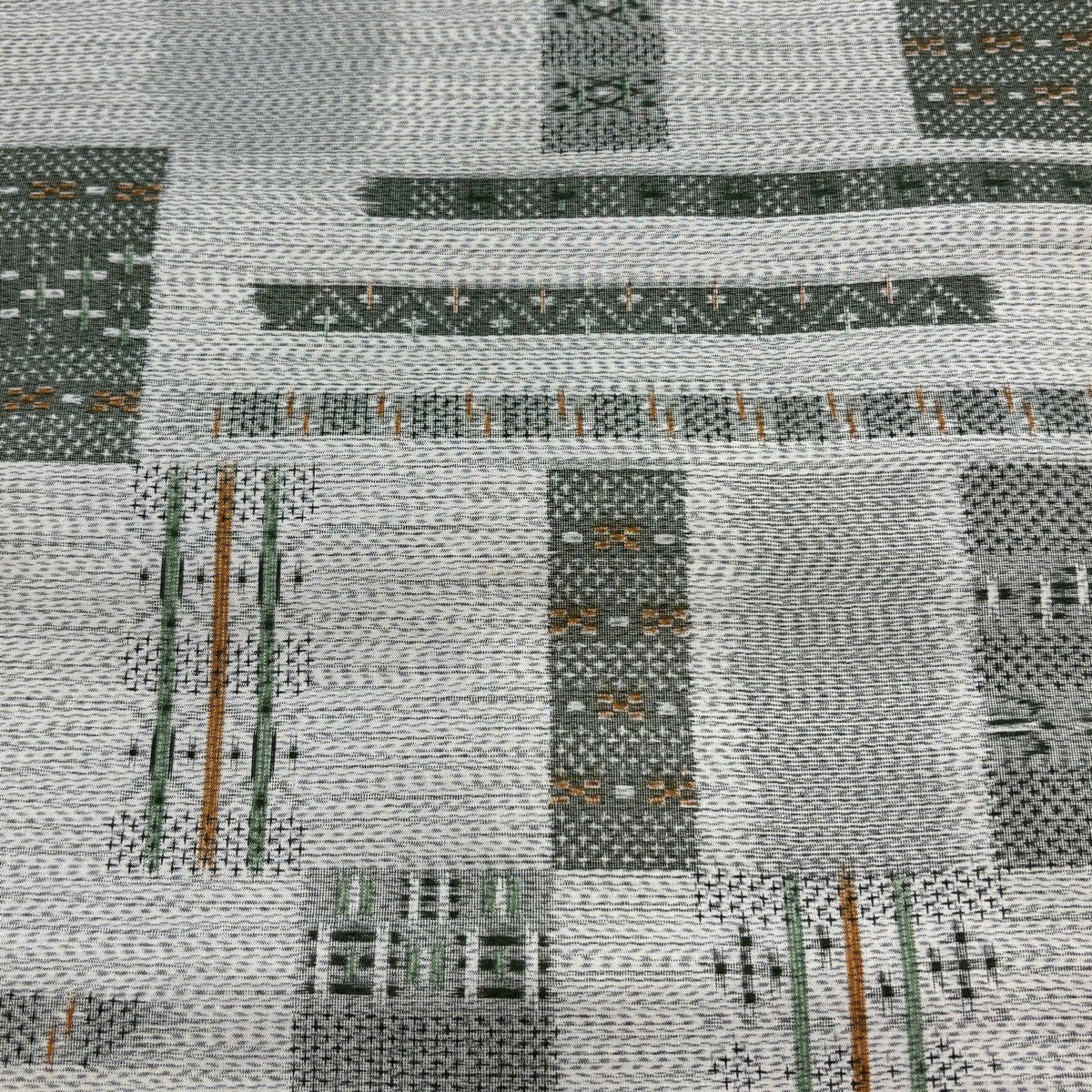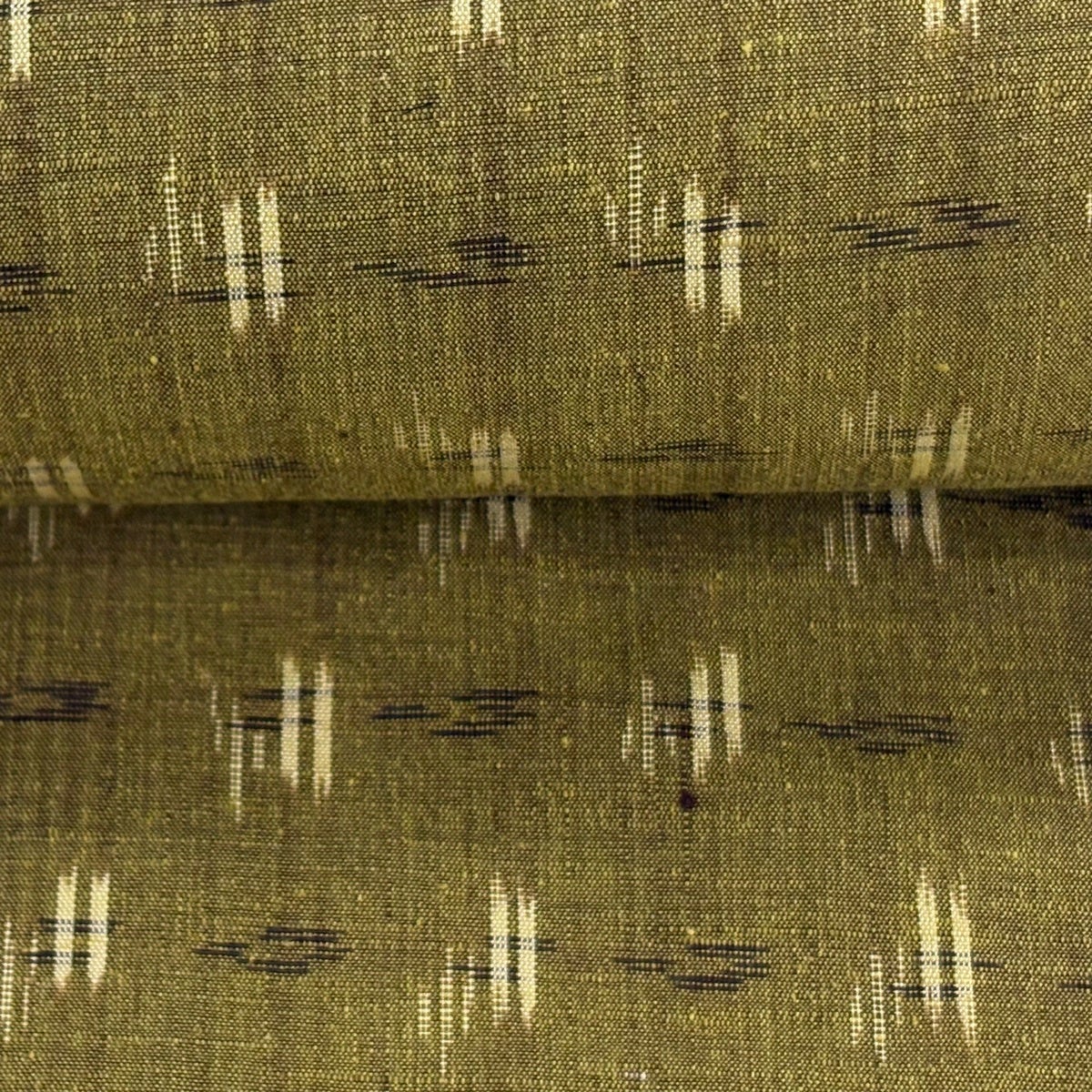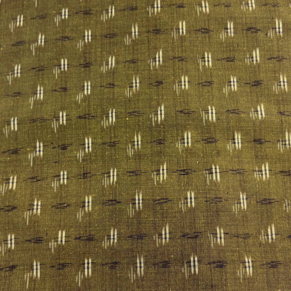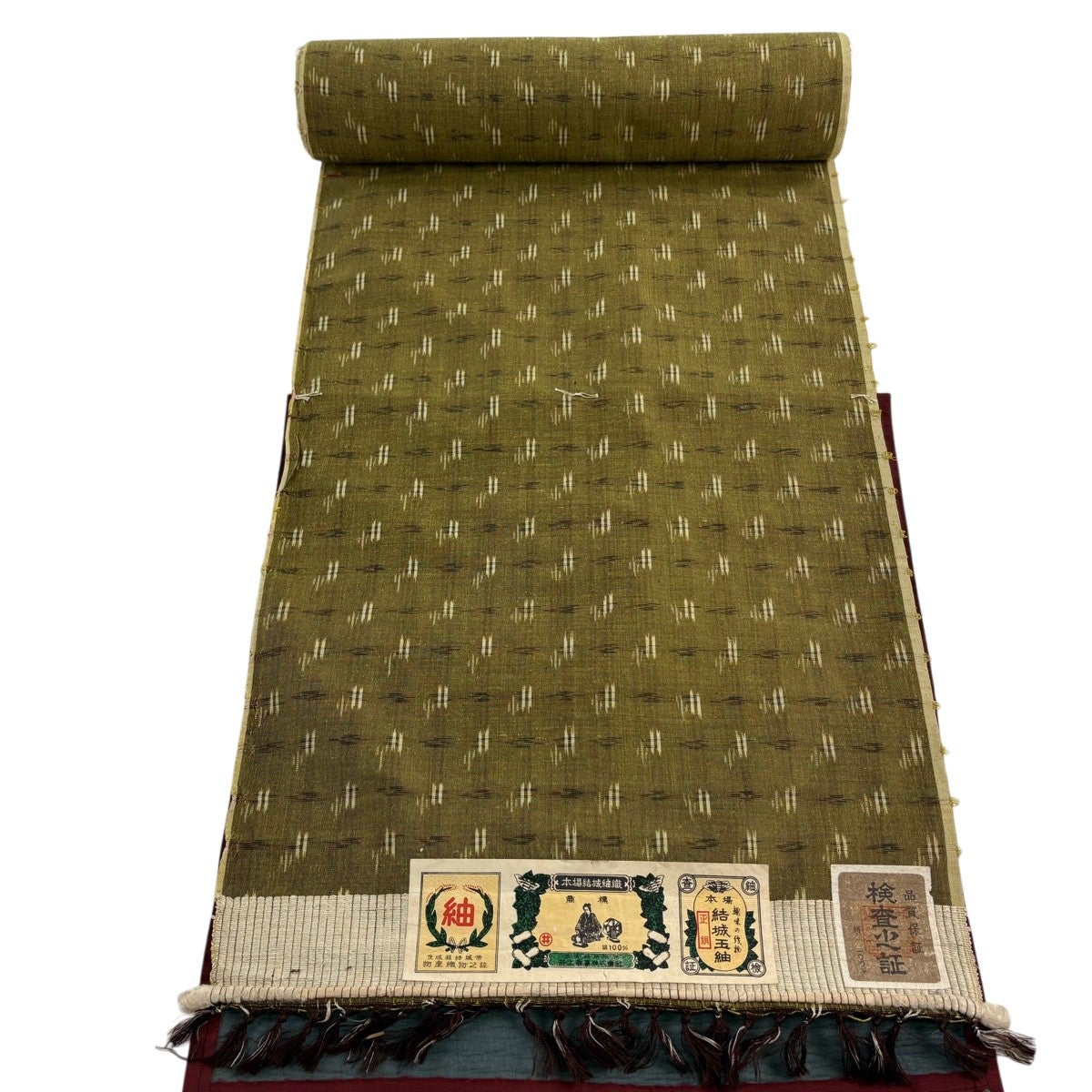 反物 秀品 紬 十字絣 幾何学模様 茶緑色 正絹