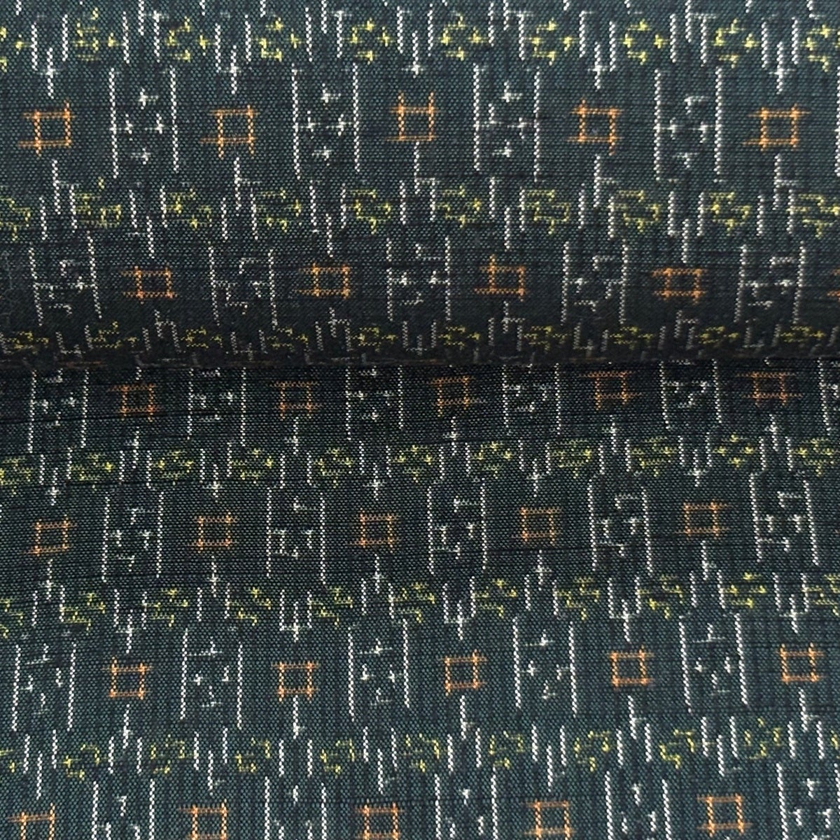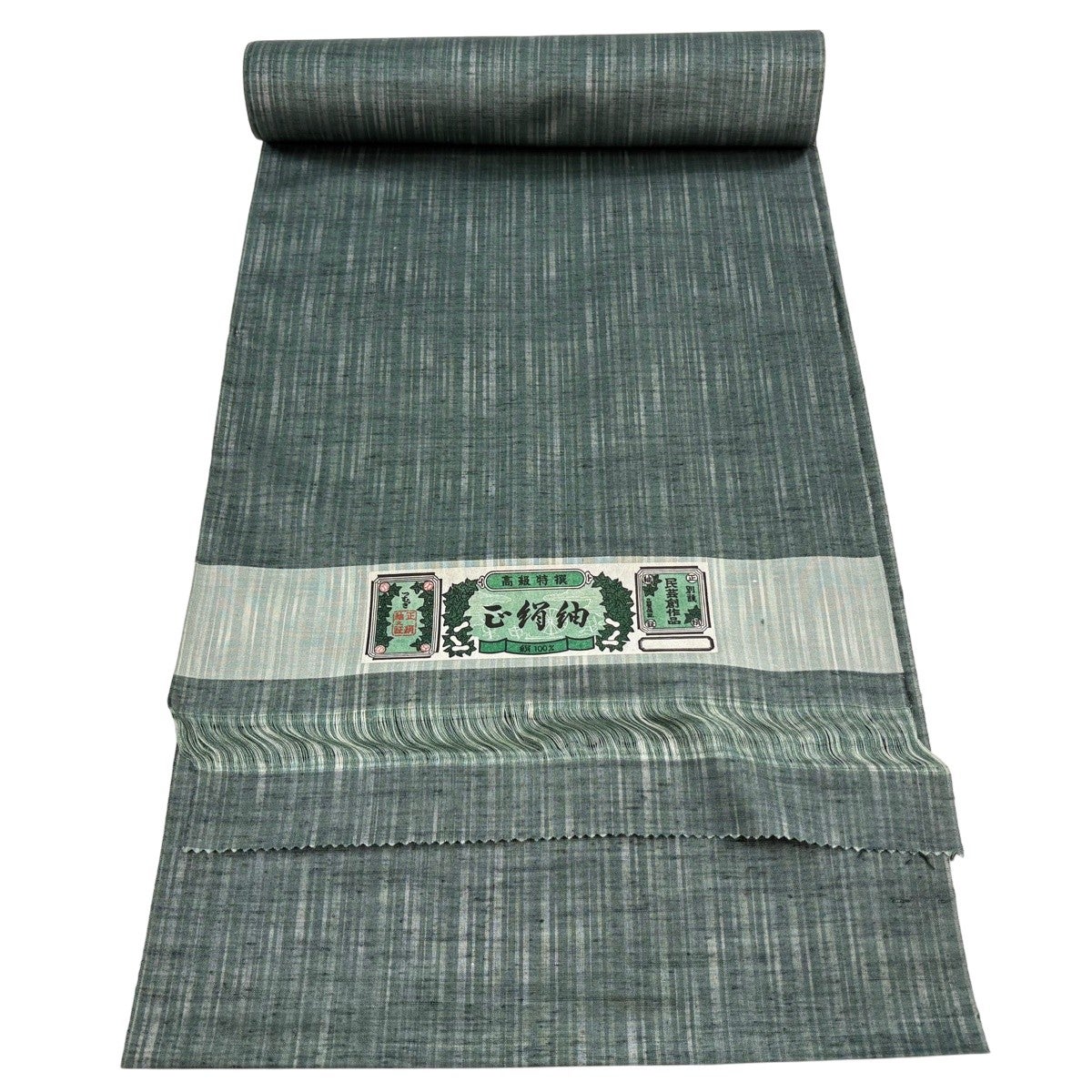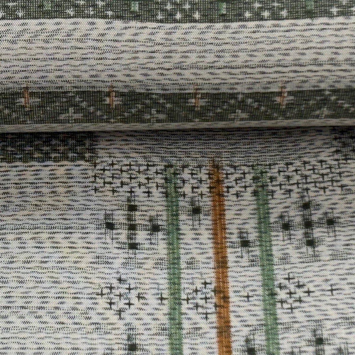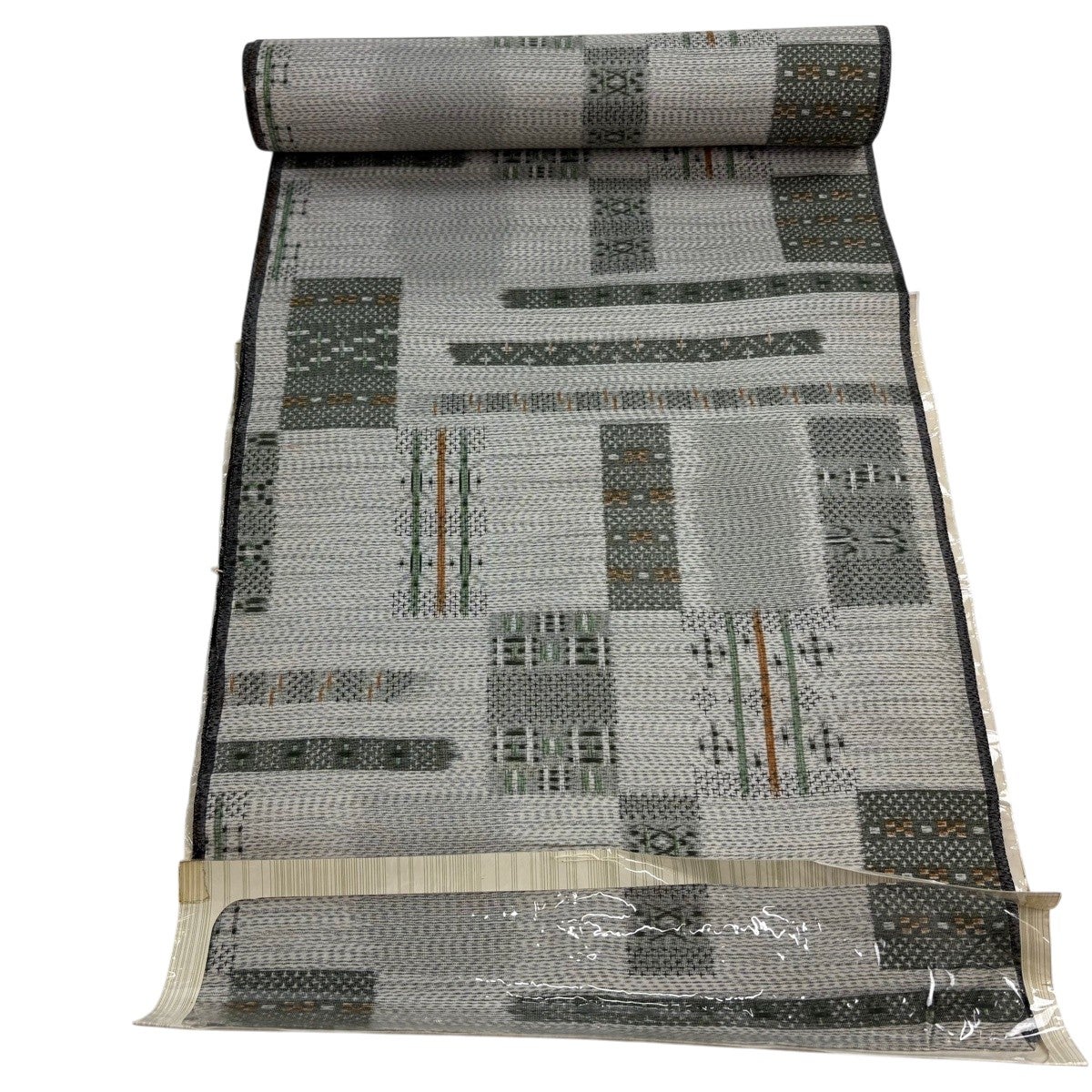 反物 秀品 紬 十字絣 幾何学模様 茶緑色 正絹