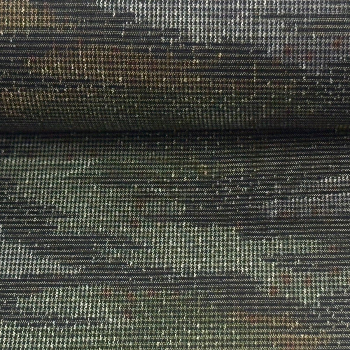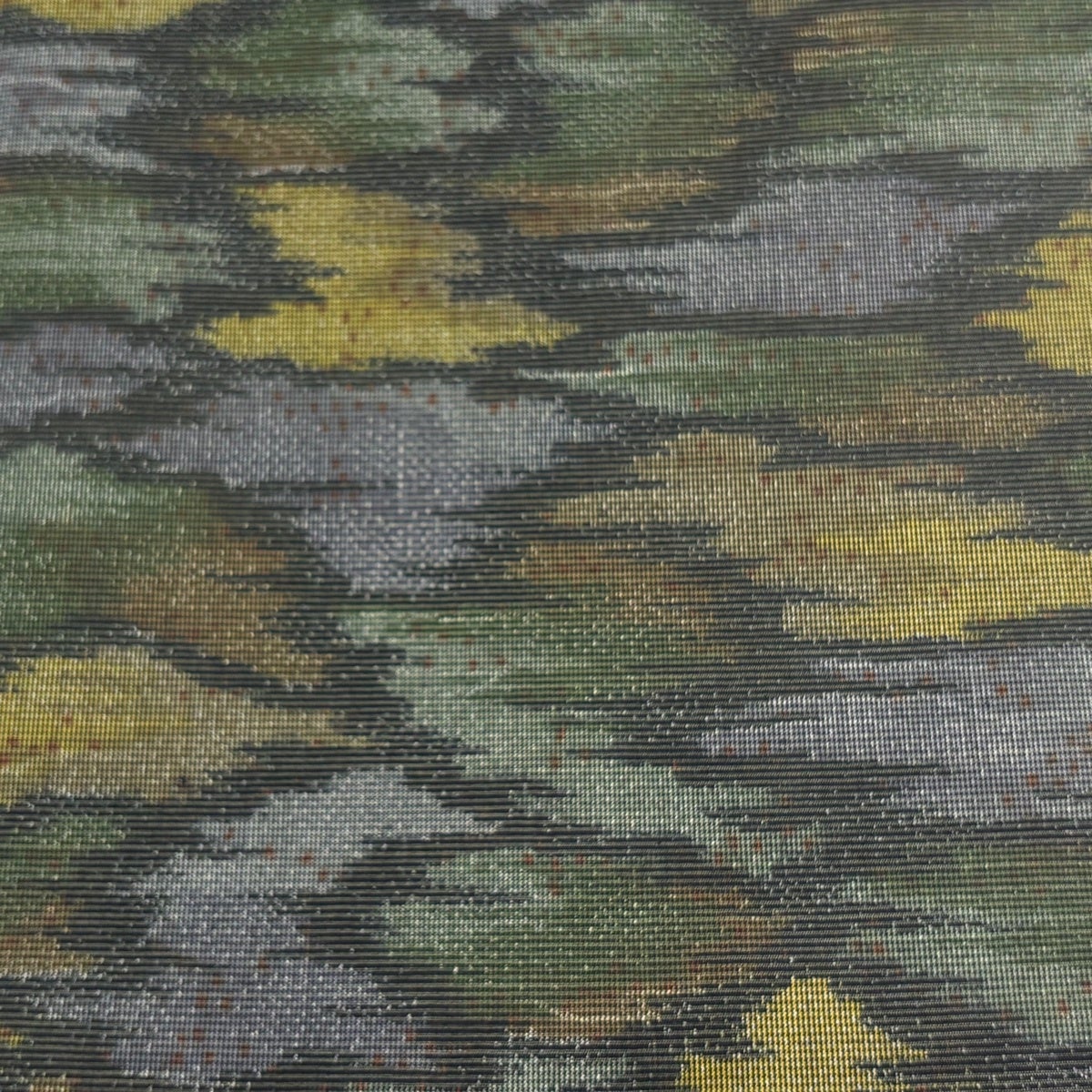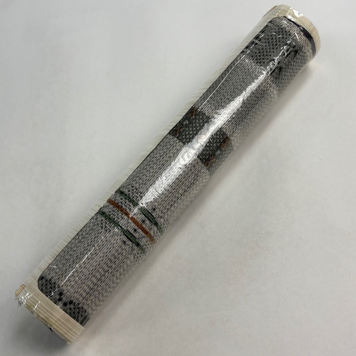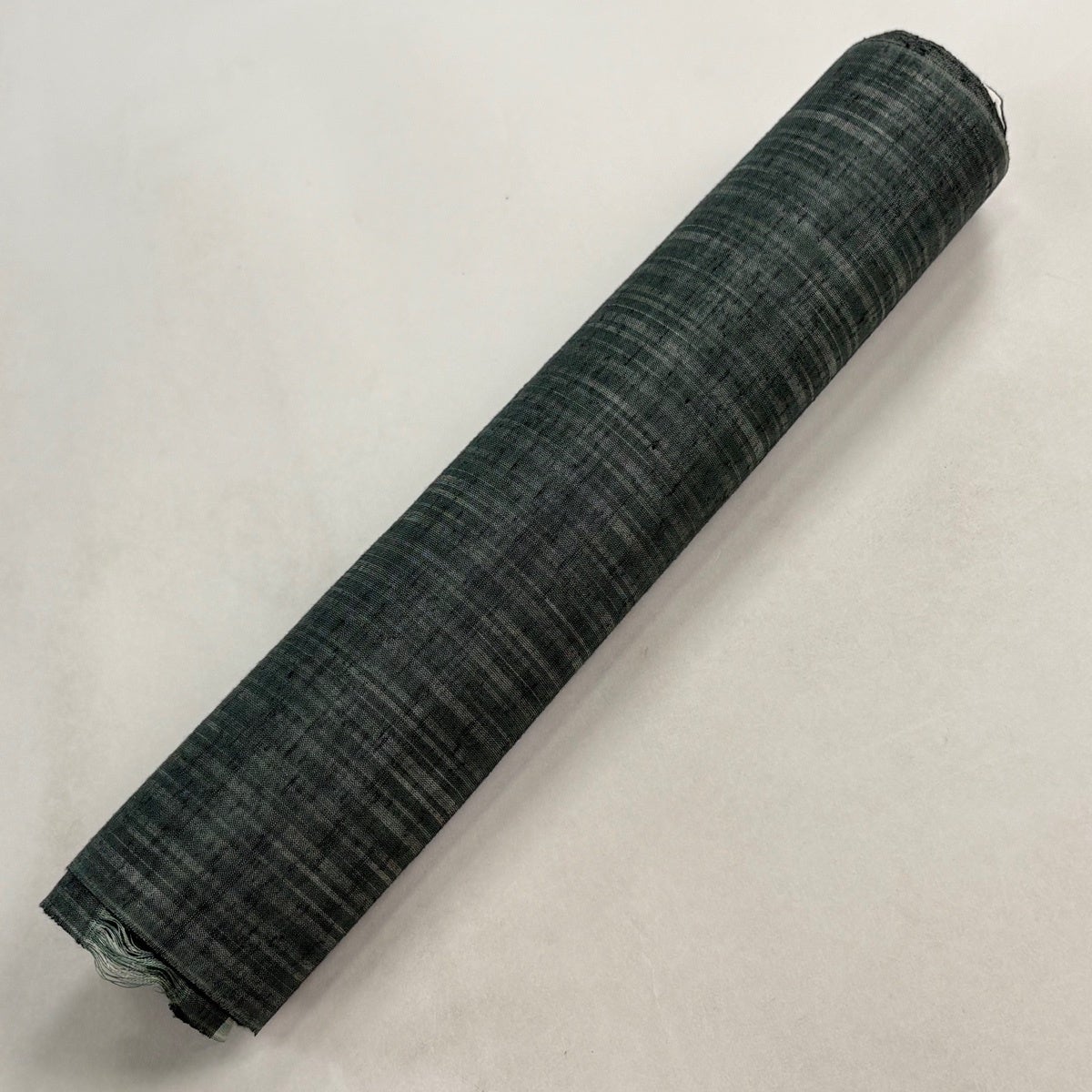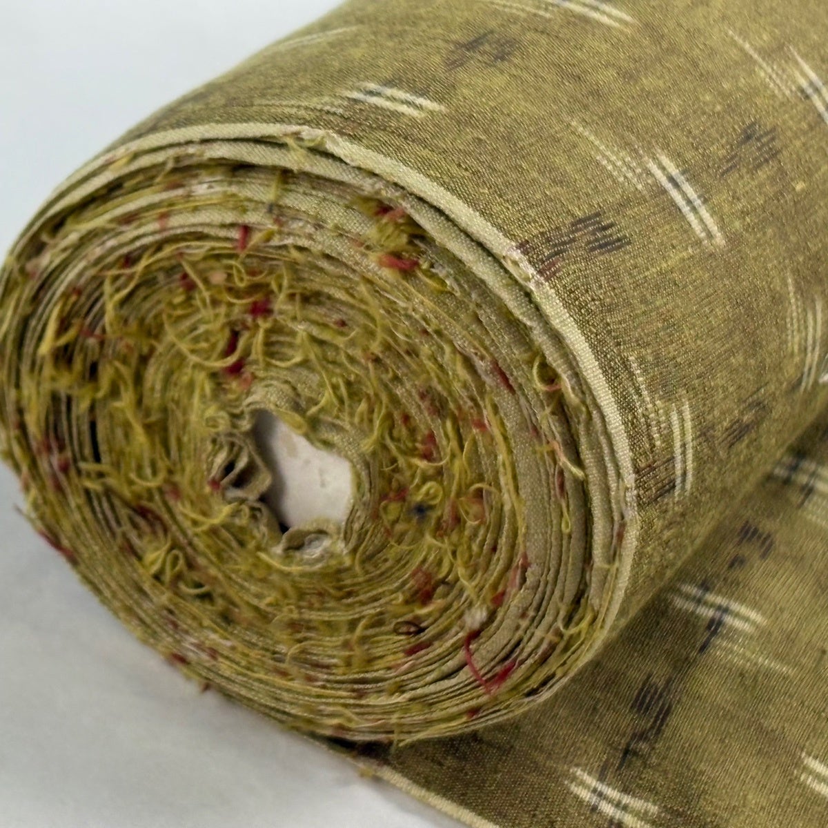 反物 秀品 紬 十字絣 幾何学模様 茶緑色 正絹